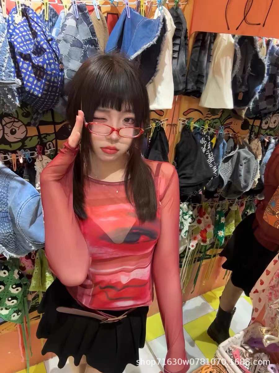 2 차원 만화 스타일 작은 프레임 평면 거울 일반 및 오목 스타일 문학 빨간색 빠른 판매 실행 안경 도매스토어 가기