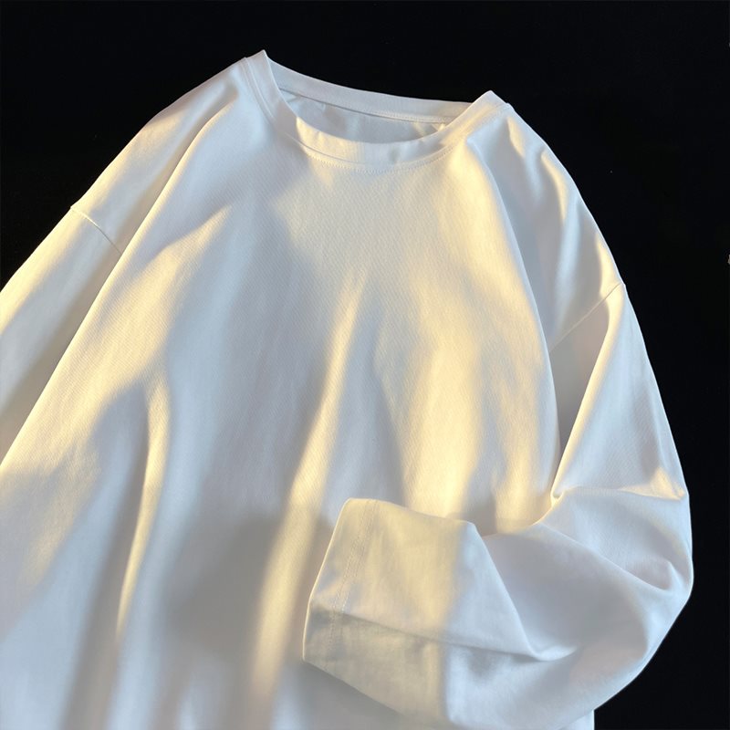 베이스 셔츠 300g 무거운 블레이드 긴 소매 티셔츠 두 바늘 가을/겨울 단색 남성과 여성의 스웨터 둥근 목 느슨한 t 다크 브라운스토어 가기