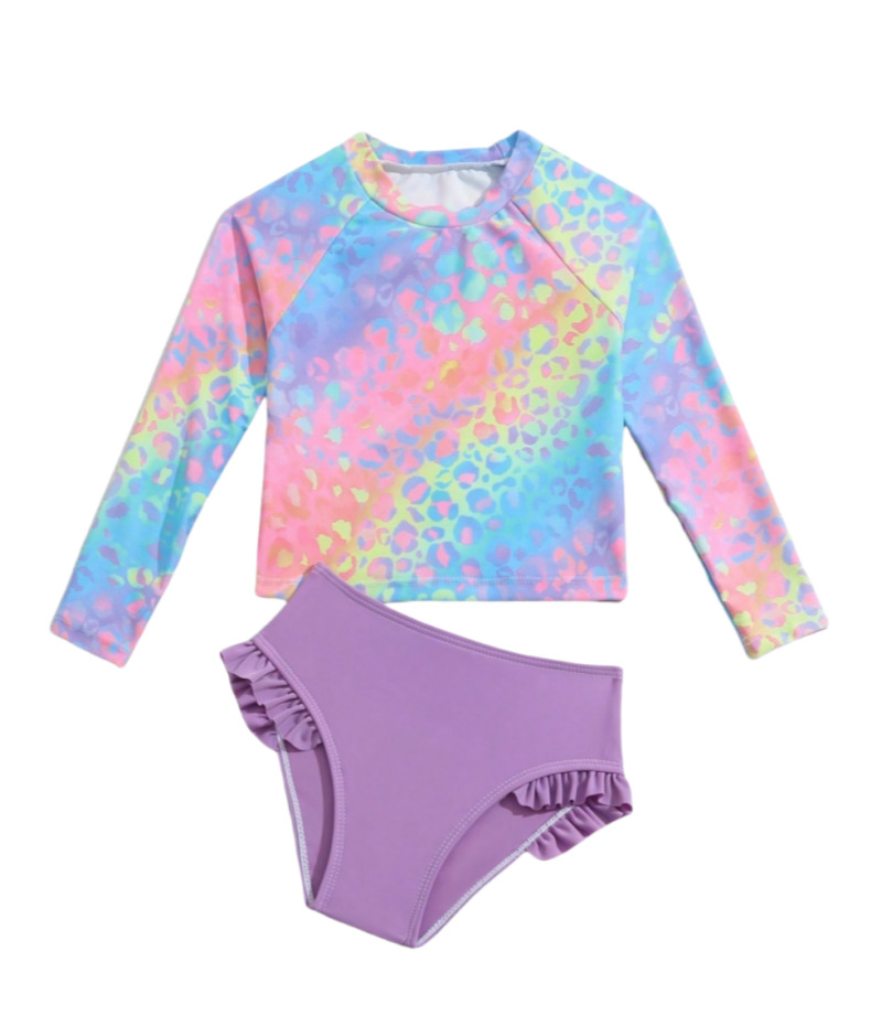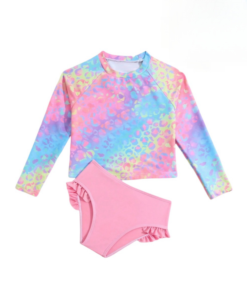 어린이 스플릿 수영복 긴팔 새 여아 비키니 중형 어린이 인쇄 선 스크린 수영복 유럽과 미국 국경스토어 가기