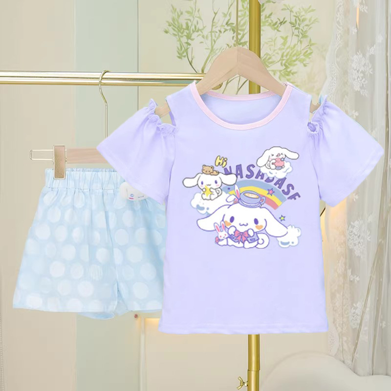2024 봄과 여름 여자 반팔 반바지 티셔츠 어린이 여름 패션 캐주얼 반팔 반팔 세트 면 투피스 세트