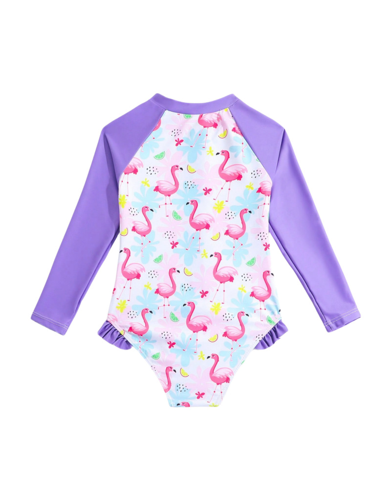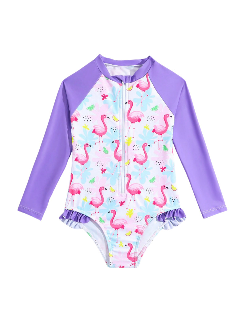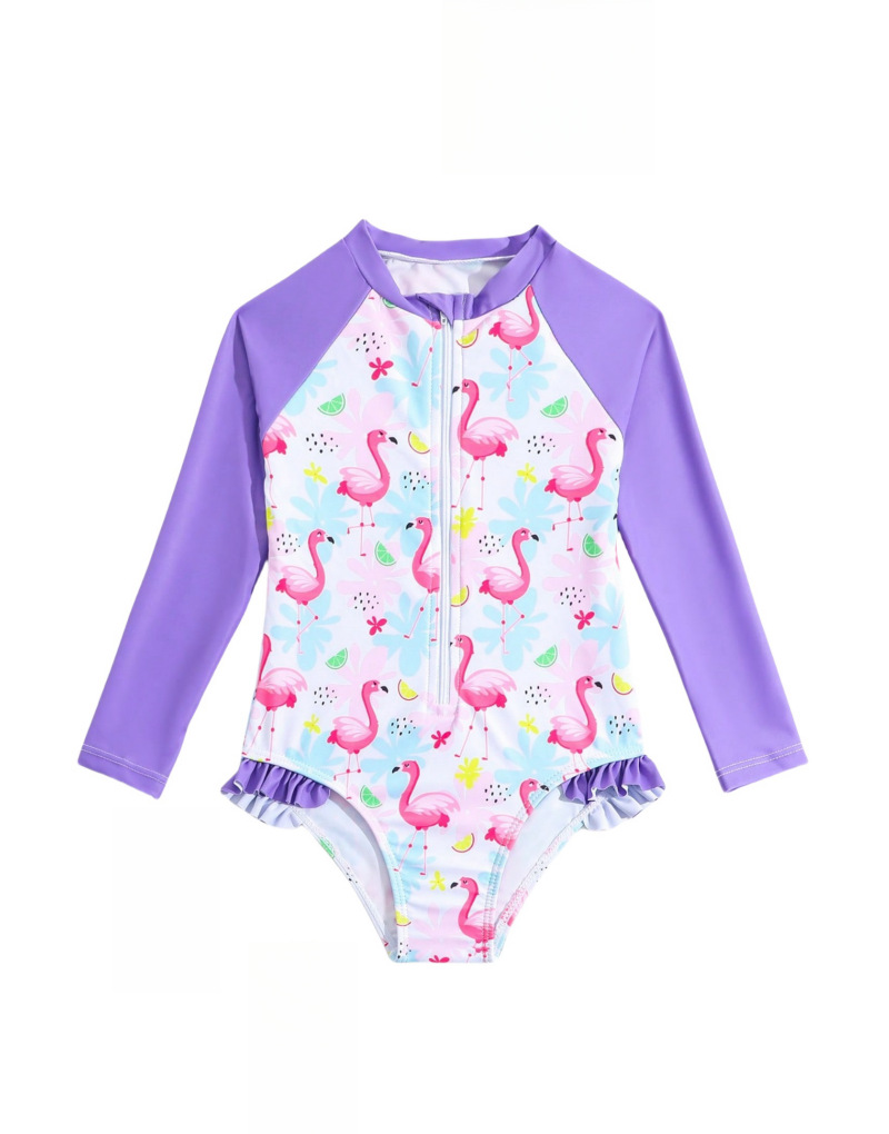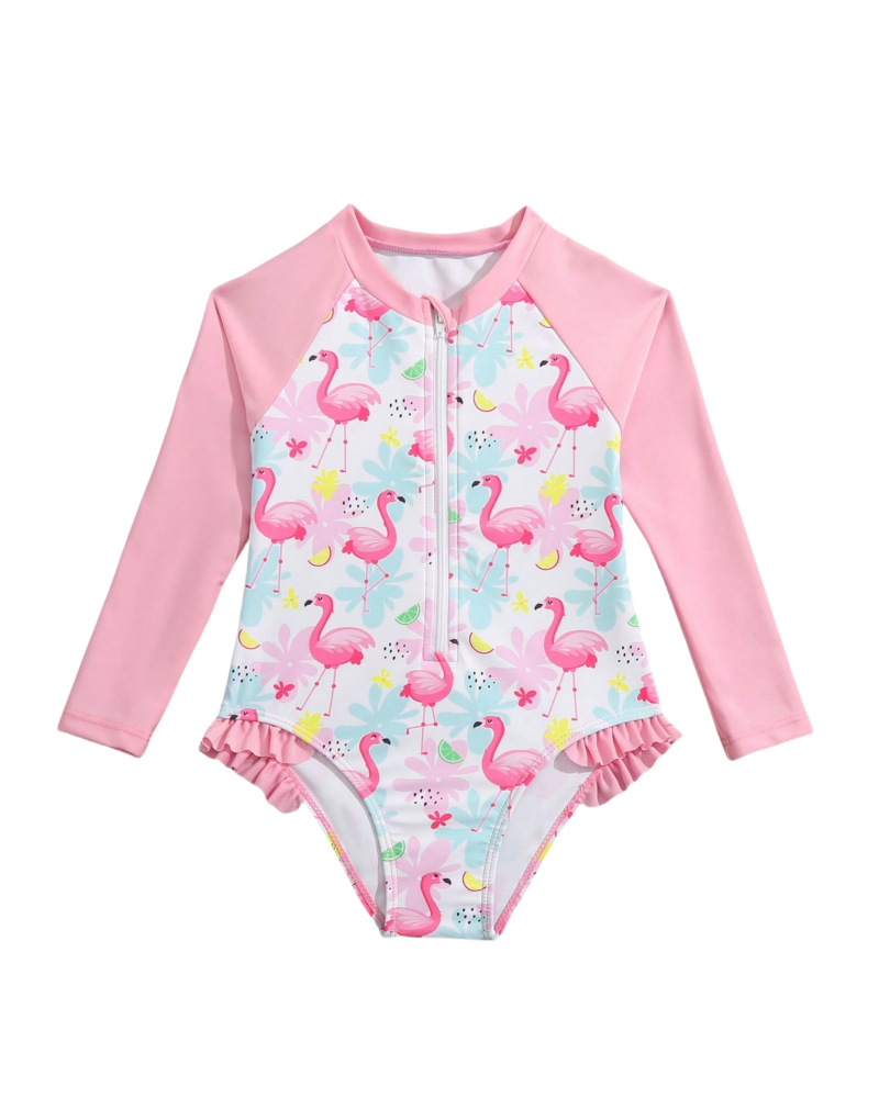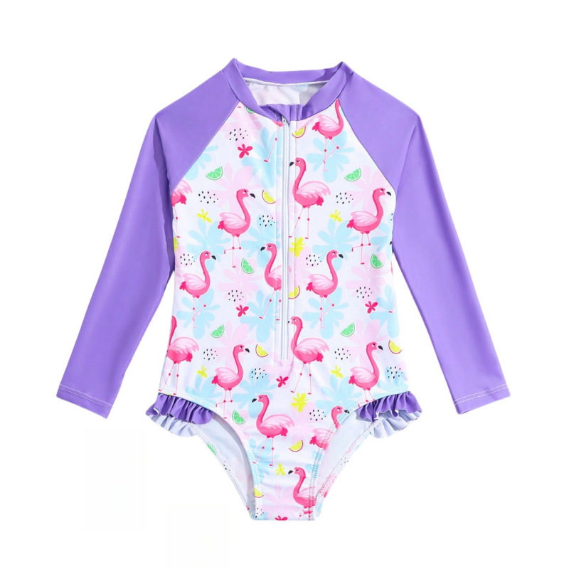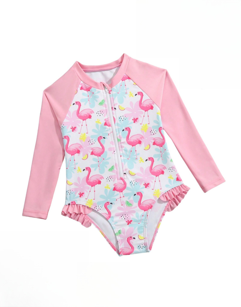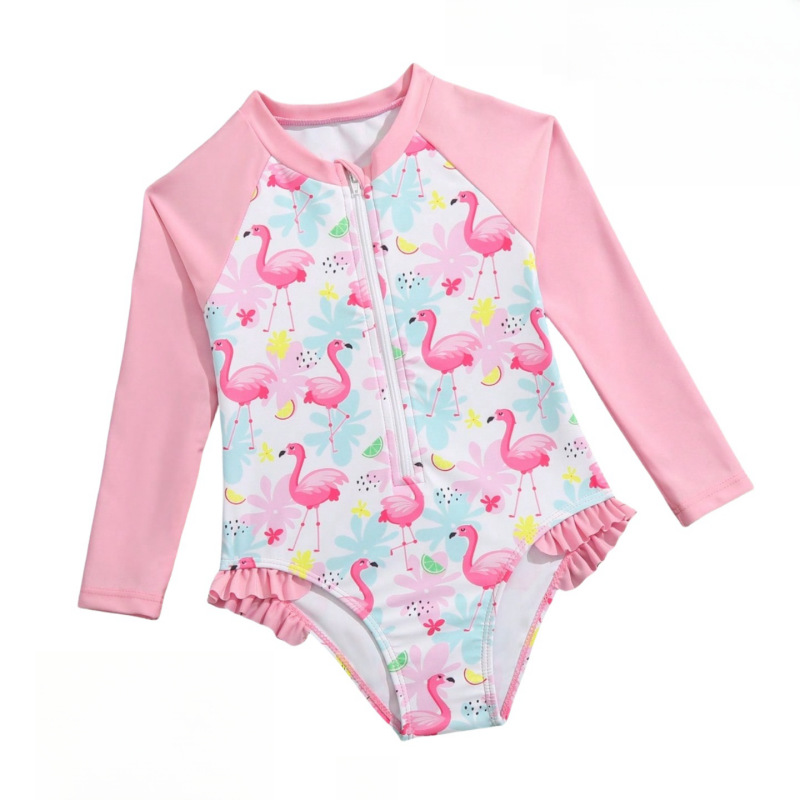 2024 유럽과 미국의 여자 수영복, 어린이 긴팔 원피스 수영복 소녀 중소 어린이 해변 수영복 도매