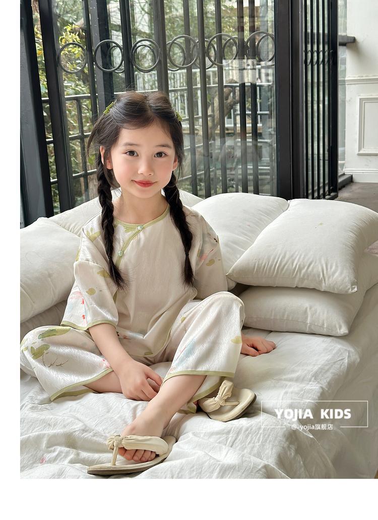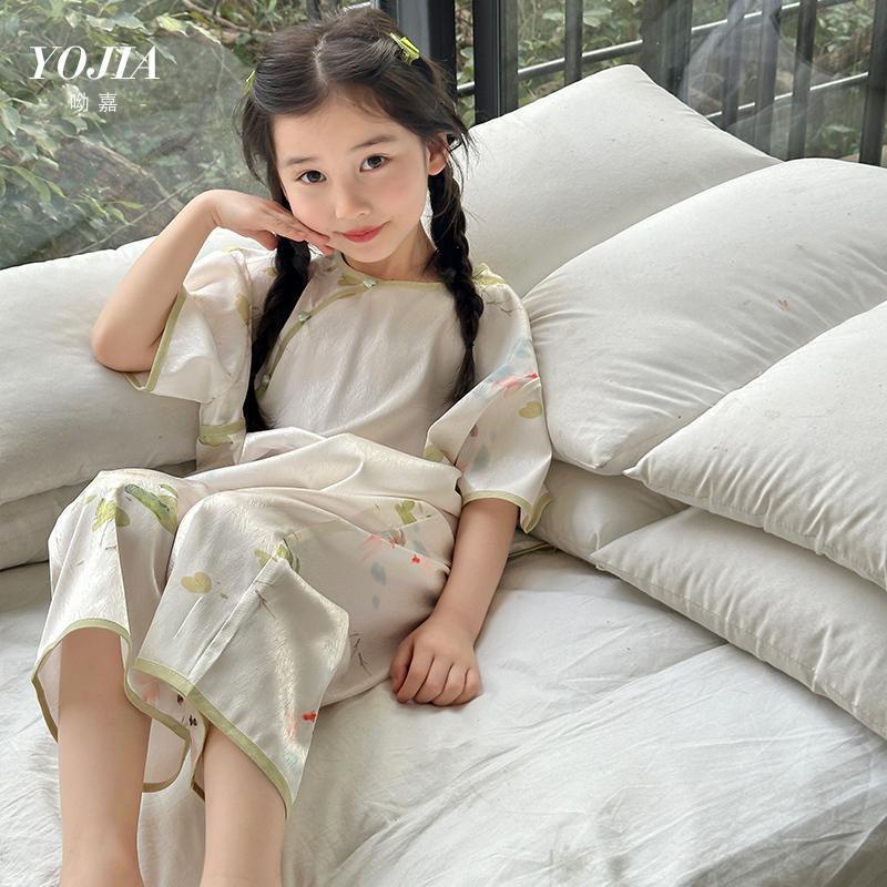 아동복 소녀 잠옷 세트 2024 년 여름 새로운 새로운 중국 스타일 국가 스타일 에어컨 의류 어린이 아이스 실크 홈 의류 트렌디