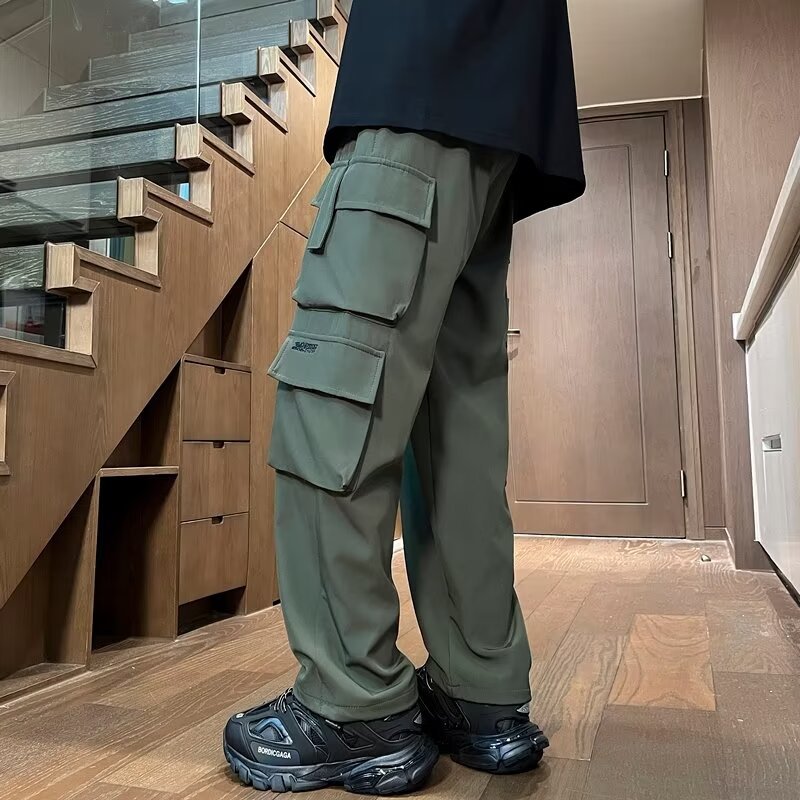가을과 겨울 스트레이트 오버올 봄 하이 스트리트 트렌디 브랜드 루즈 플러스 사이즈 스타일 남성 패션 올 매치 캐주얼 바지스토어 가기