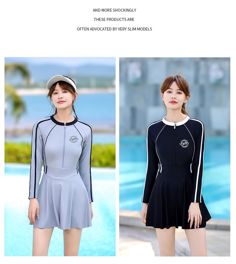 2024 새로운 수영복 여성의 빠른 건조 긴팔 하이 엔드 세트 원피스 스타일 보수적 인 슬림 배꼽 수영장 용 수영 세트스토어 가기