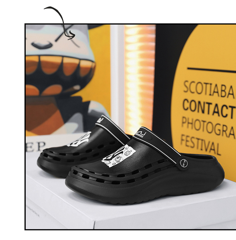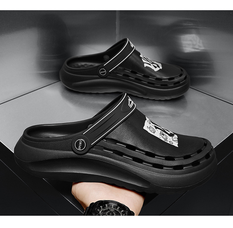 홀 신발 남성 여름 의상 두꺼운 밑창 트렌디 프린트 비치 신발 실내 홈 미끄럼 방지 남성 스포츠 샌들