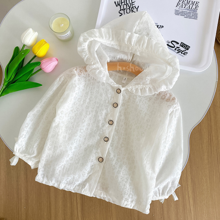 여아용 자외선 차단 의류, 가을 스타일 얇은 재킷, 봄, 여름, 가을용 아동복, 아기 통기성 의류, 꽃무늬 후드 에어컨 셔츠스토어 가기