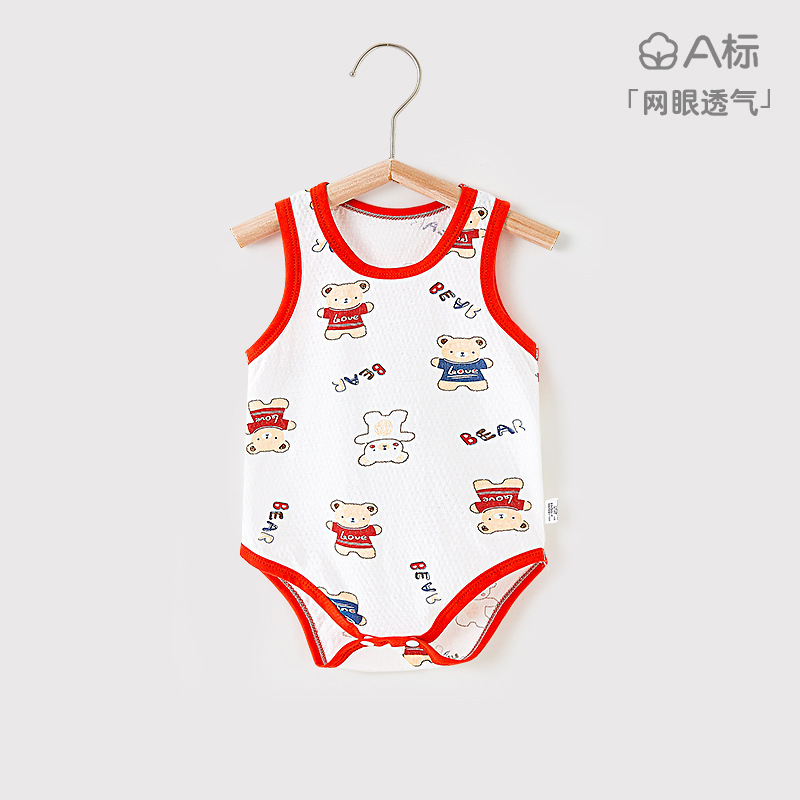 신생아 아기 붐 수트 여름 새로운 경량 메쉬 통기성 민소매 조끼 가방 뚱뚱한 옷 아기 삼각형 모자