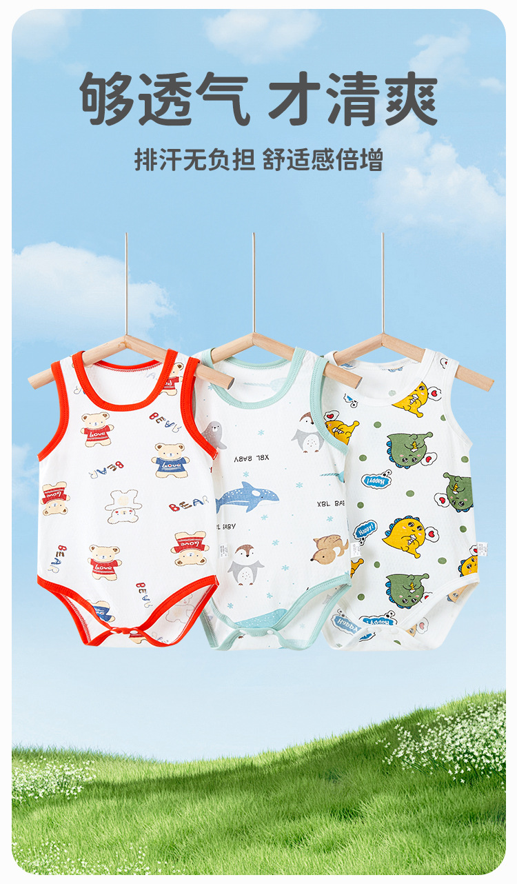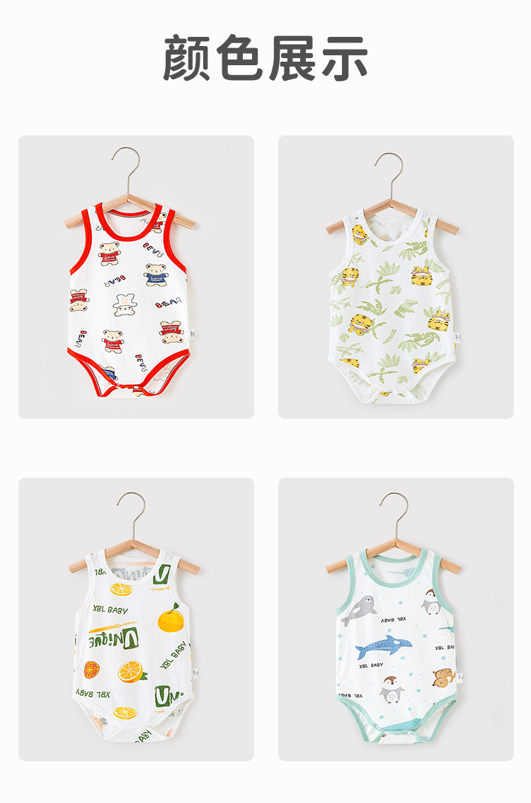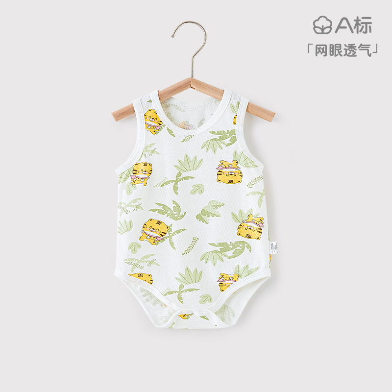 신생아 아기 붐 수트 여름 새로운 경량 메쉬 통기성 민소매 조끼 가방 뚱뚱한 옷 아기 삼각형 모자스토어 가기