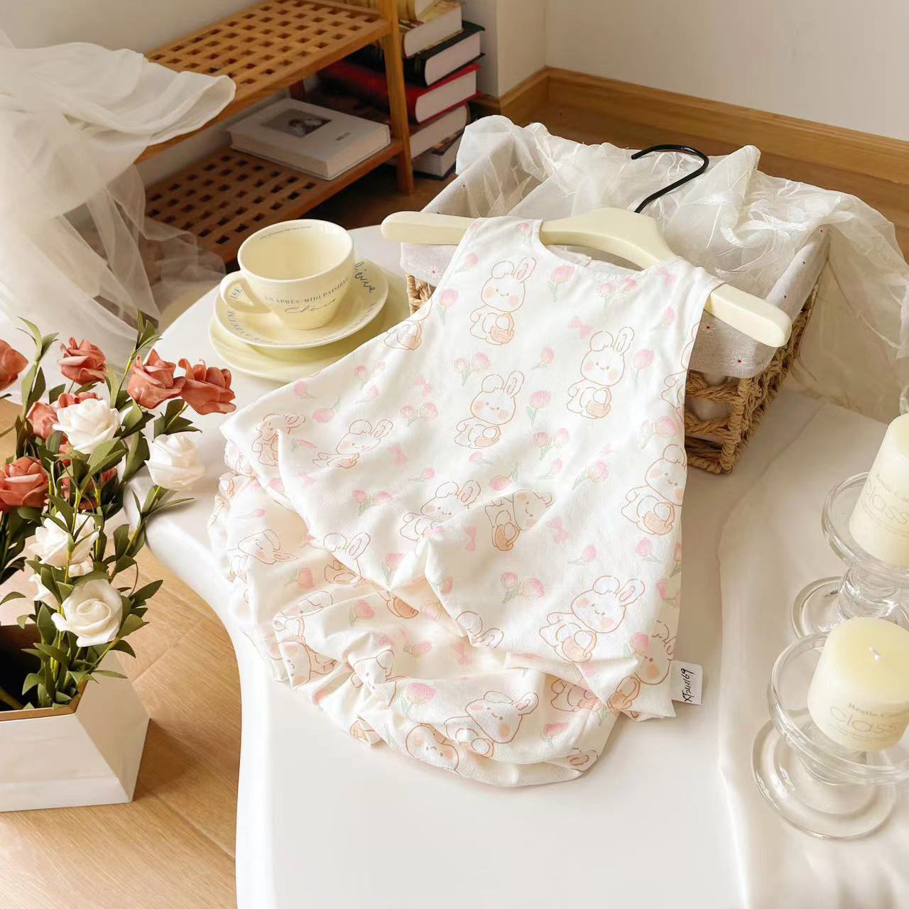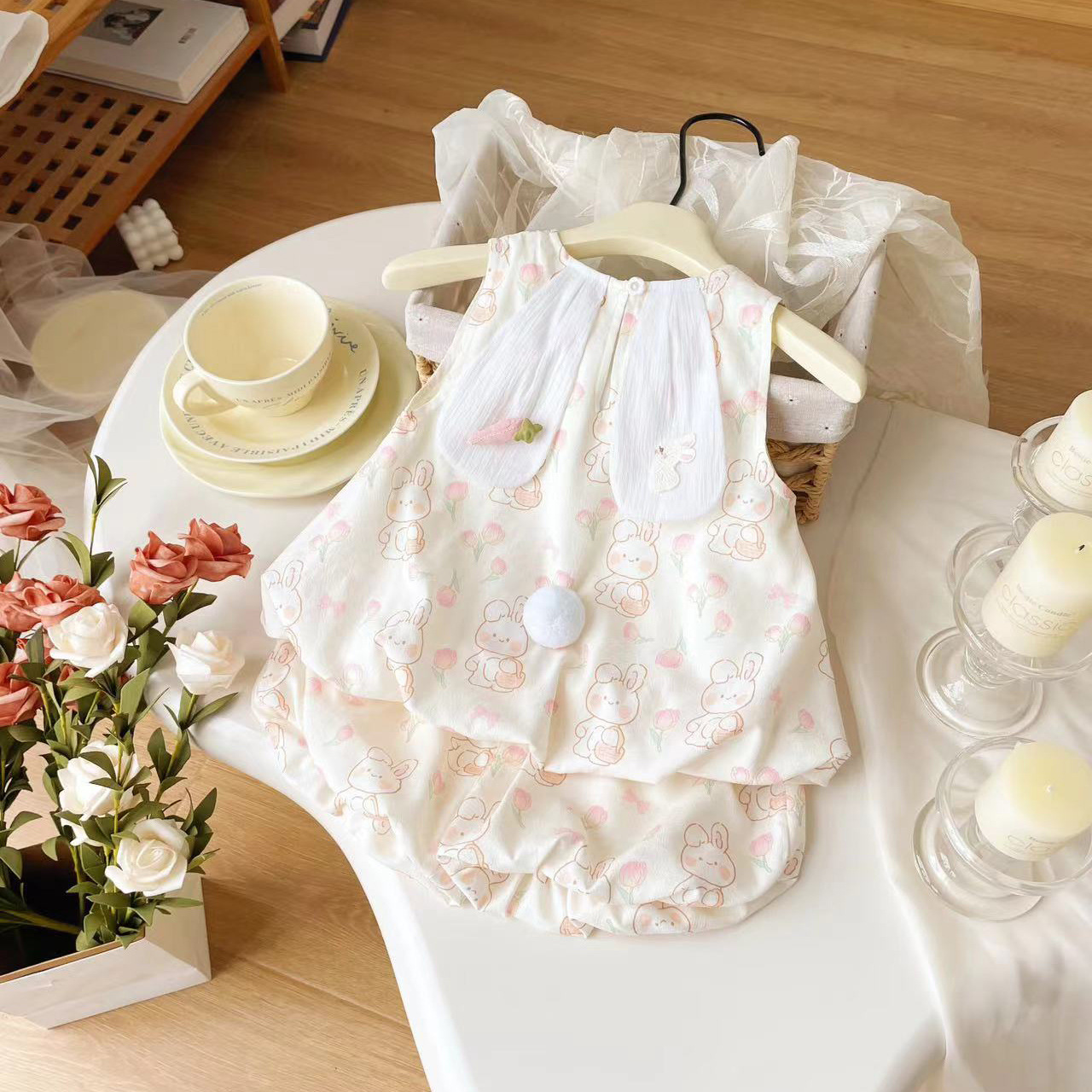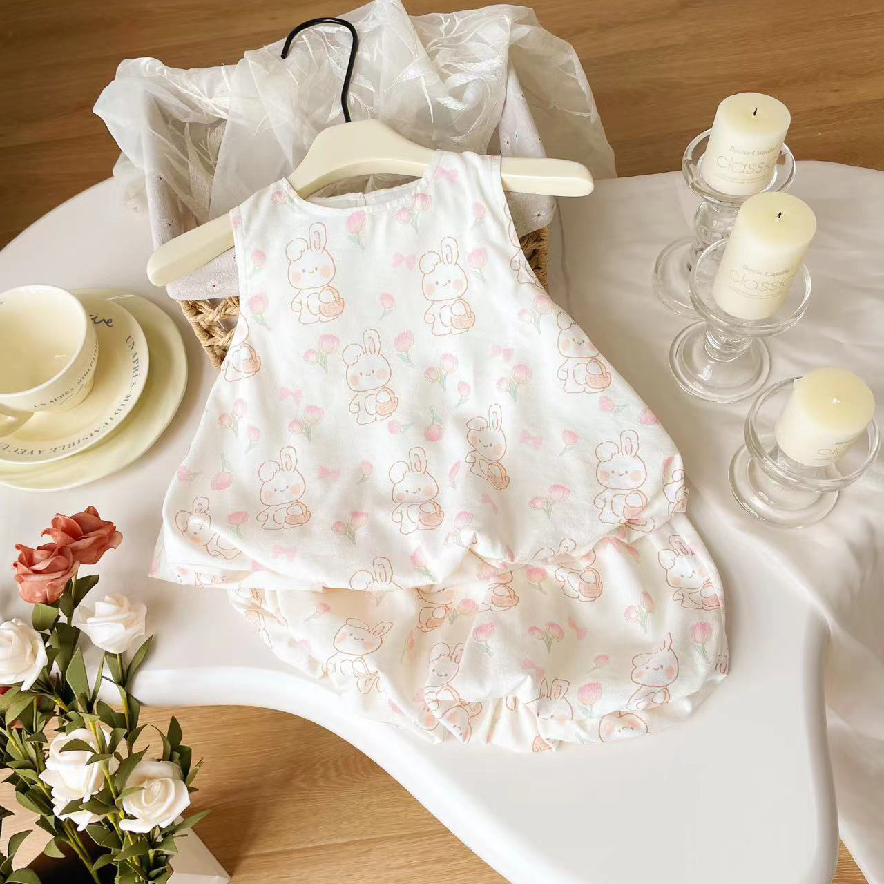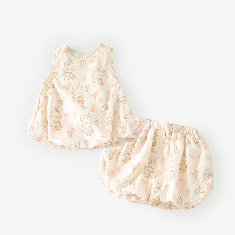 여자 어린이 세트 2024 여름 새로운 여성의 보물 세트 새로운 어린이 만화 두 조각 세트 한 조각 머리스토어 가기