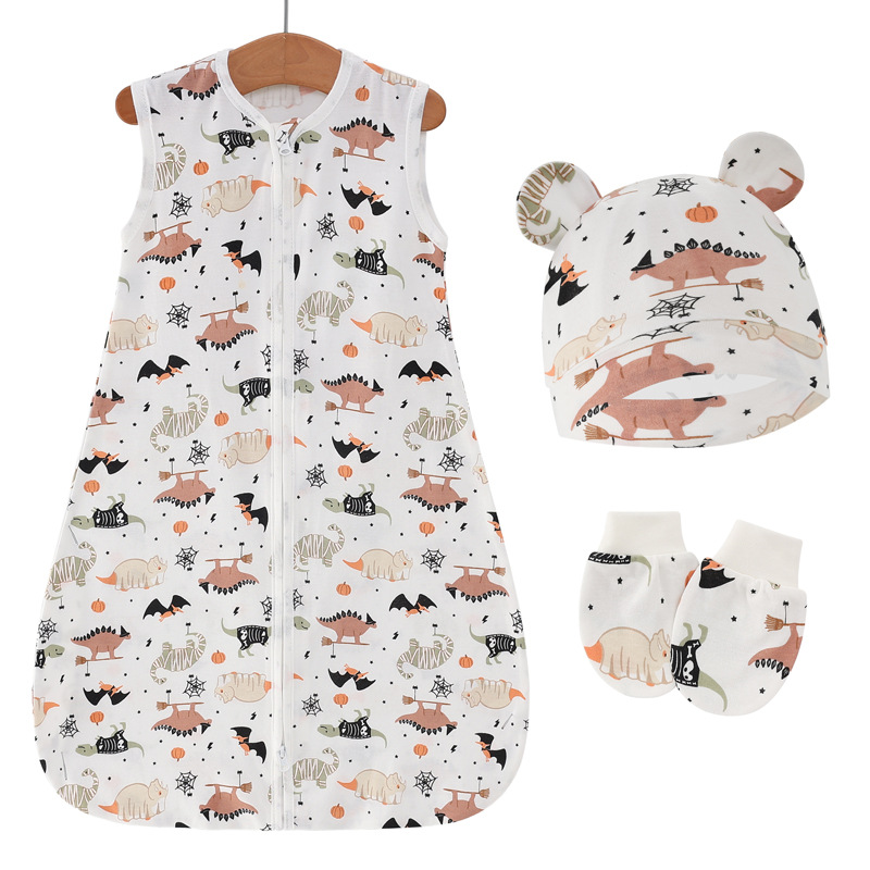 • 3피스 조끼 침낭 세트(호박 공룡 + 이중 귀 모자 + 가장자리 장갑)