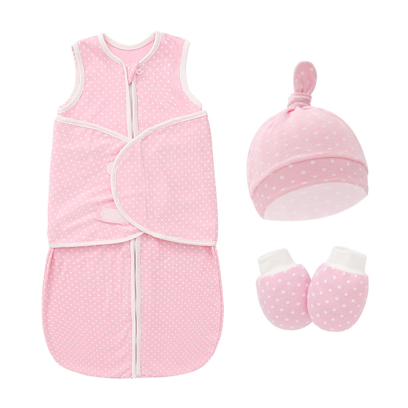 • 3 피스 날개 슬리핑 백 (재단 웨이브 도트 매듭 모자 트림 장갑)