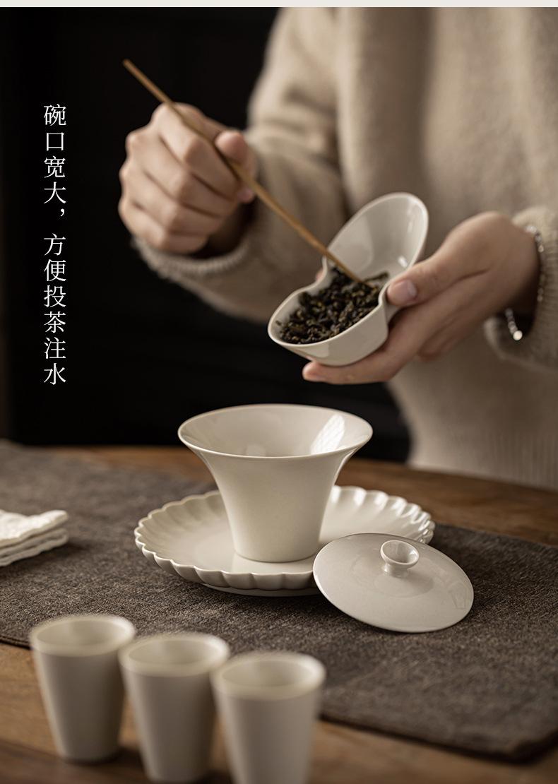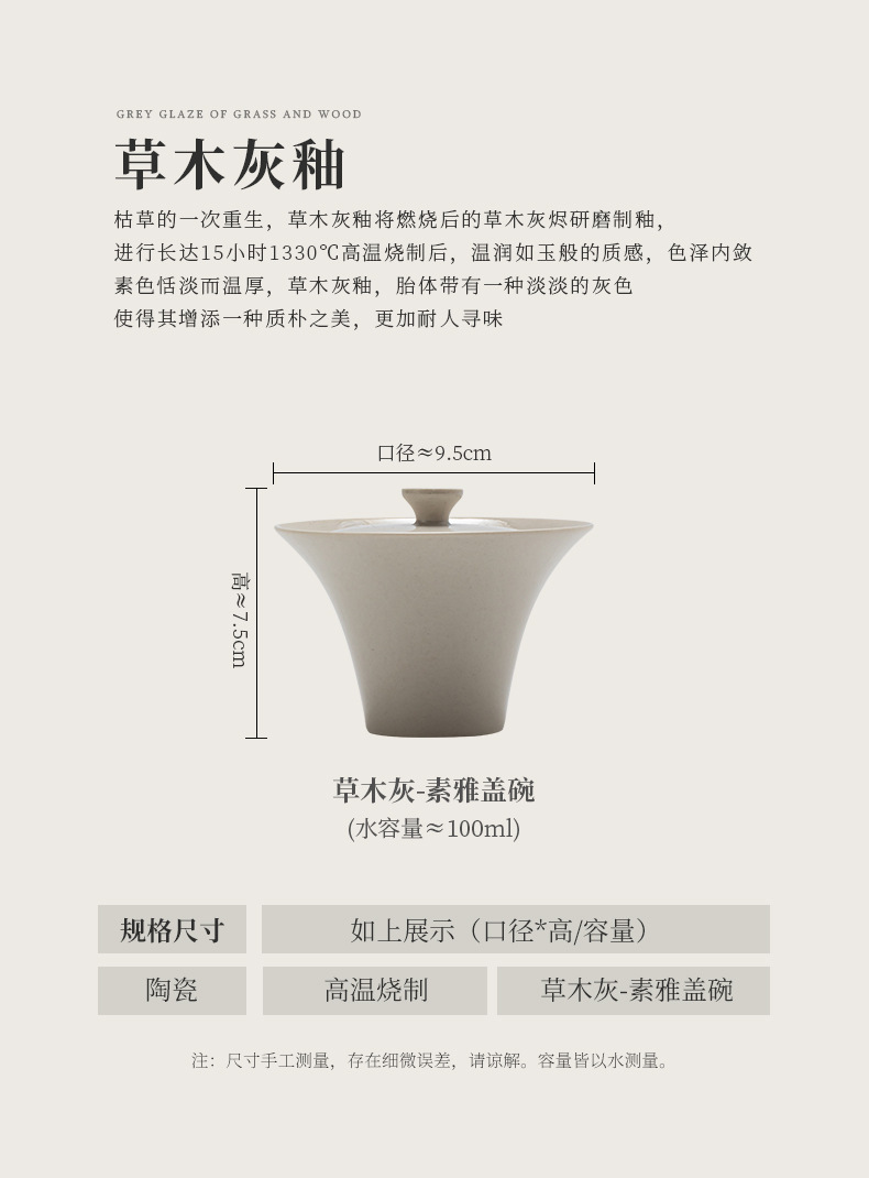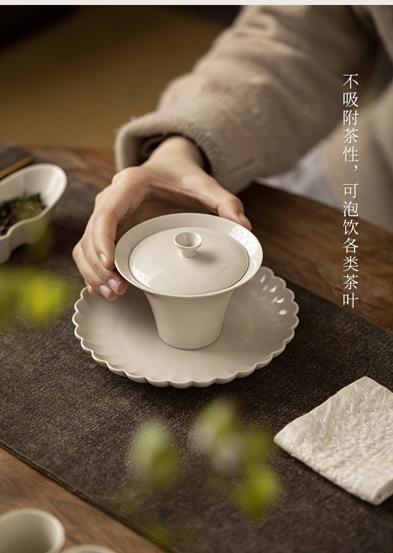 Hao Lan Grass Ash Ercai Gai Bowl Home Kung Fu Tea 세트 티 보울 개인 특별 차 그릇 뚜껑 티 컵