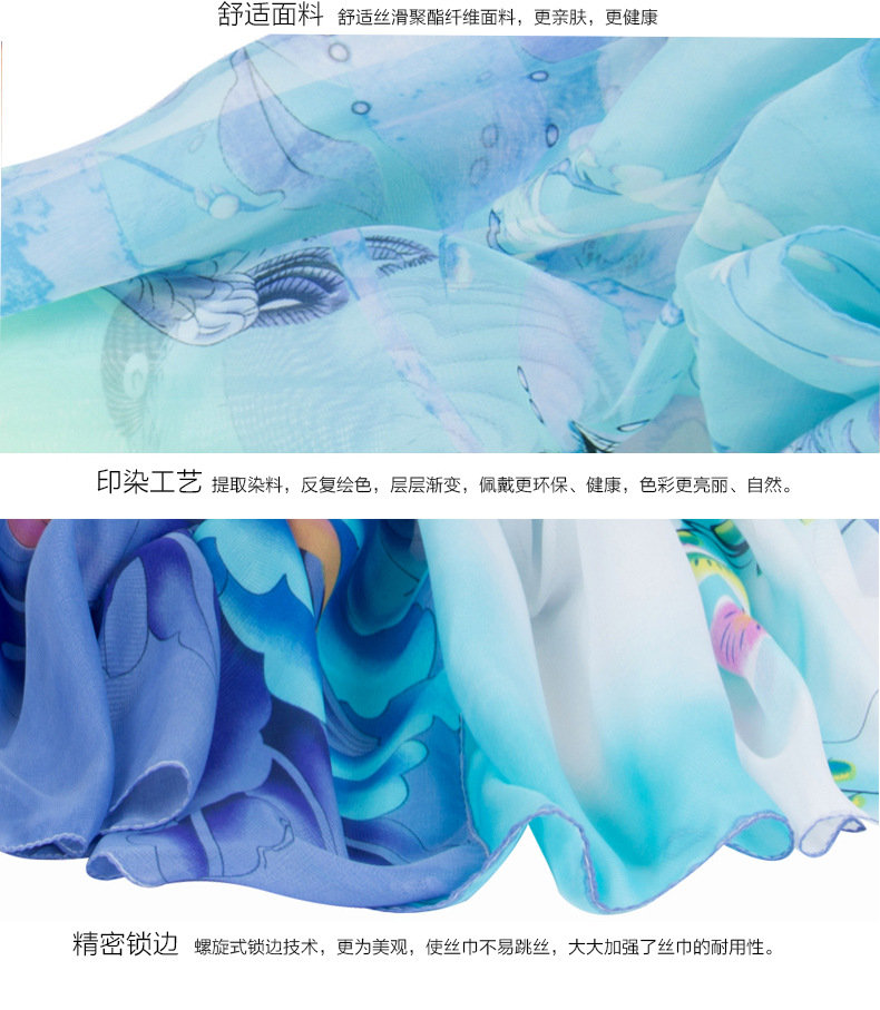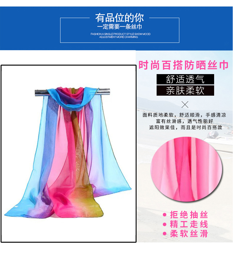 쉬폰 소재 긴 수건 그라디언트 통기성 스카프 목도리 비치 타월 자외선 차단제 UV 댄스를 일치시킬 수 있습니다스토어 가기