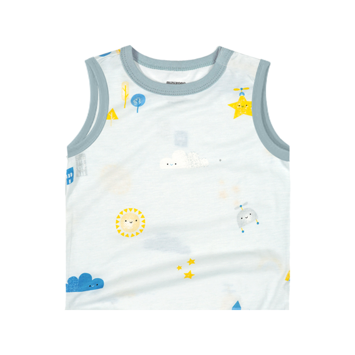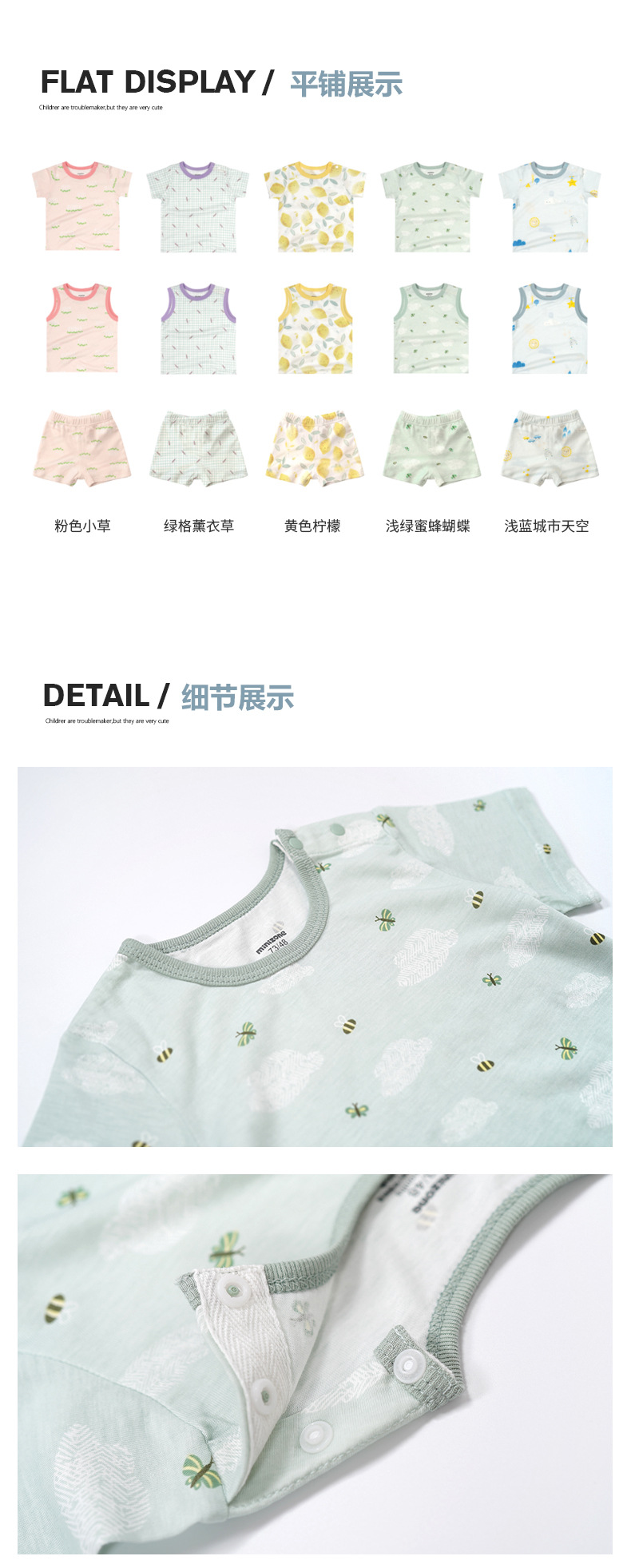 Minizone 아기 여름 얇은 반팔 티셔츠 아기 반바지 소년과 소녀를위한 얇은 조끼 아기 옷스토어 가기