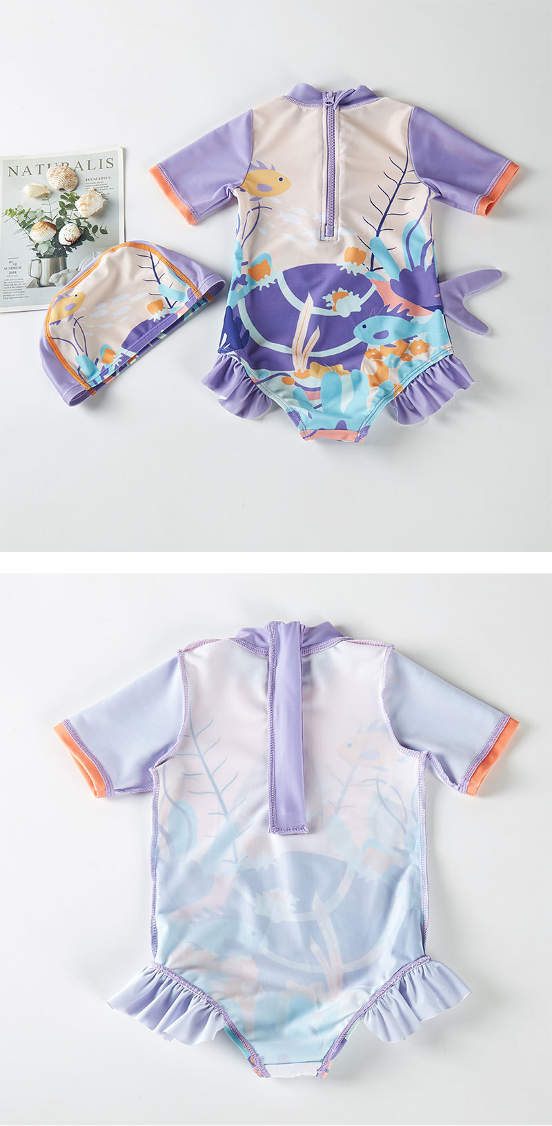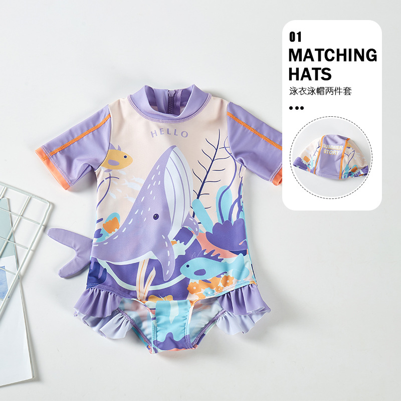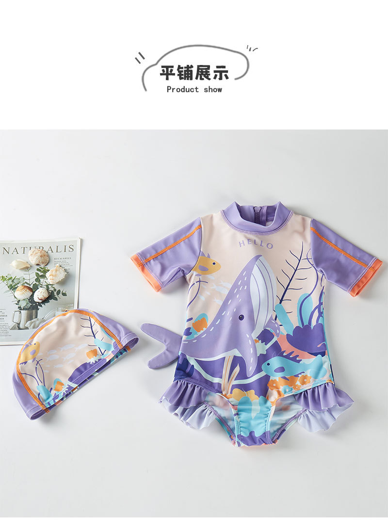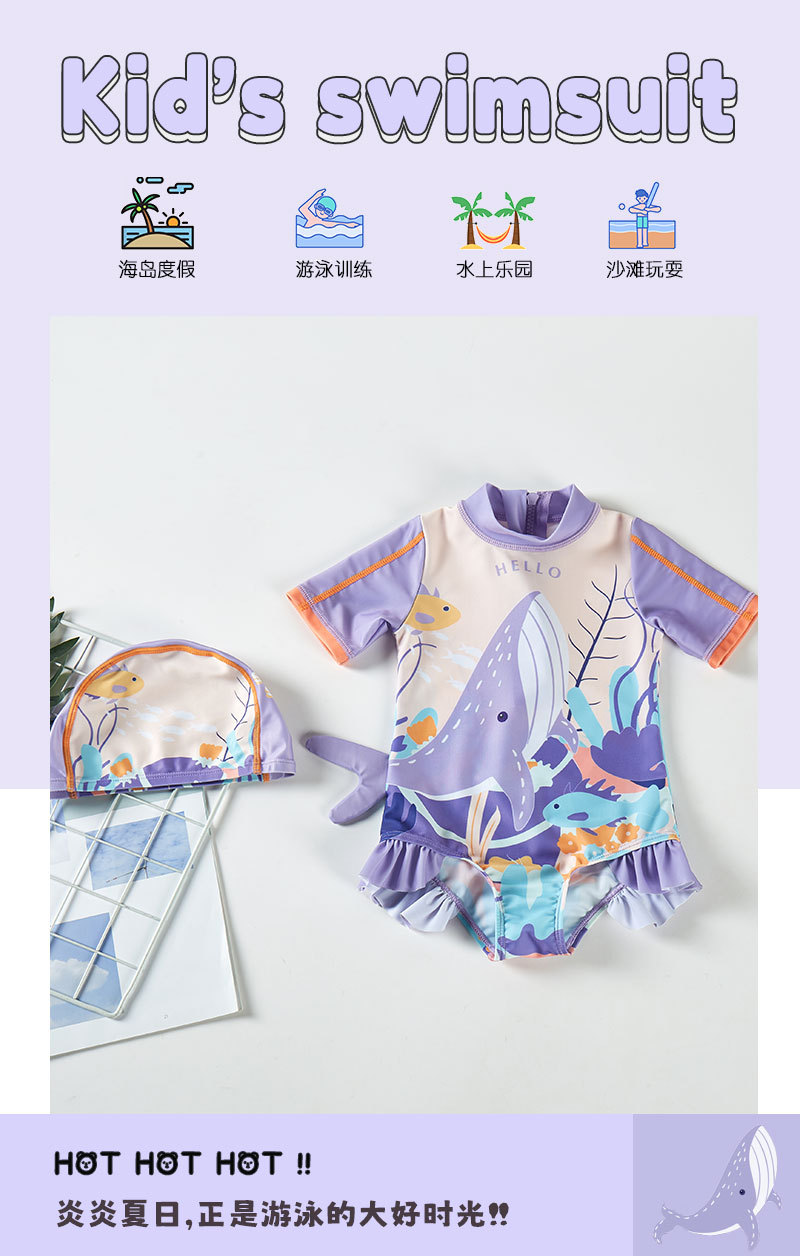 어린이 수영복 소녀 원피스 수영복 귀여운 만화 어린이 태양 보호 빠른 건조 해변 휴가 수영복 2024