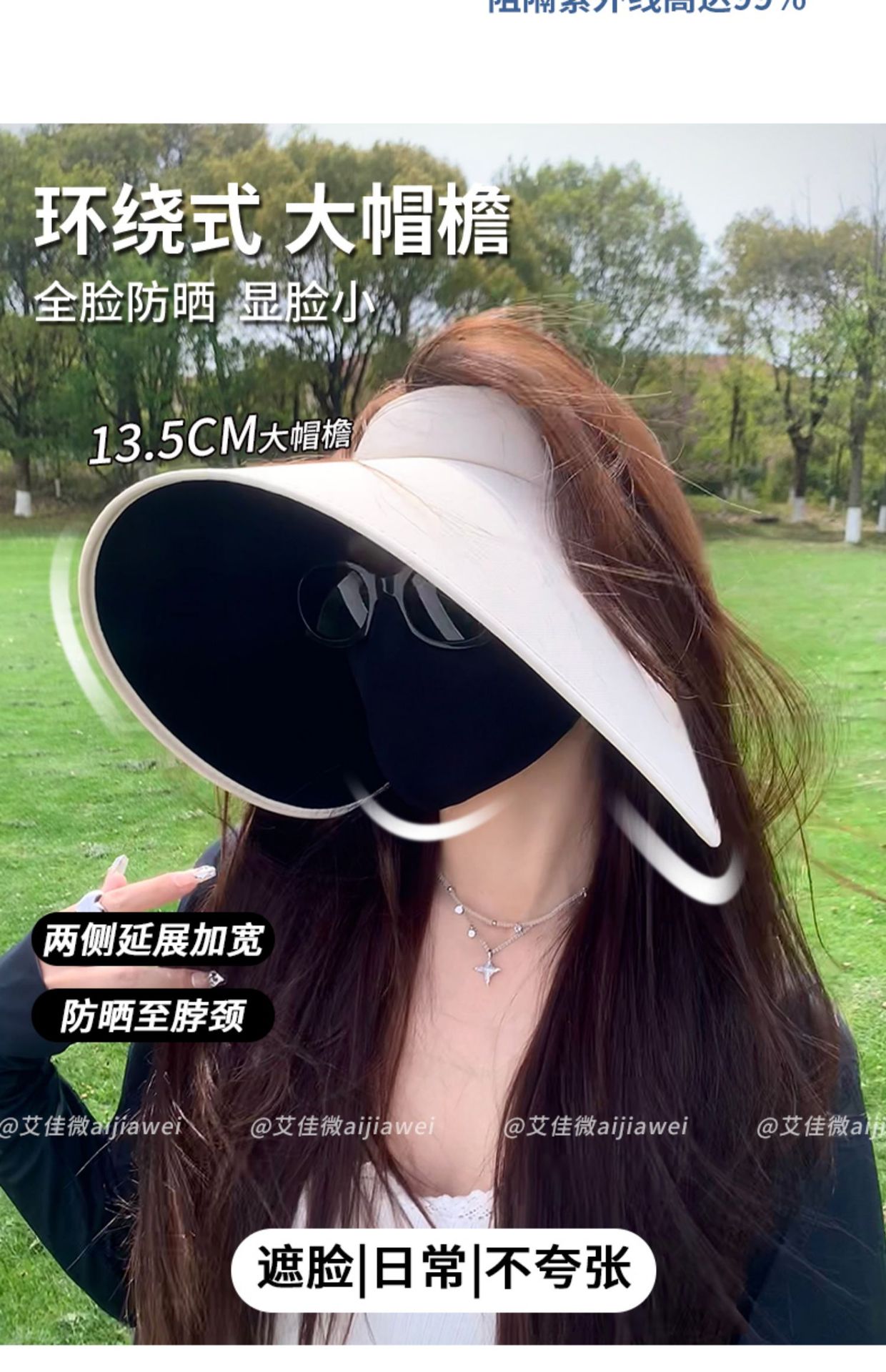 2024 새로운 무광택 벨벳 비닐 선 스크린 캡 여성의 빈 탑 큰 브림 차양 모자 UV 보호 태양 모자스토어 가기