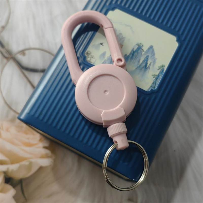공장 도매 접착제 로고 쉽게 풀 버클 단색 마카롱 배낭 키 체인 와이어 로프 야외 쉬운 풀스토어 가기