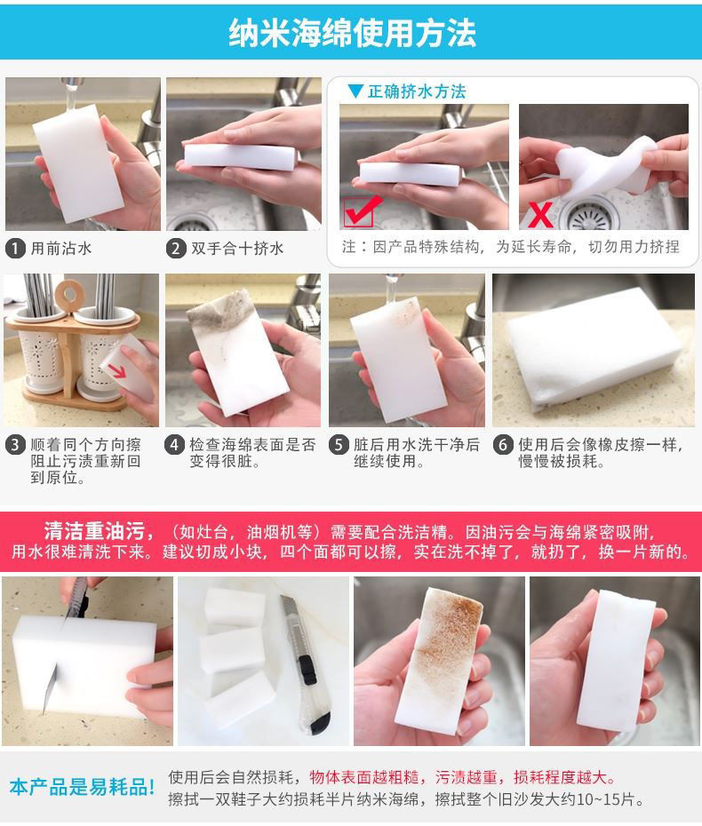 Beijingjie 가정용 고밀도 나노 스폰지 고밀도 매직 닦기 효과적인 오염 제거 주방 청소 매직 닦기
