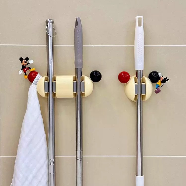걸레 벽 클립 빗자루 걸레 클립 강한 귀여운 만화 옷걸이 욕실 걸레 후크 화장실 펀치 프리스토어 가기