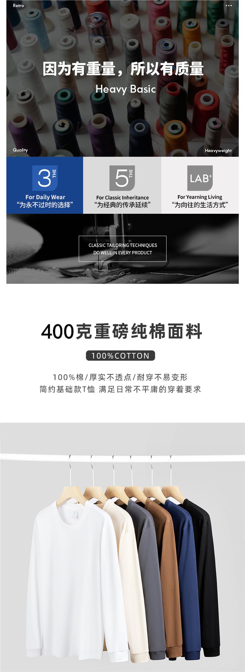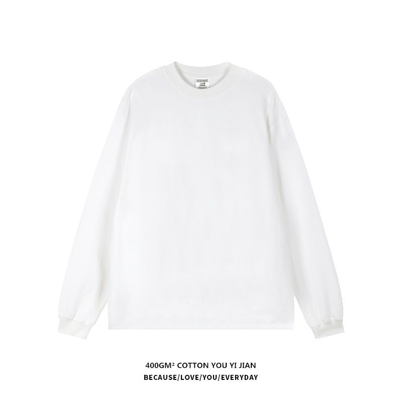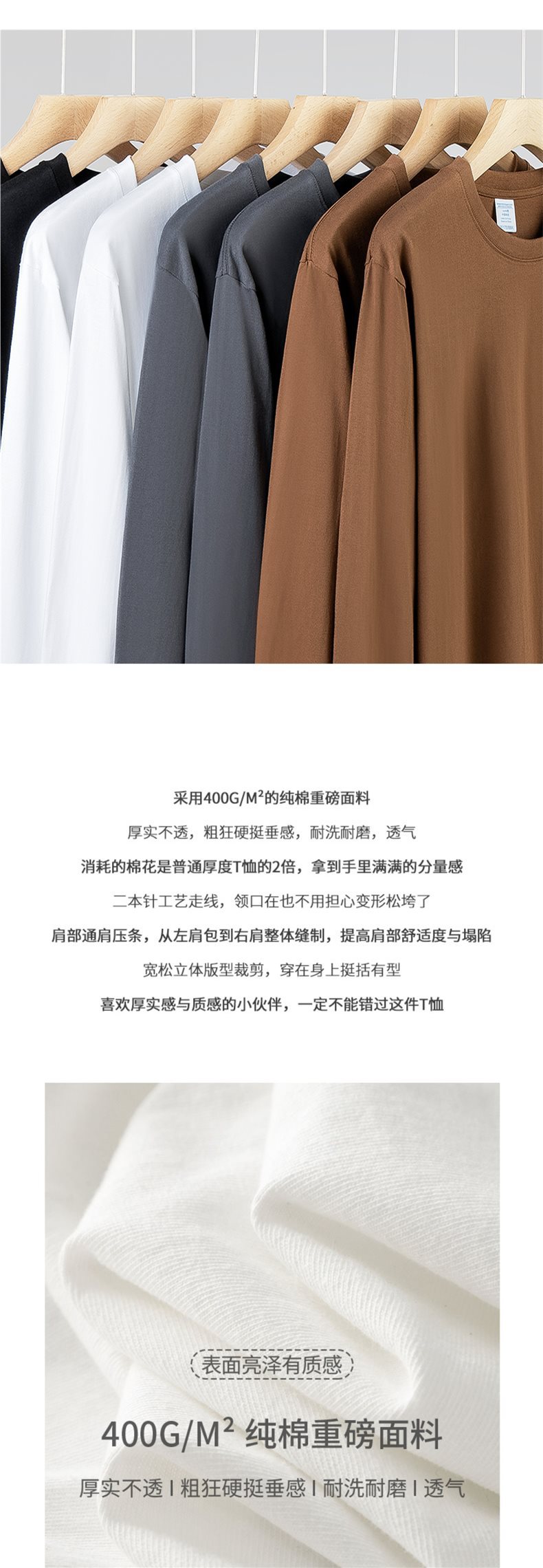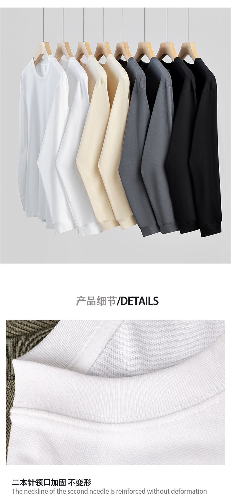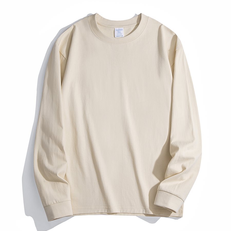 미국의 작은 목선 400g 무거운 티셔츠 남성용 긴 소매 블레이드 기본 셔츠 뻣뻣한 단색 느슨한 하이 스트리트 화이트 T스토어 가기
