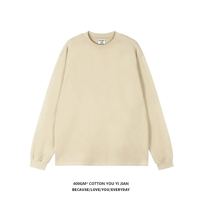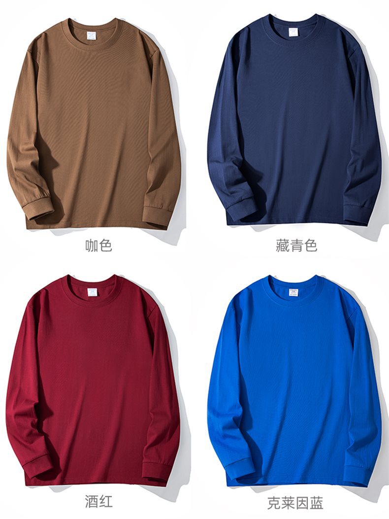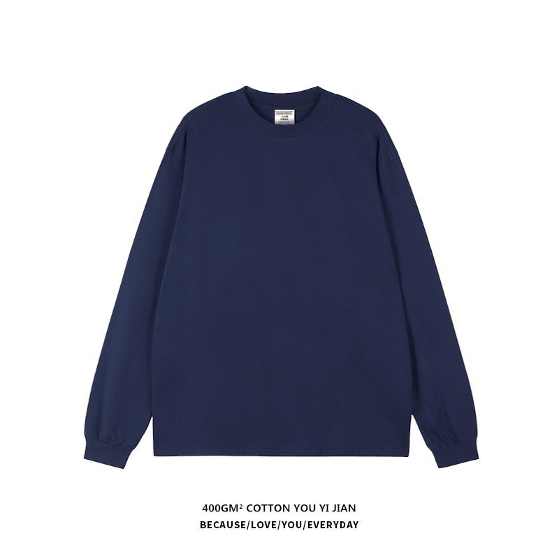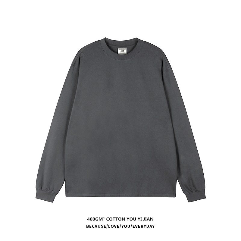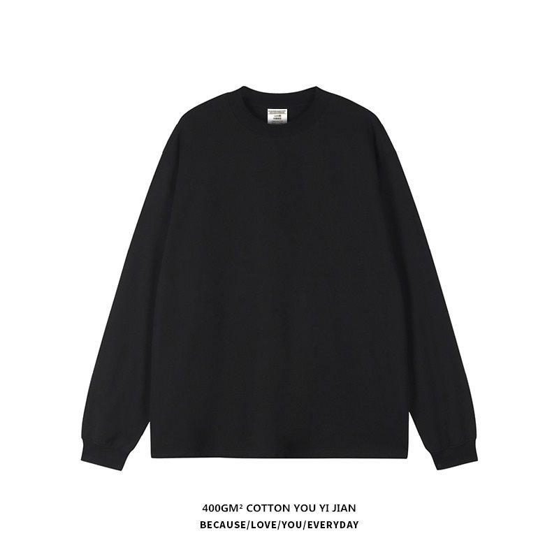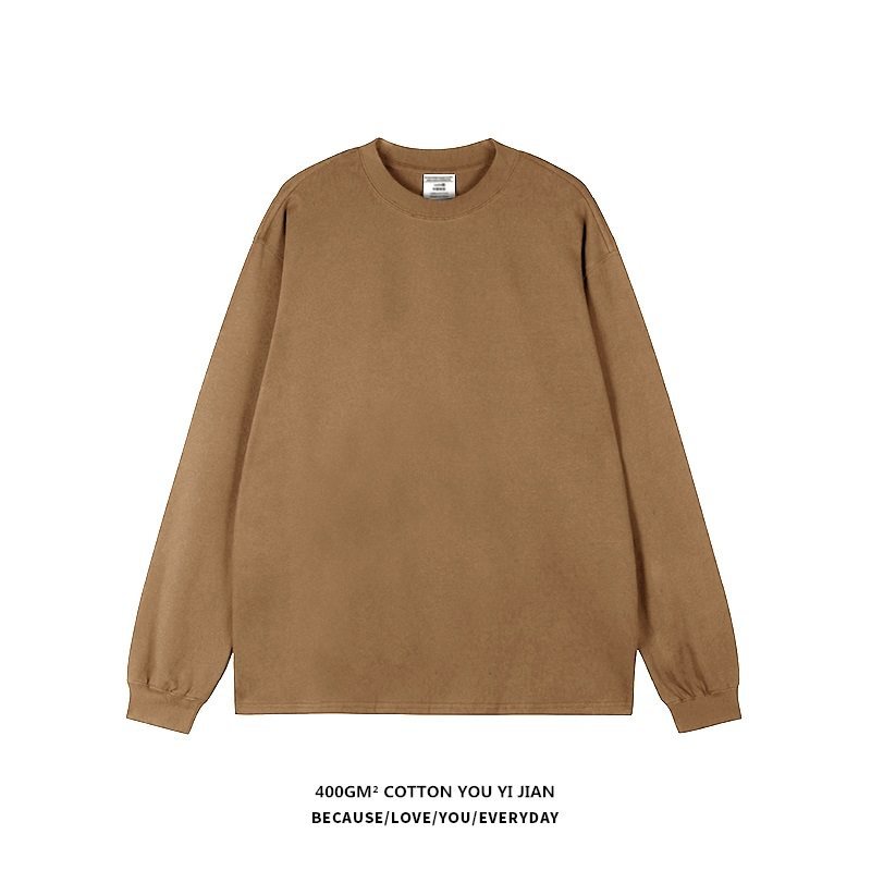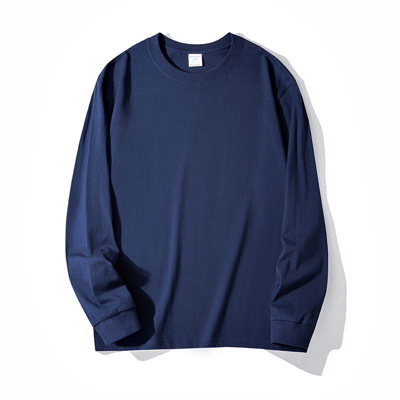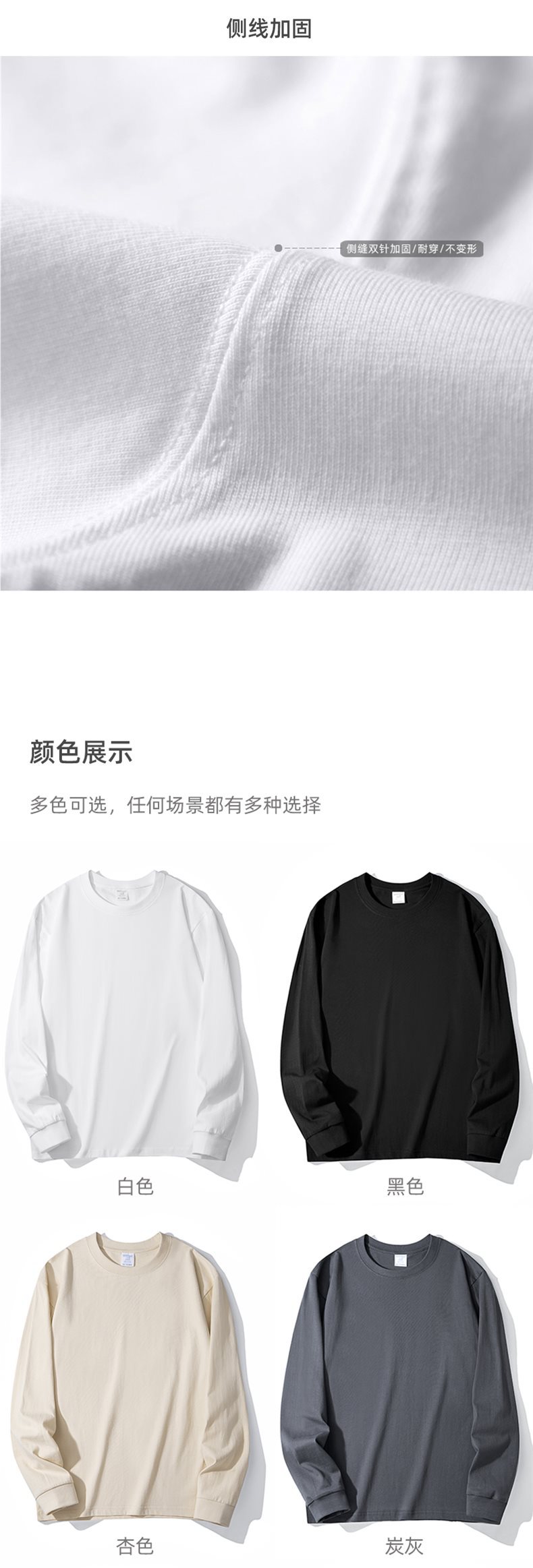 미국의 작은 목선 400g 무거운 티셔츠 남성용 긴 소매 블레이드 기본 셔츠 뻣뻣한 단색 느슨한 하이 스트리트 화이트 T스토어 가기