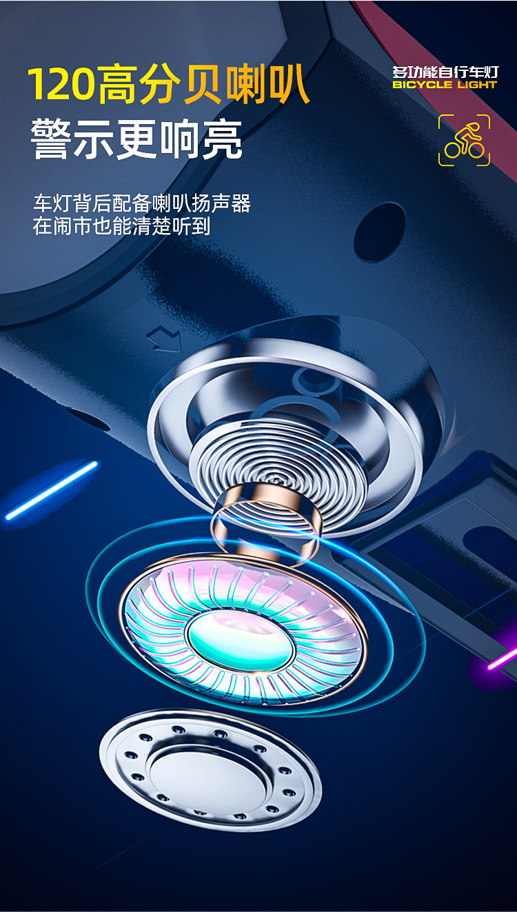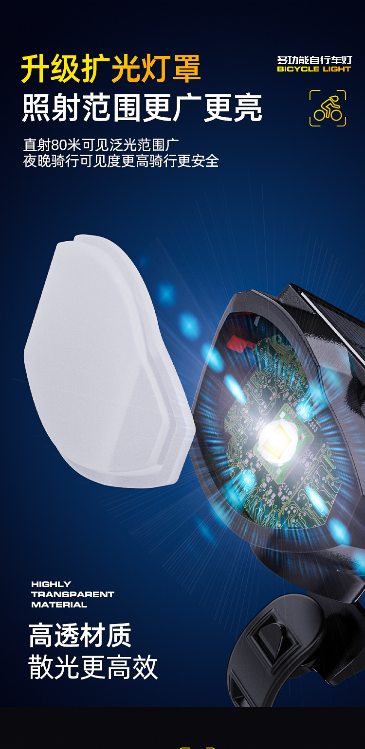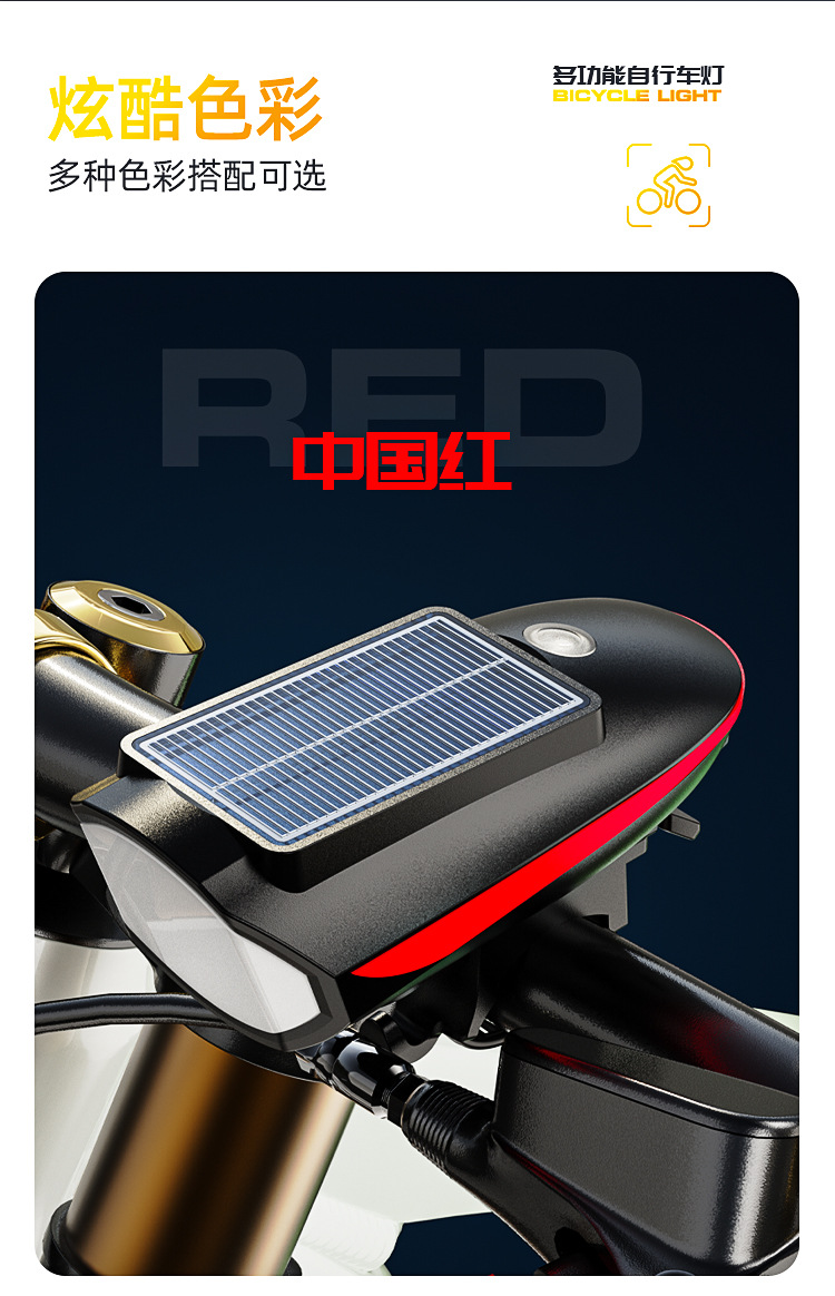 태양 충전식 자전거 라이트 사이클링 라이트 강한 빛 경적 빛 야외 장비 손전등 자전거 헤드 라이트