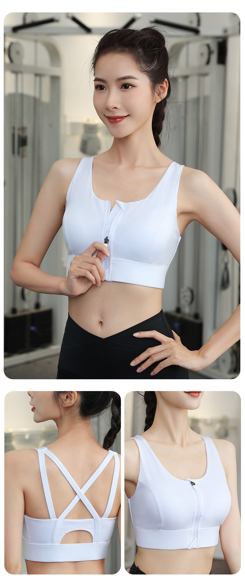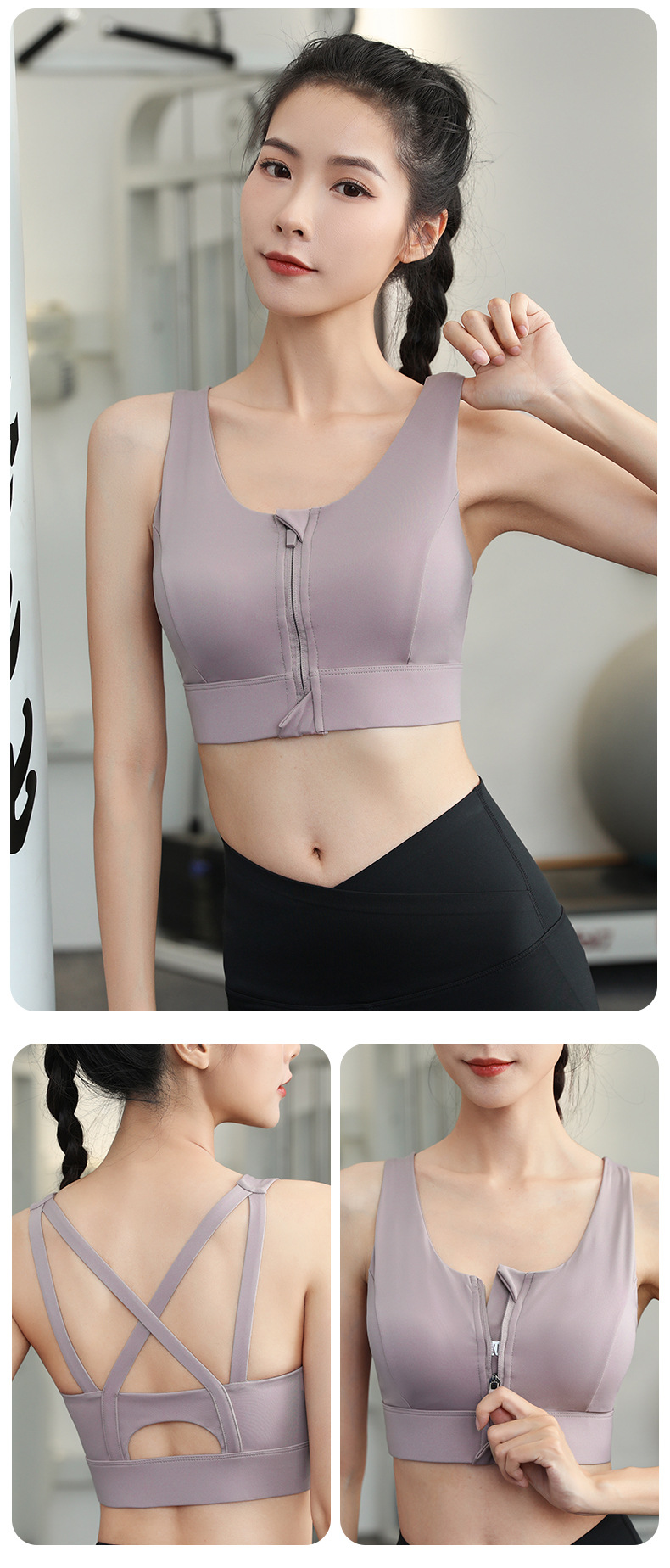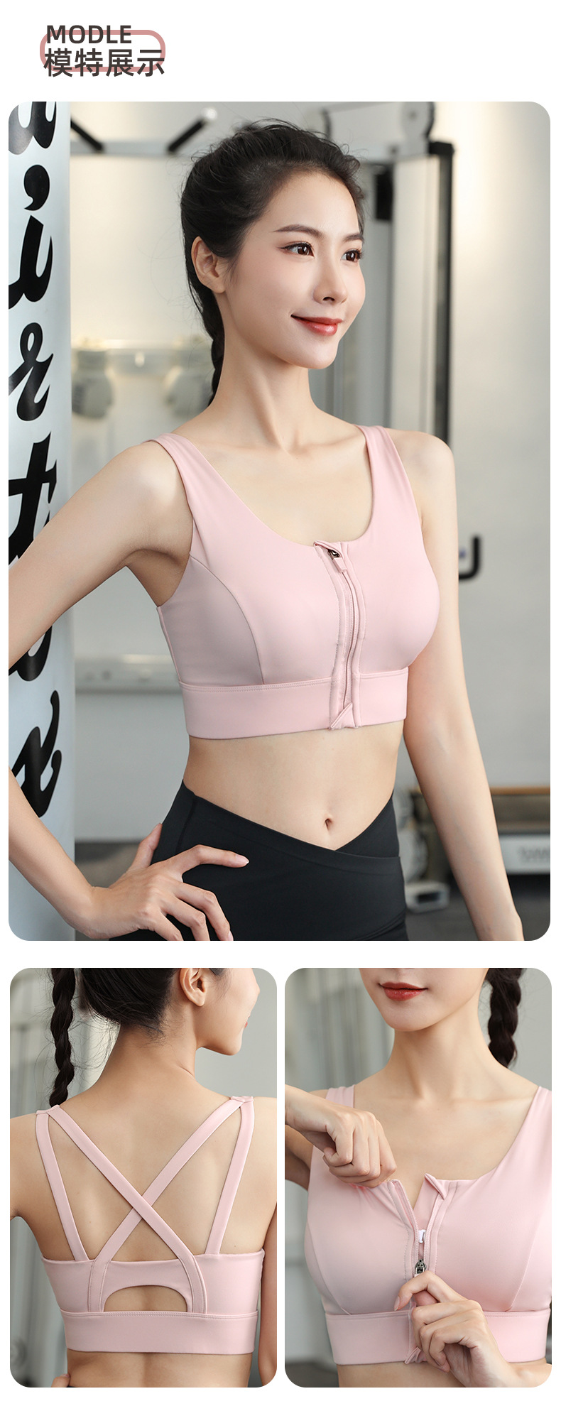 고강도 충격 방지 스포츠 속옷 여성 전면 지퍼 통합 고정 컵 가슴 패드 아름다운 뒤로 요가 브래지어 큰 가슴 빛나는스토어 가기