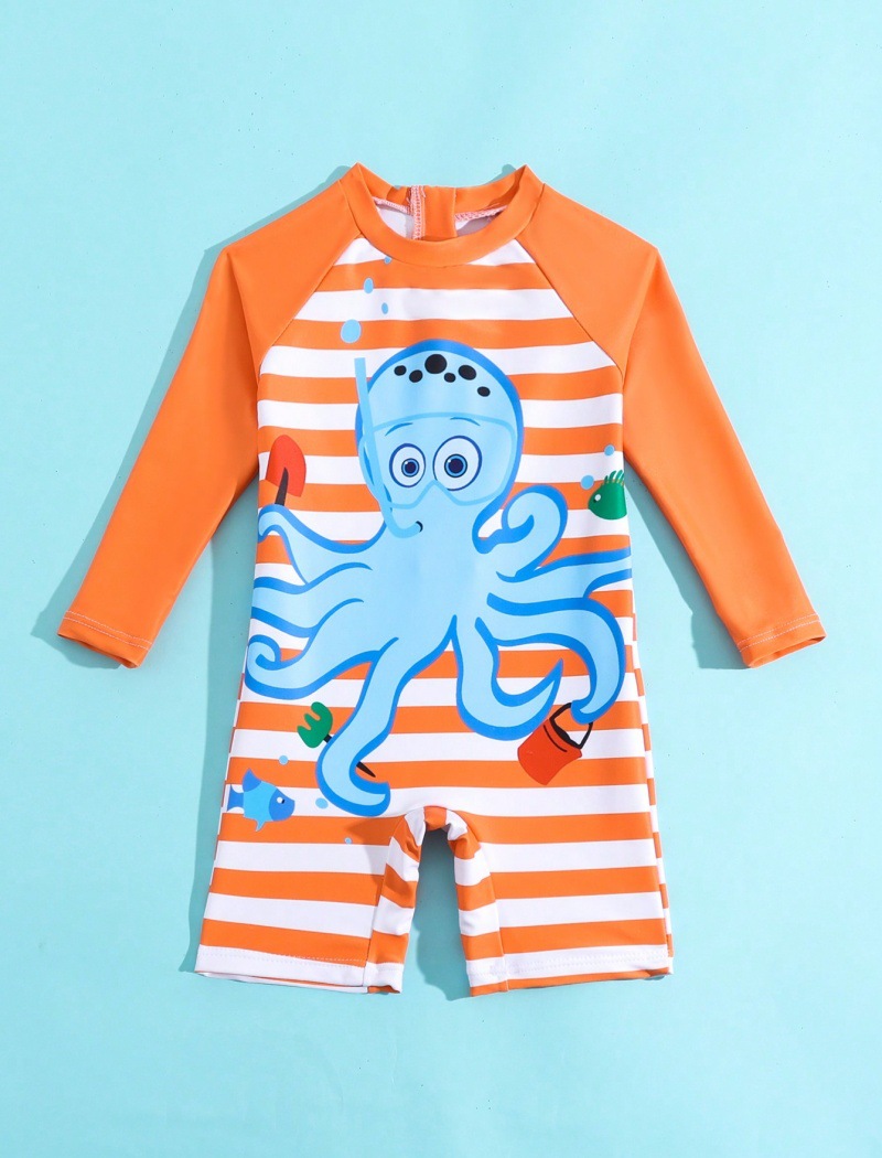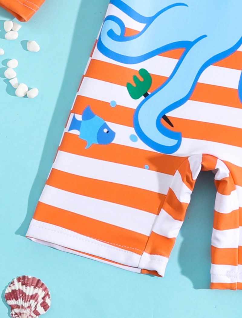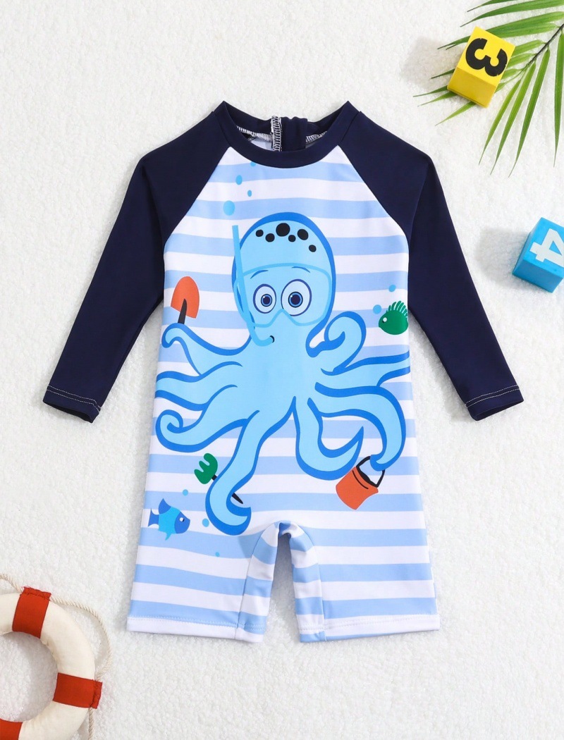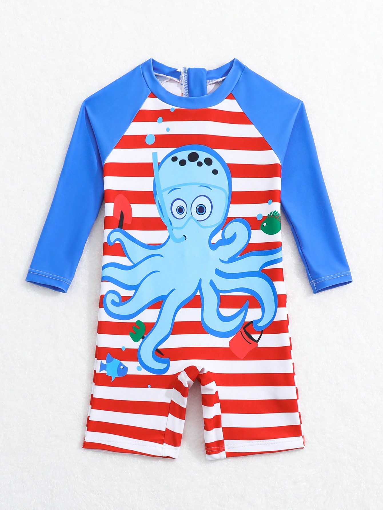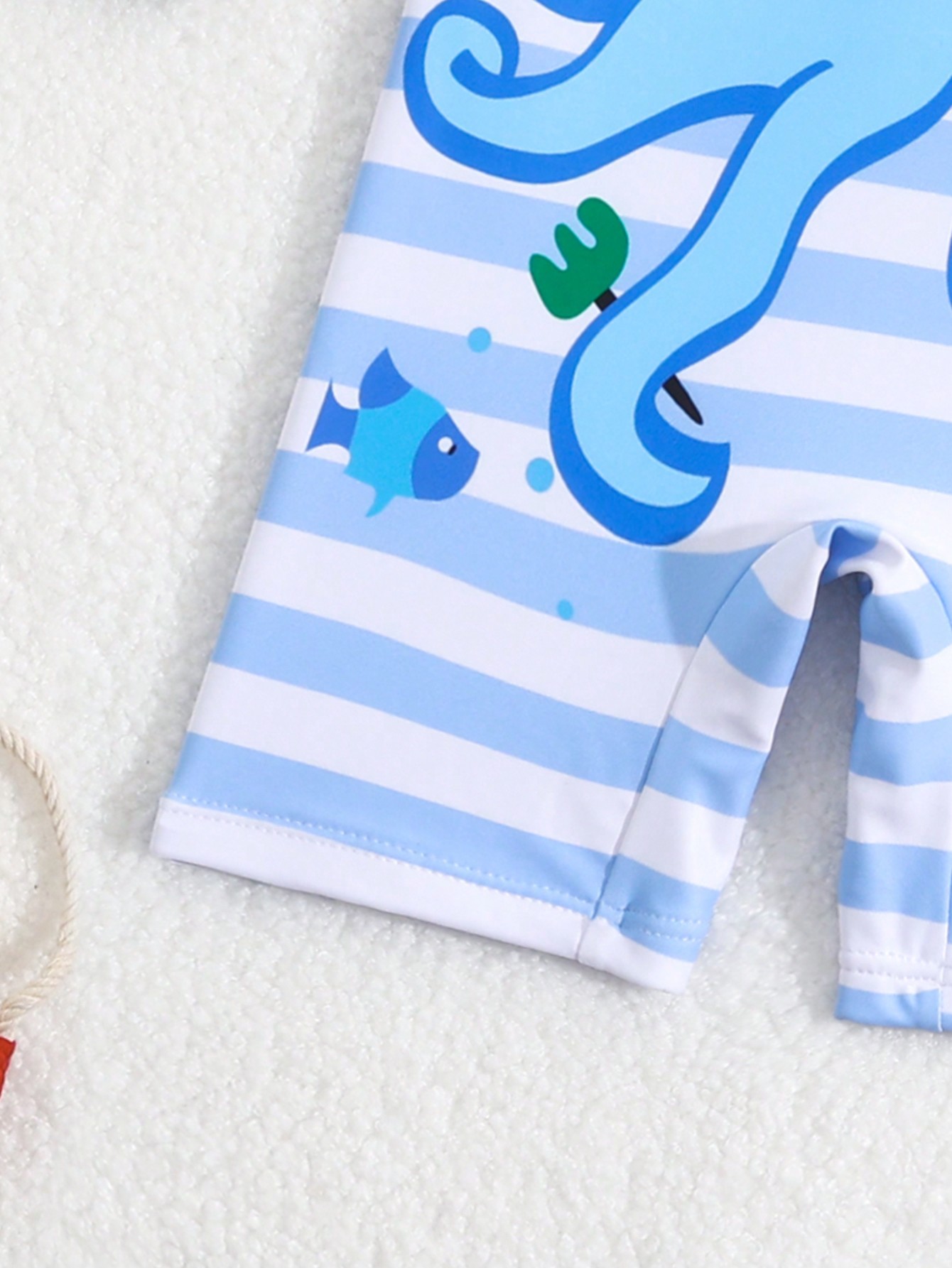 2024 새로운 대외 무역 큰 아이들을위한 어린이 원피스 수영복 귀여운 문어 소년 원피스 수영복 유럽과 미국 국경