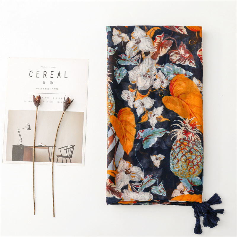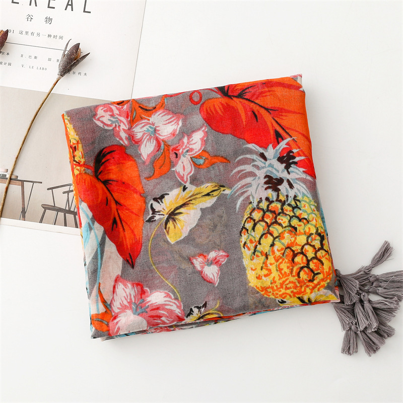 여름 다채로운 과일 파인애플 잎 밝은 스카프 여행 선 스크린 스카프 액세서리 착용 얇은 목도리 여성스토어 가기
