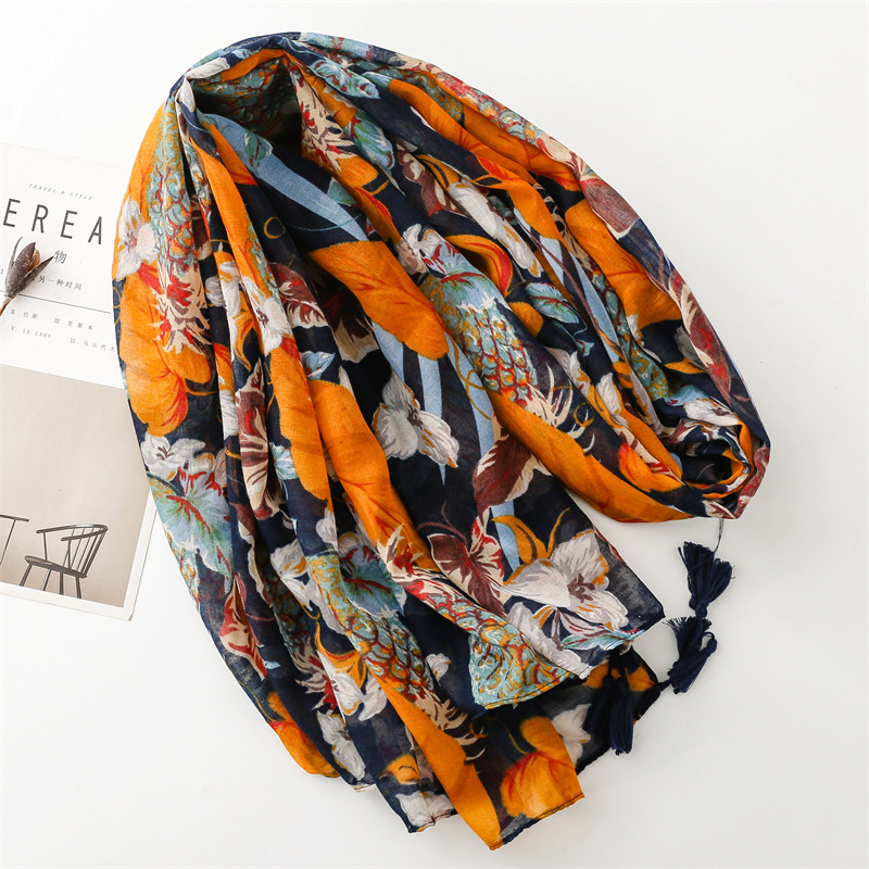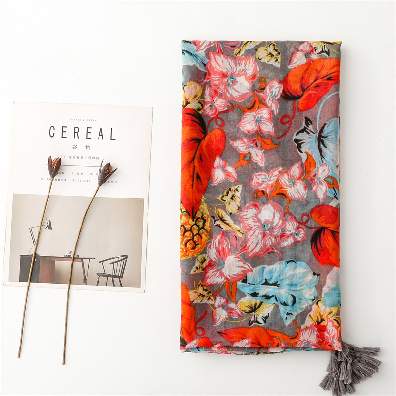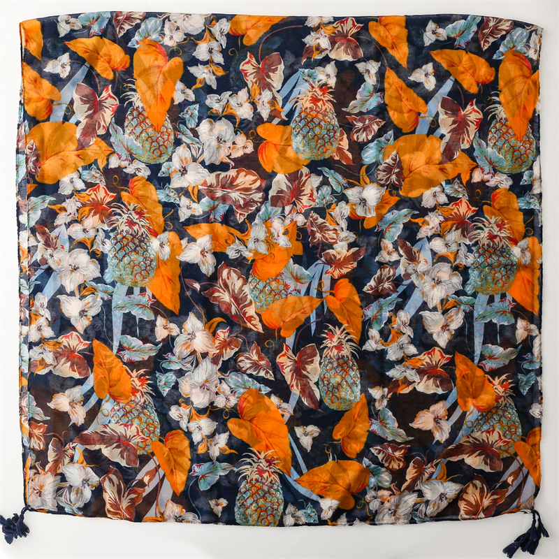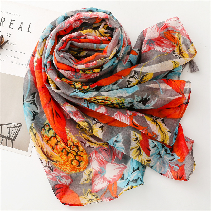 여름 다채로운 과일 파인애플 잎 밝은 스카프 여행 선 스크린 스카프 액세서리 착용 얇은 목도리 여성