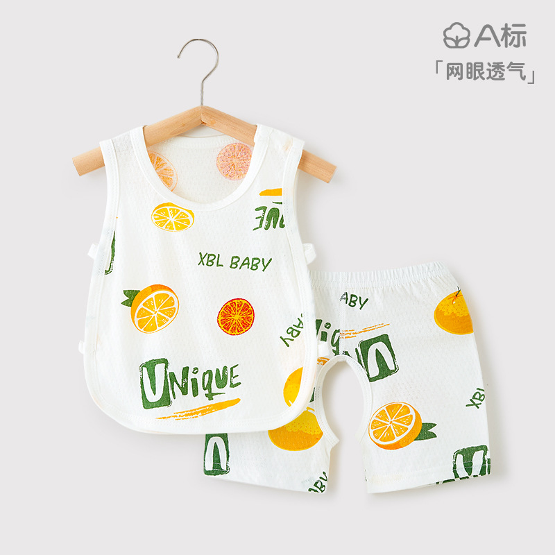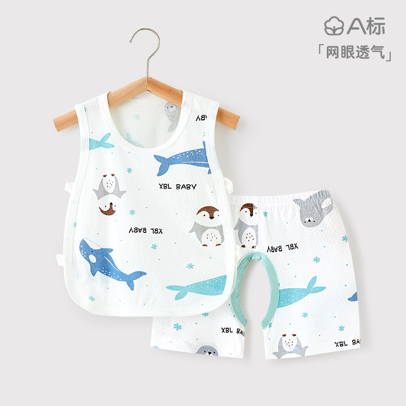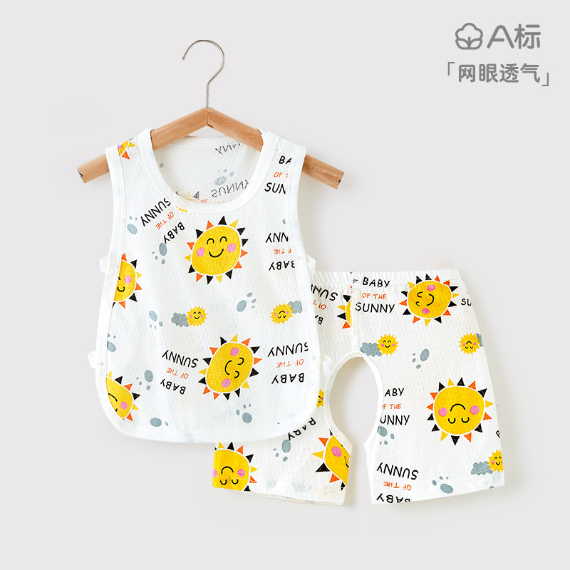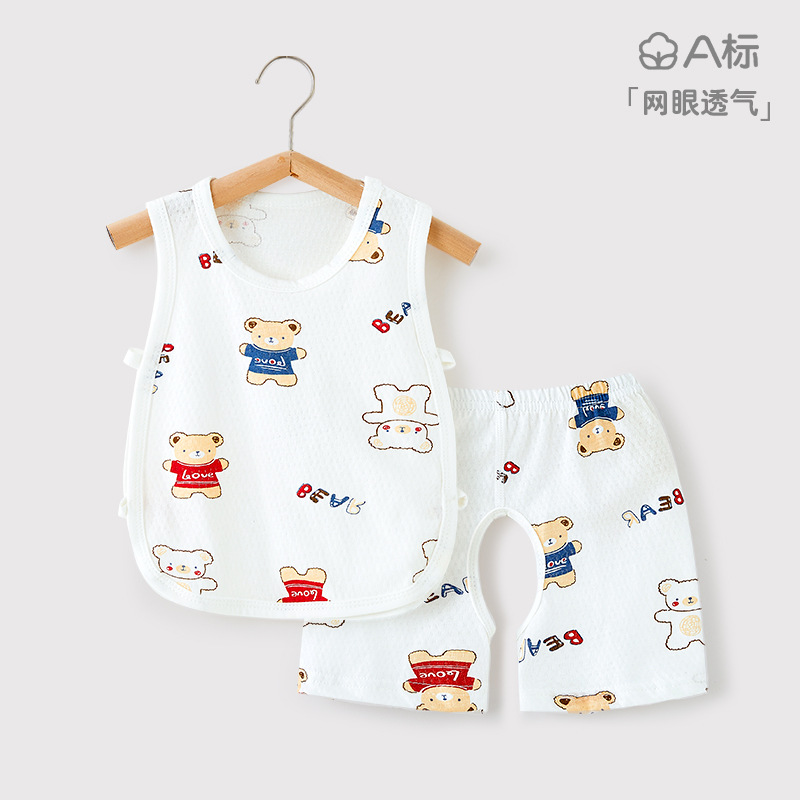 아기 피파 조끼 세트 여름 신생아 아기 오픈 크로트 바지 소년 소녀 피파 셔츠 빈 배 보호 카미솔 셔츠스토어 가기