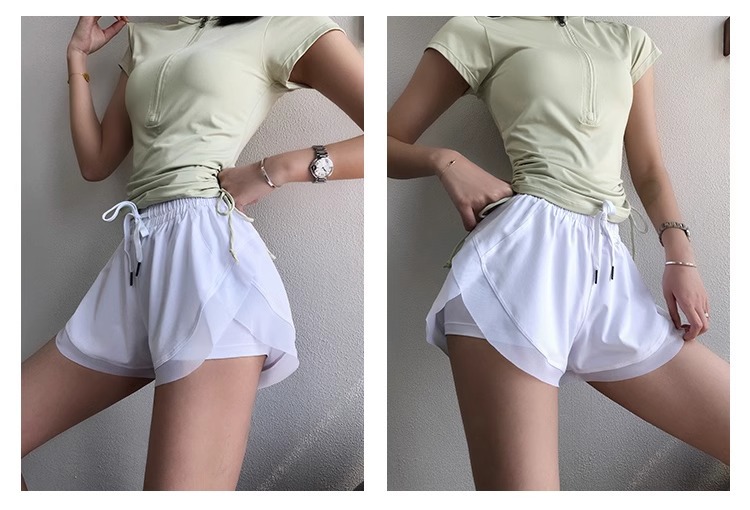 여름 높은 허리 스포츠 반바지 여성의 빠른 건조 통기성 가짜 투피스 피트니스 바지 안티 라이트 외부 착용 요가 훈련 러닝 바지