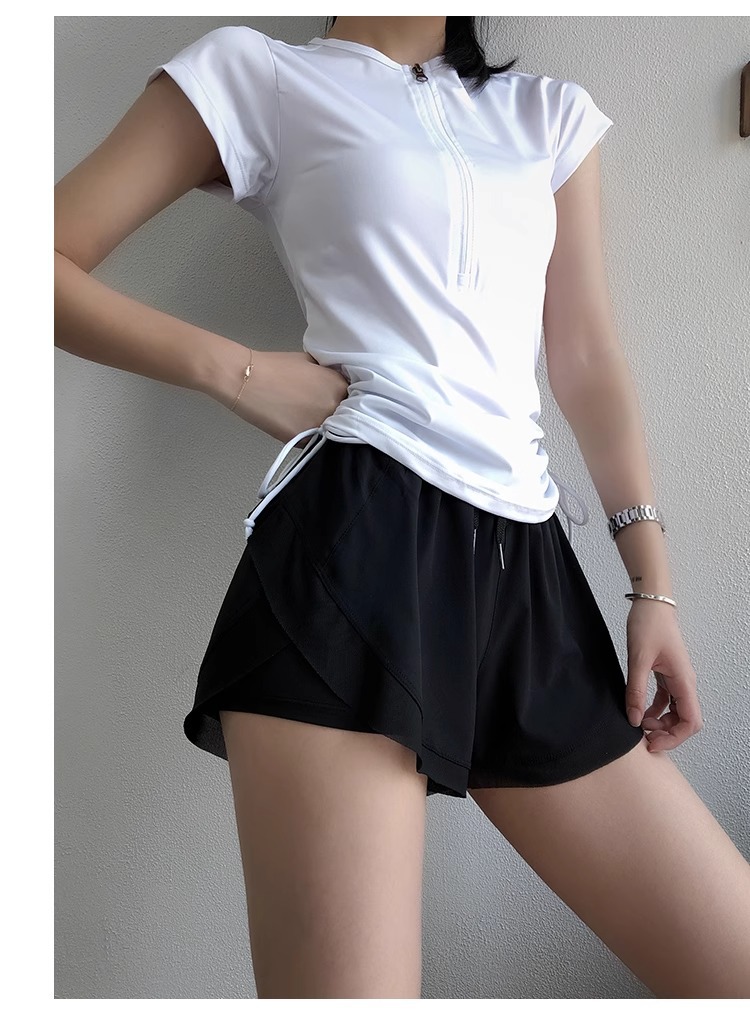 여름 높은 허리 스포츠 반바지 여성의 빠른 건조 통기성 가짜 투피스 피트니스 바지 안티 라이트 외부 착용 요가 훈련 러닝 바지스토어 가기