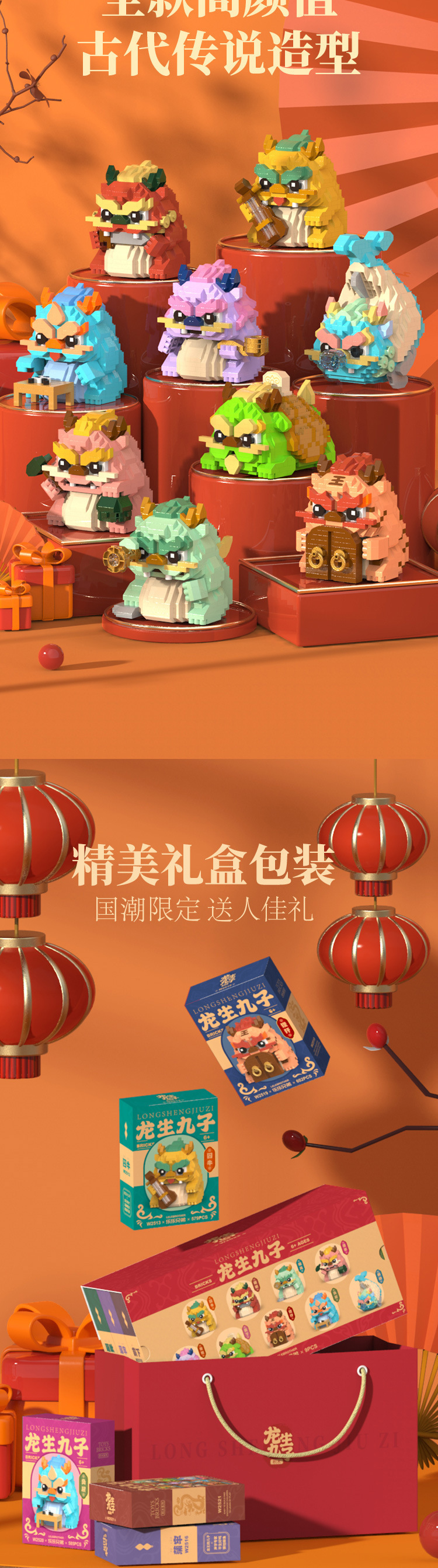 레고 Longsheng Jiuzi 어린이 작은 입자 빌딩 블록 새해 트렌디 한 놀이 블라인드 박스 창조적 인 인형 선물 장난감과 호환