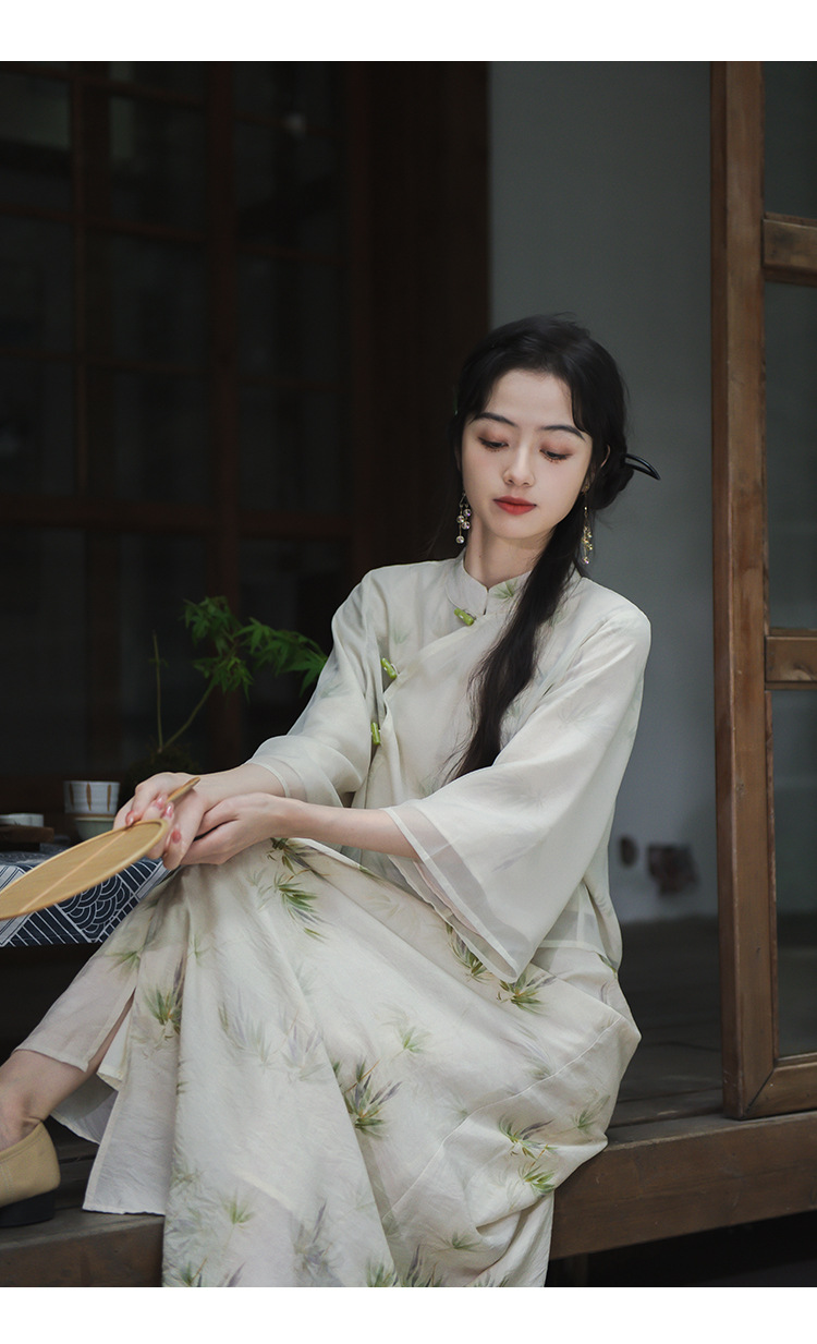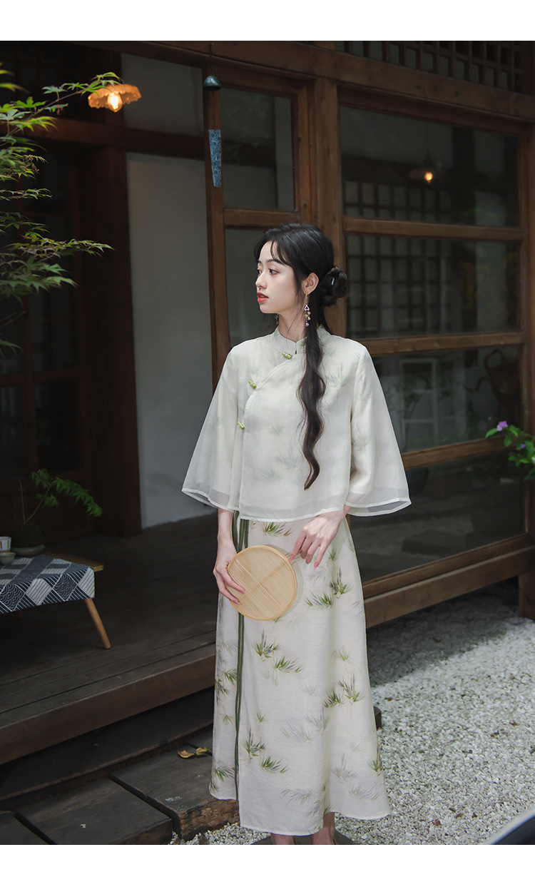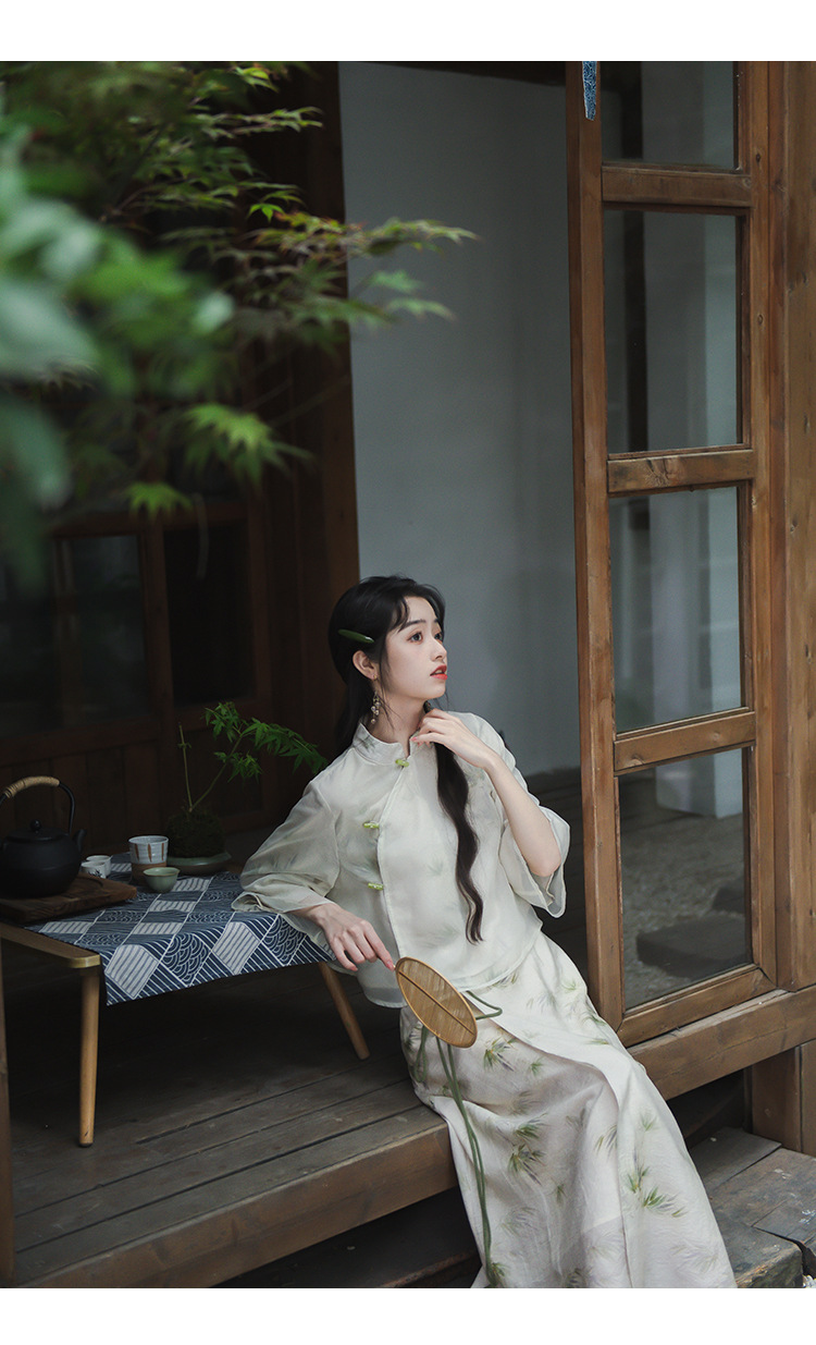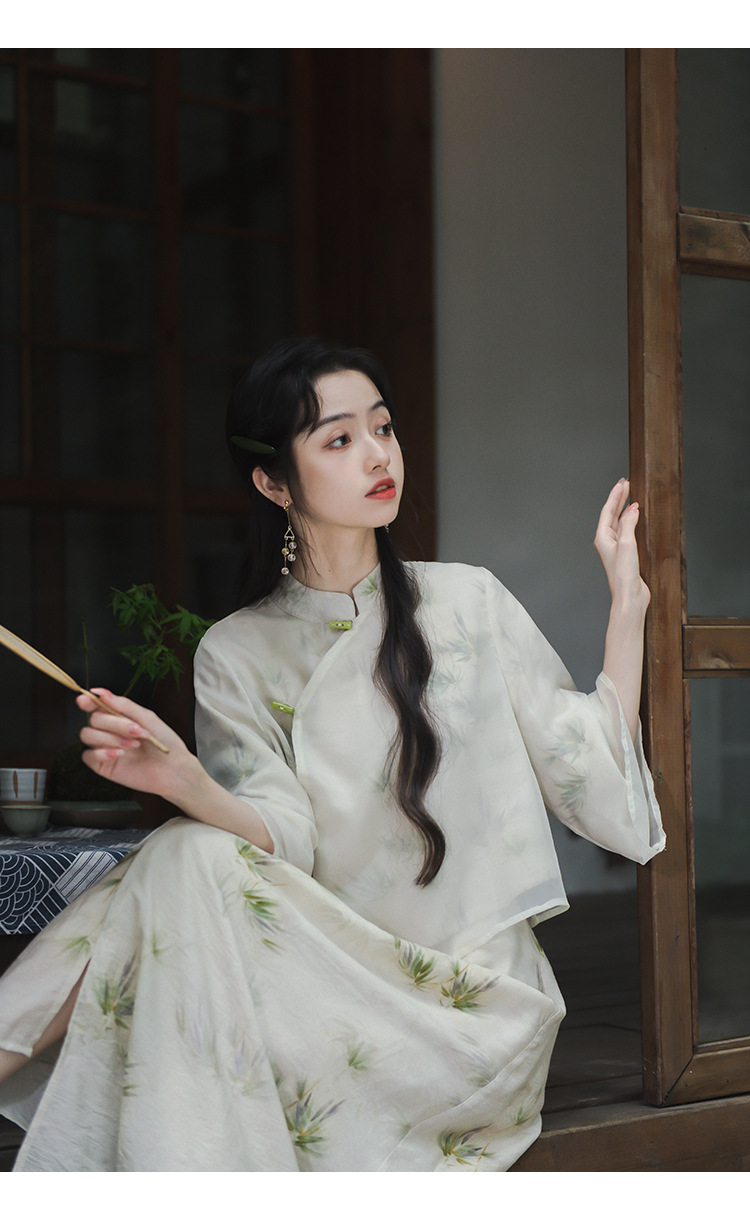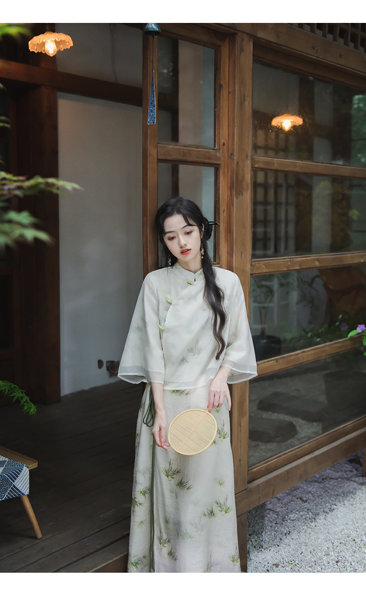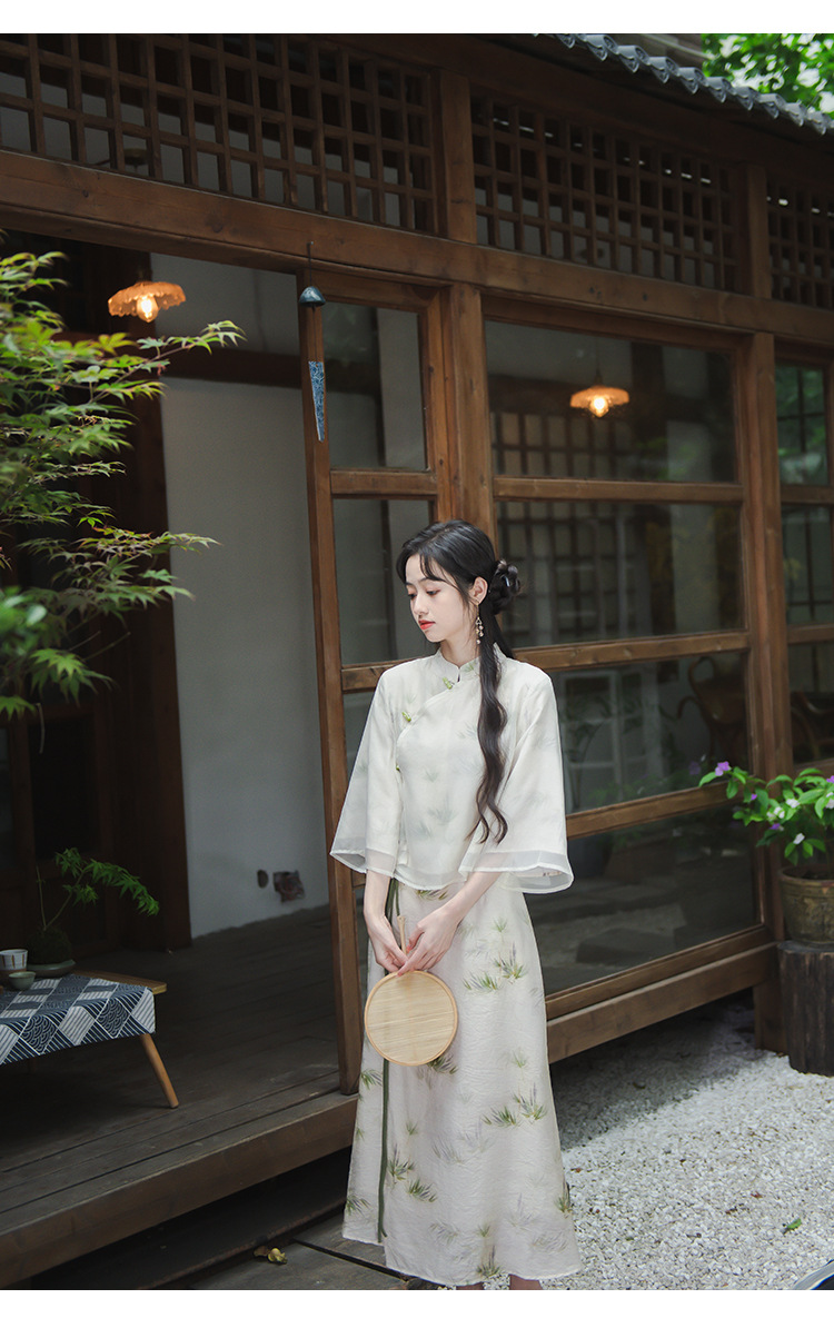 2024 패션 여름 새로운 요정 스타일 우아한 선 스타일 여성의 여름 수정 된 청삼 탑 새로운 중국 스타일 국가 스타일 세트