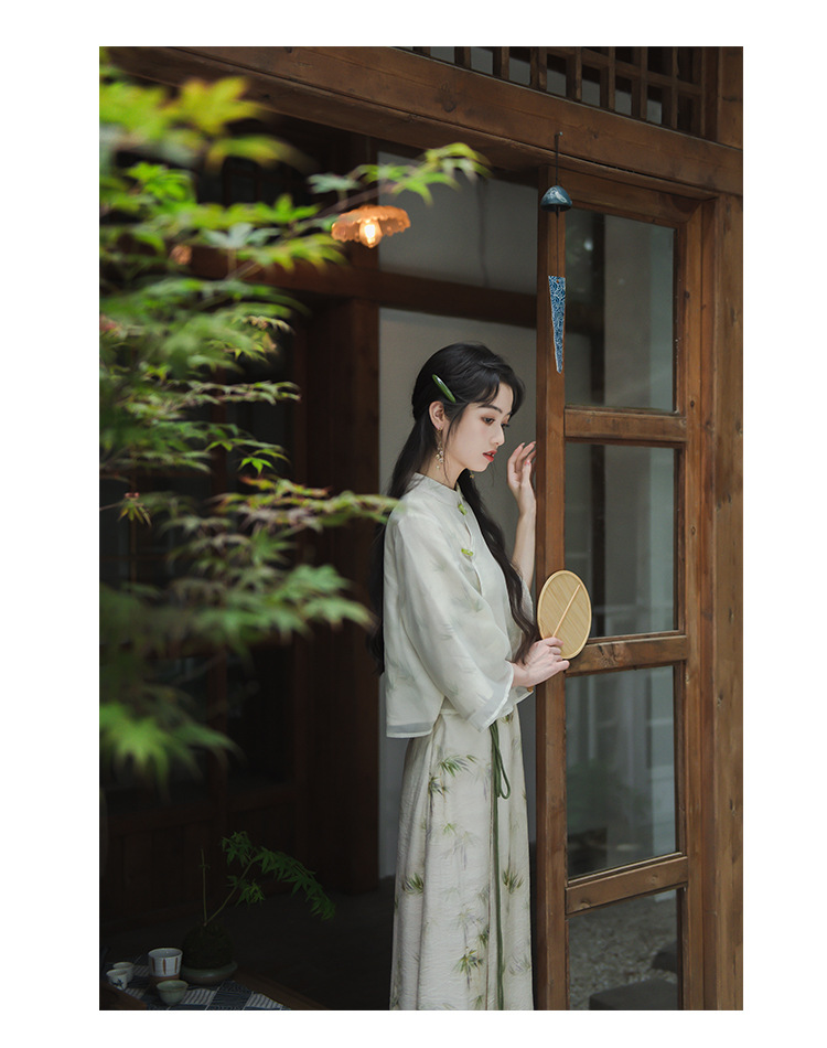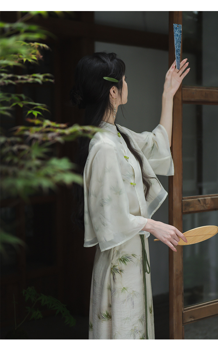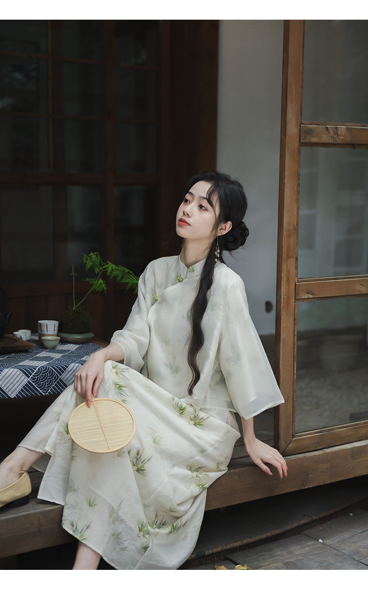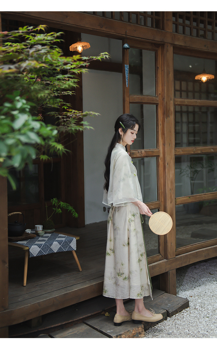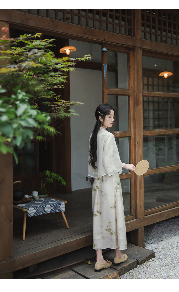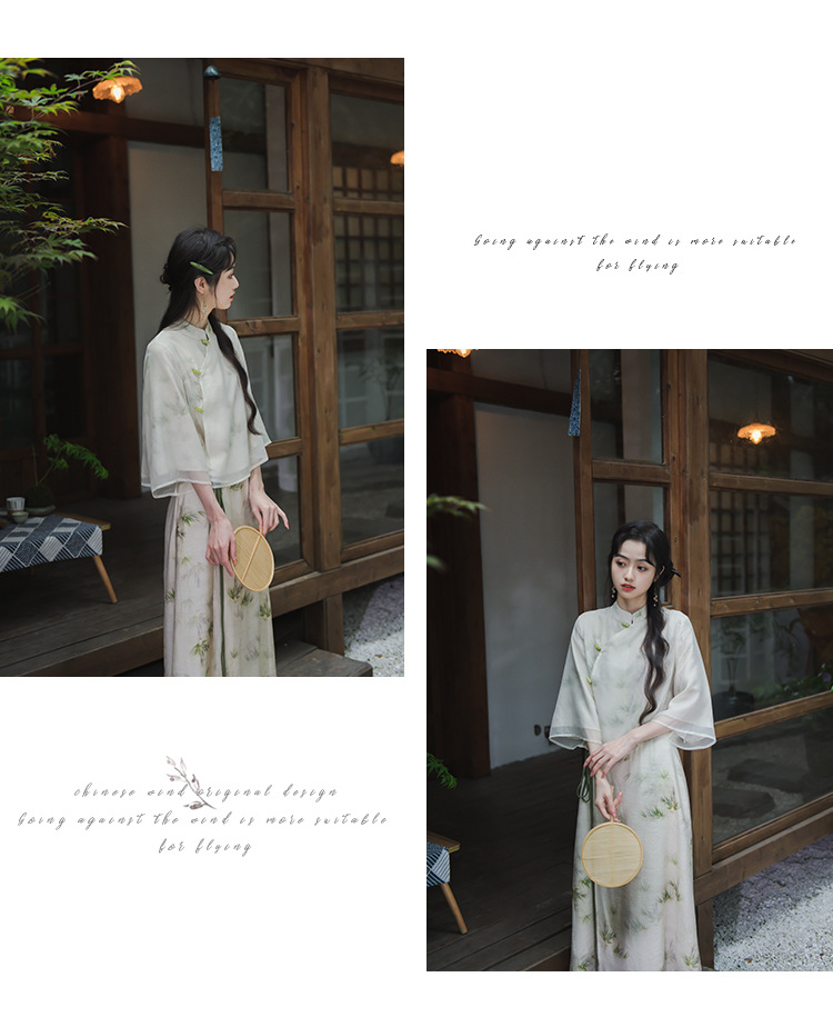 2024 패션 여름 새로운 요정 스타일 우아한 선 스타일 여성의 여름 수정 된 청삼 탑 새로운 중국 스타일 국가 스타일 세트