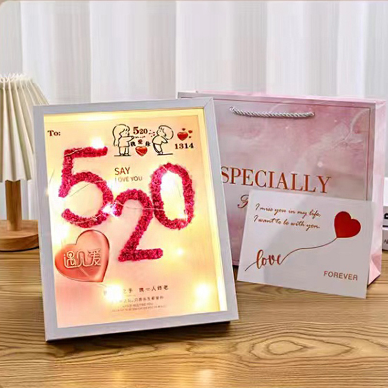 DIY 발렌타인 데이 스타 말린 꽃 사진 프레임 520 스타 말린 꽃 사진 프레임 수제 창조적 인 여자 친구 선물