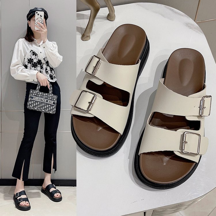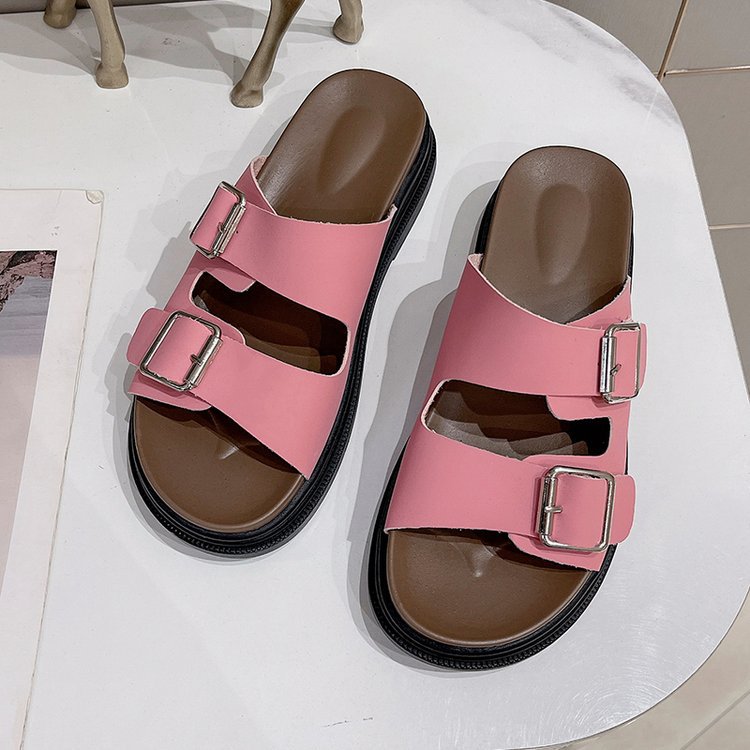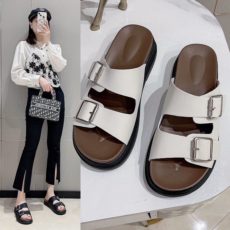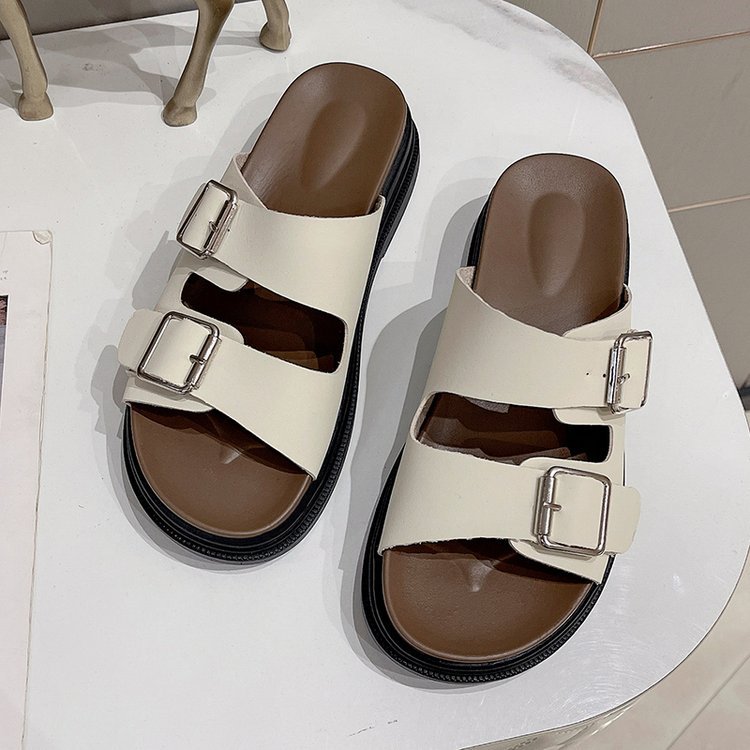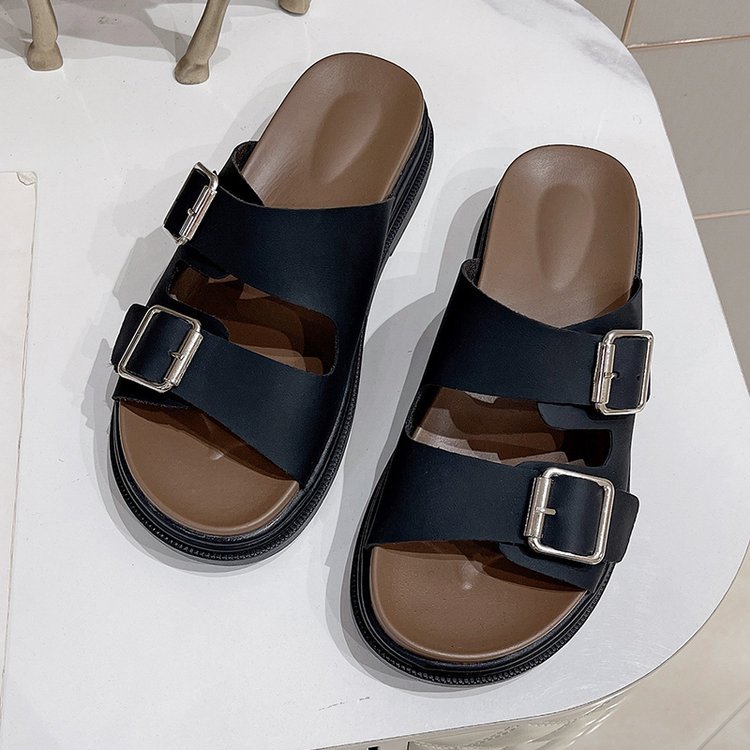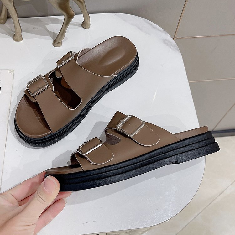 플랫폼 밑창 Birkenth 슬리퍼 여성 여름 2024 년 여름 새로운 라운드 토 Birkenth 신발 버클 스트랩이있는 올 매치 샌들