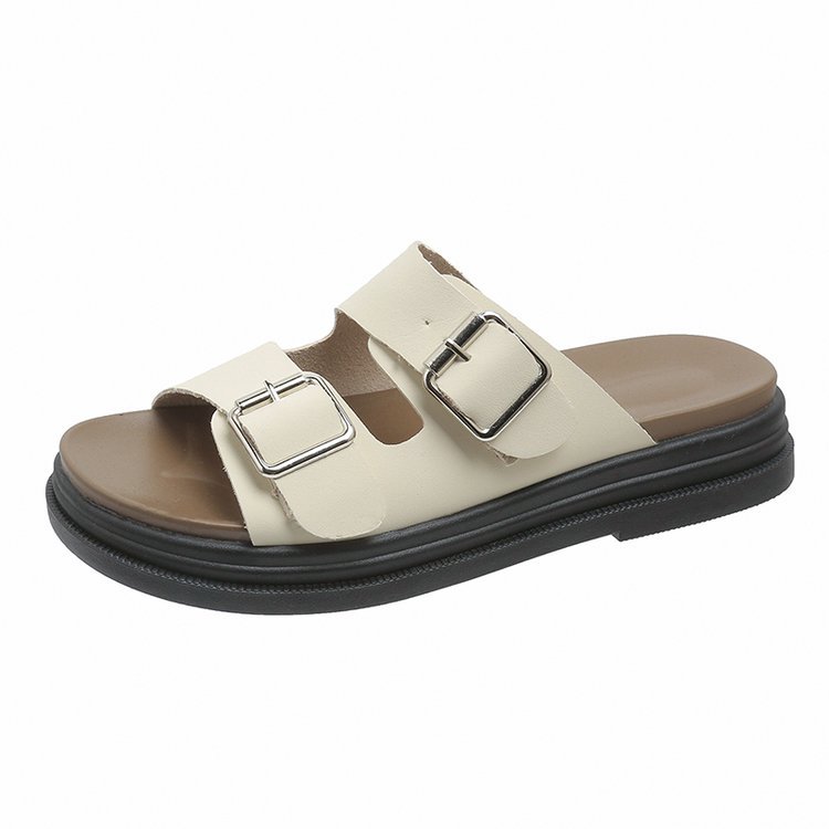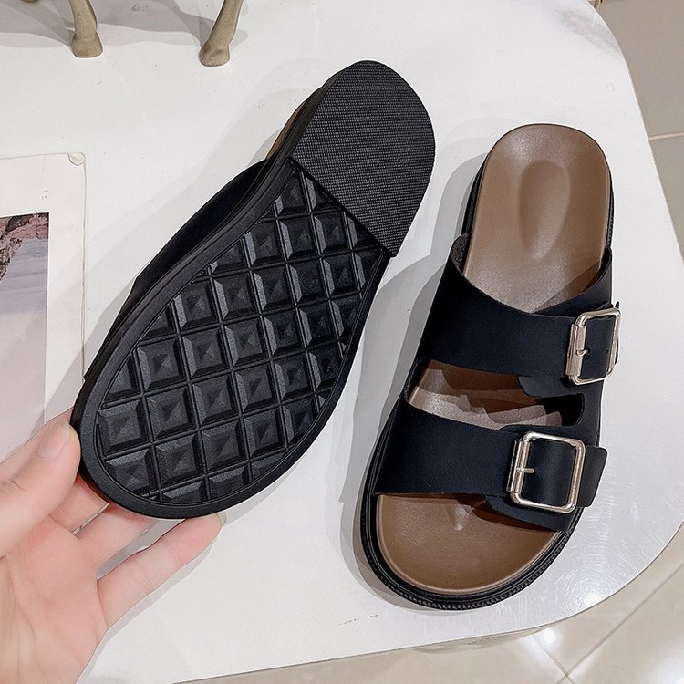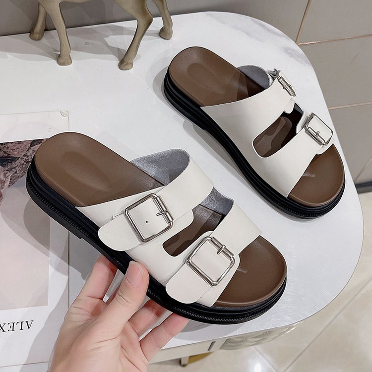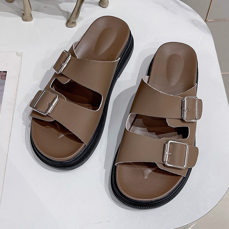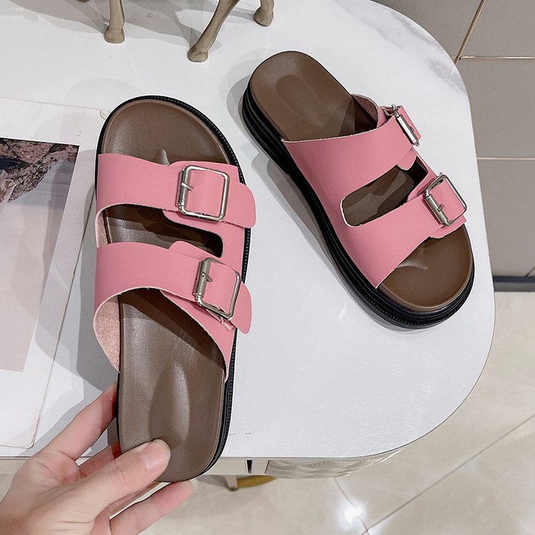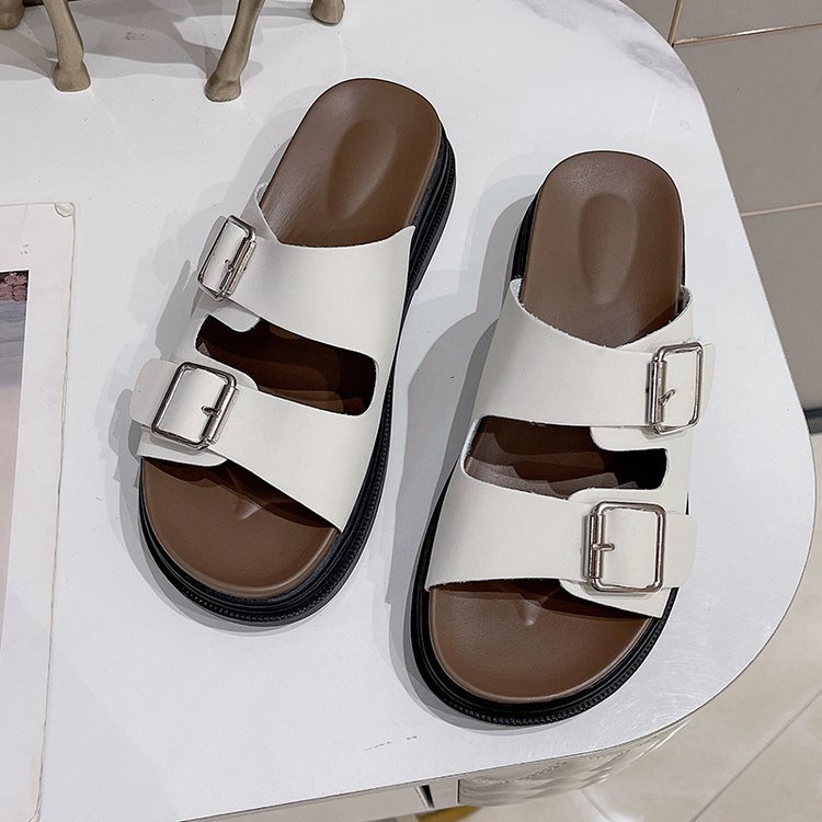 플랫폼 밑창 Birkenth 슬리퍼 여성 여름 2024 년 여름 새로운 라운드 토 Birkenth 신발 버클 스트랩이있는 올 매치 샌들