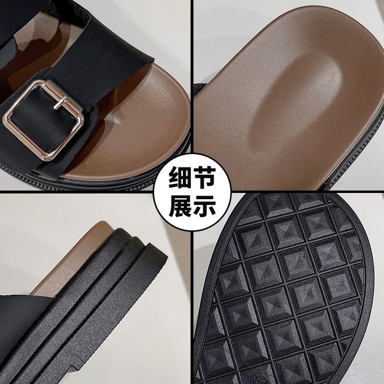 플랫폼 밑창 Birkenth 슬리퍼 여성 여름 2024 년 여름 새로운 라운드 토 Birkenth 신발 버클 스트랩이있는 올 매치 샌들스토어 가기