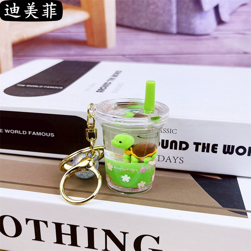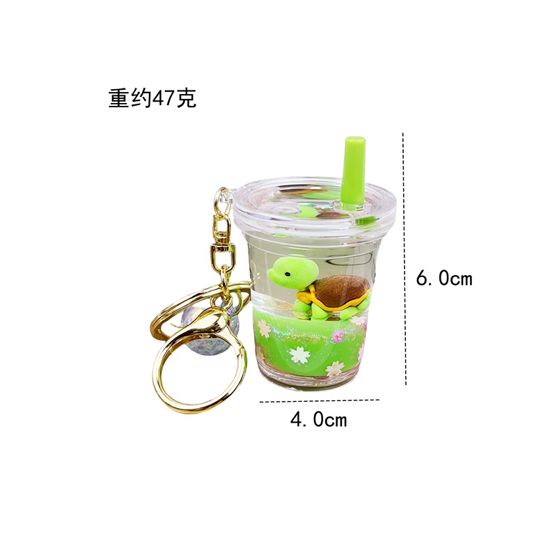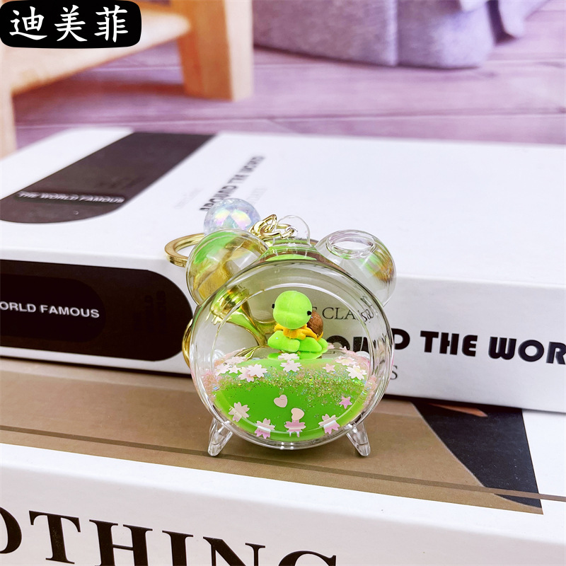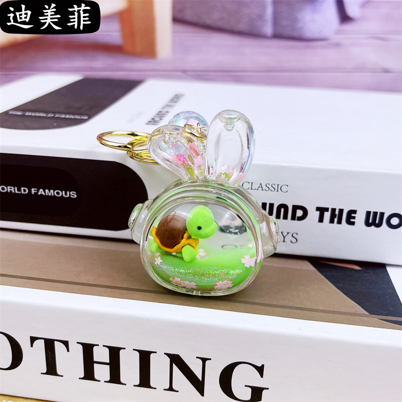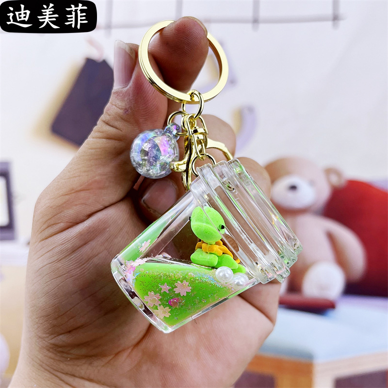 크리 에이 티브 만화 신선한 녹색 거북이 오일 퀵 샌드 병 키 체인 가방 펜던트 클로 기계 작은 선물 도매로 떠