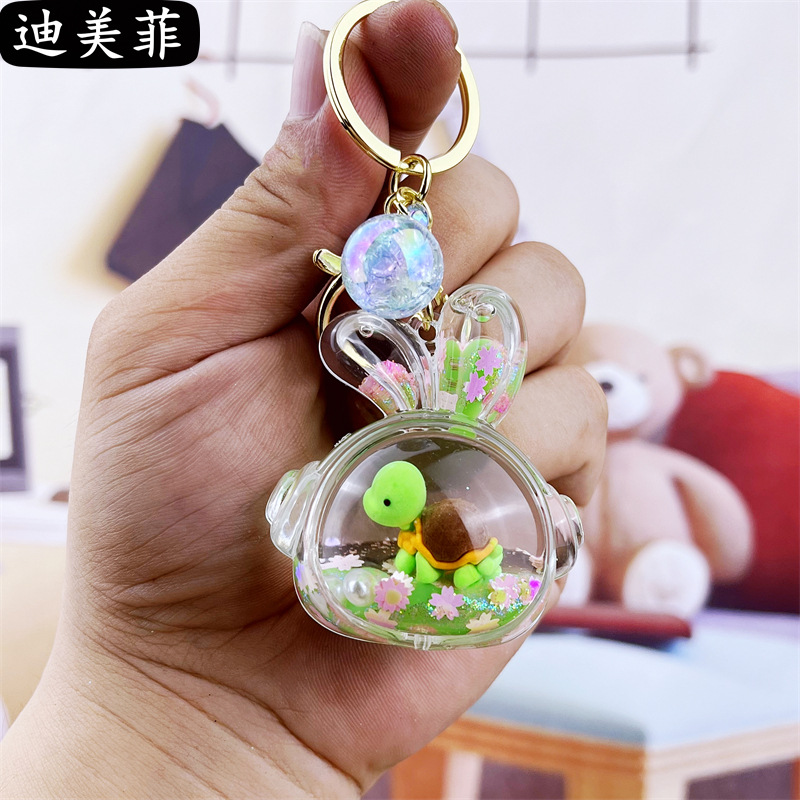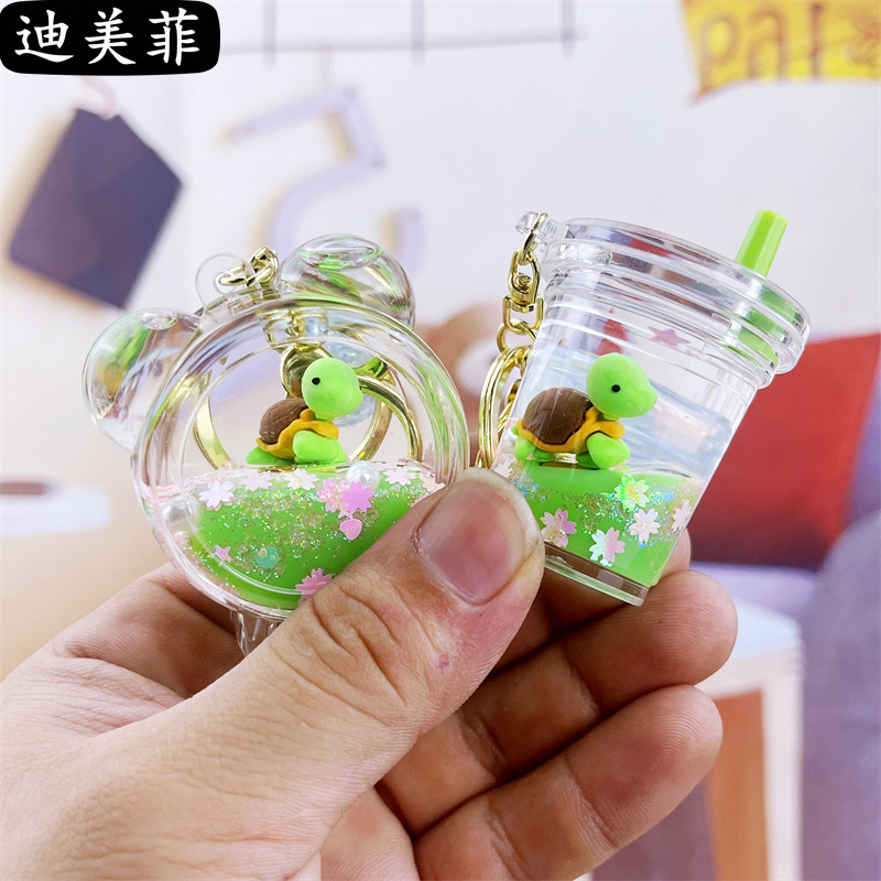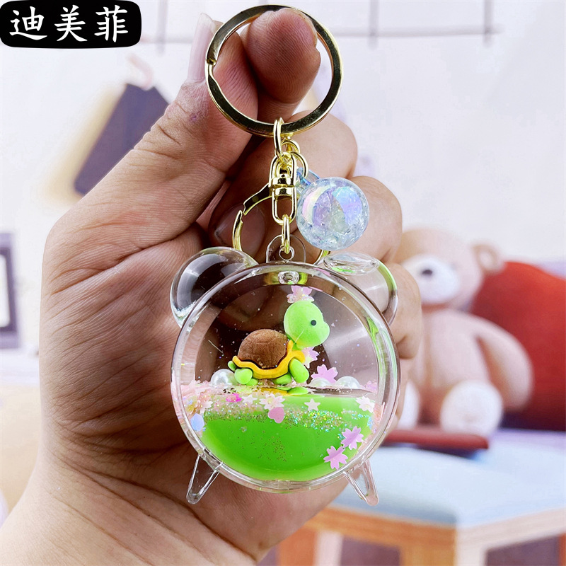 크리 에이 티브 만화 신선한 녹색 거북이 오일 퀵 샌드 병 키 체인 가방 펜던트 클로 기계 작은 선물 도매로 떠스토어 가기