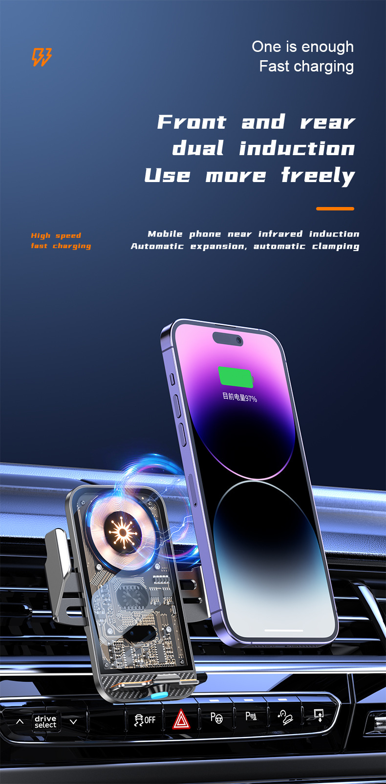 2025 새로운 투명 자동차 휴대 전화 홀더 안티 쉐이크 미끄럼 네비게이션 무선 충전 자동차 용품 수정 된 국경 간스토어 가기