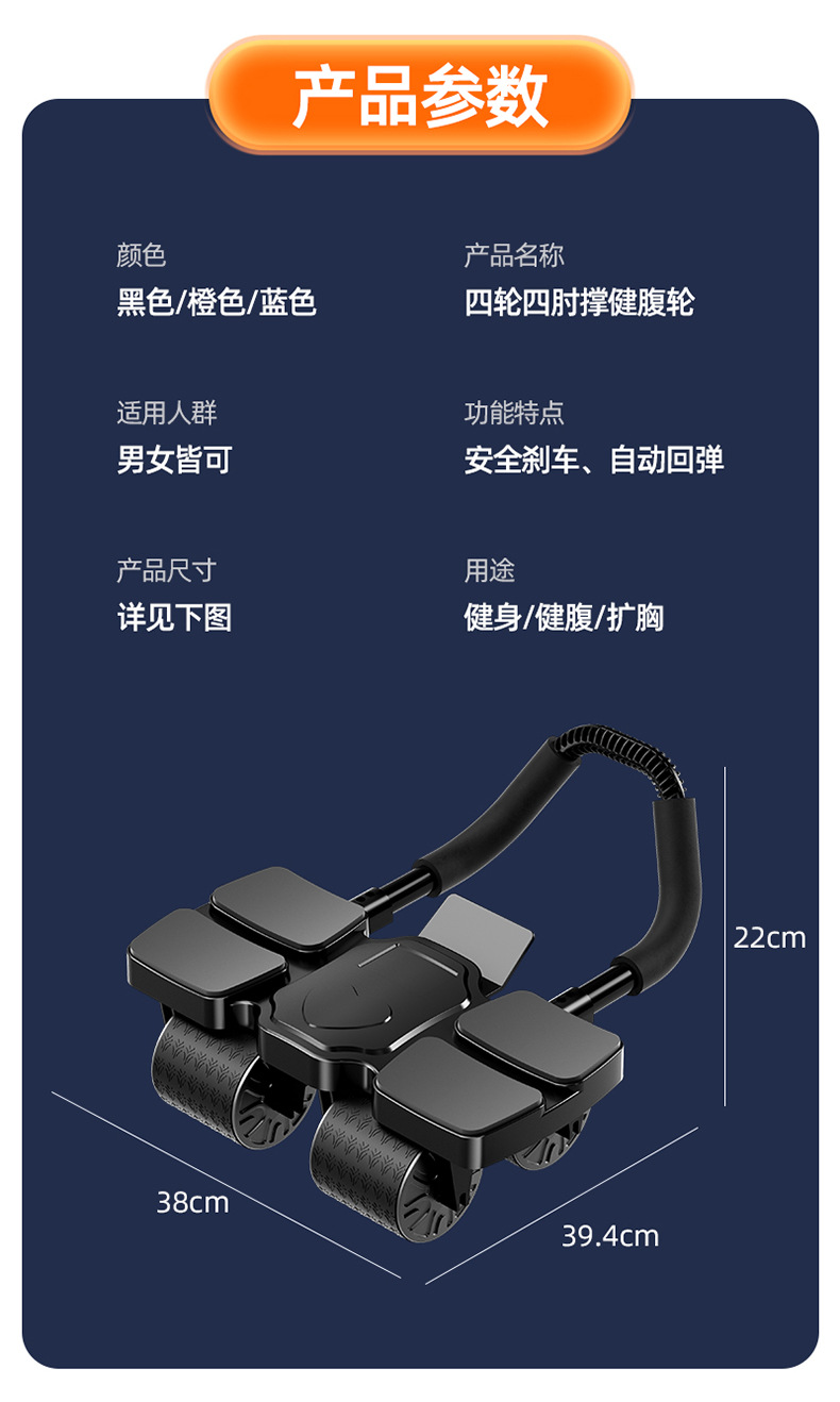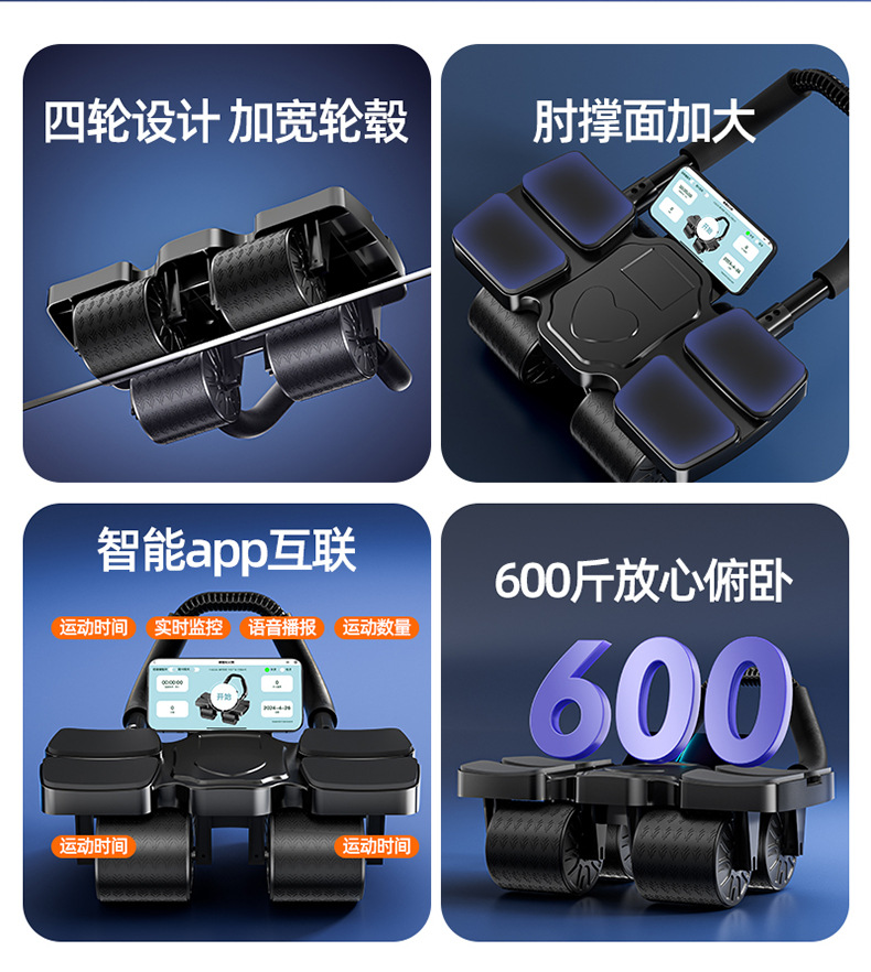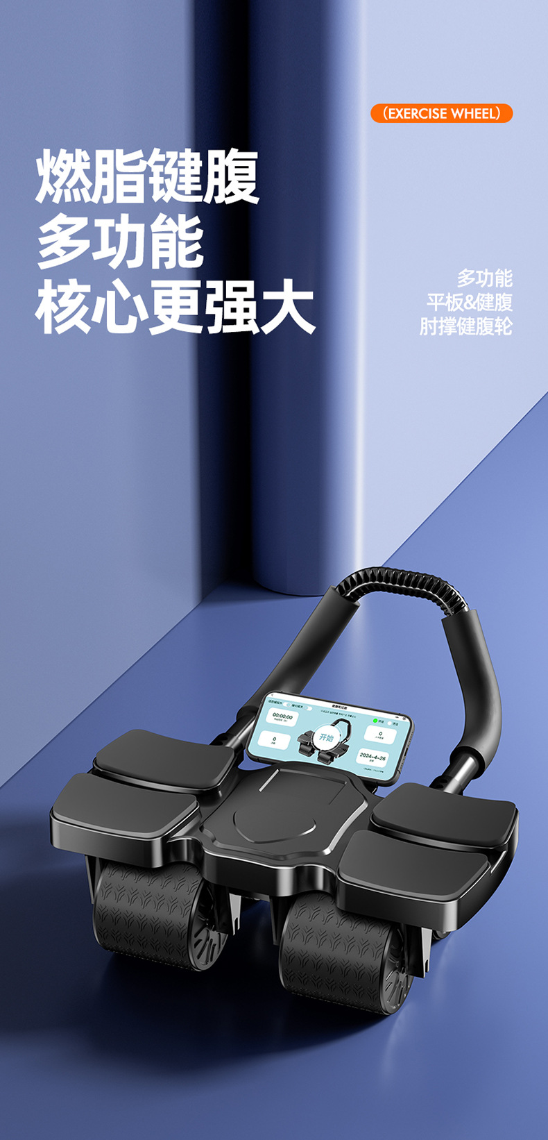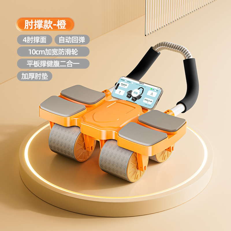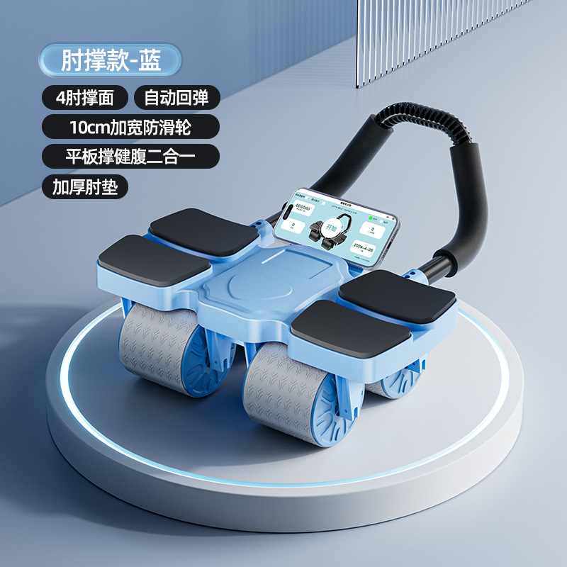 남성과 여성을위한 새로운 4 륜 팔꿈치 지원 복부 휠 자동 리바운드 복부 근육 훈련 인공물 홈 롤 복부 얇은 배 피트니스