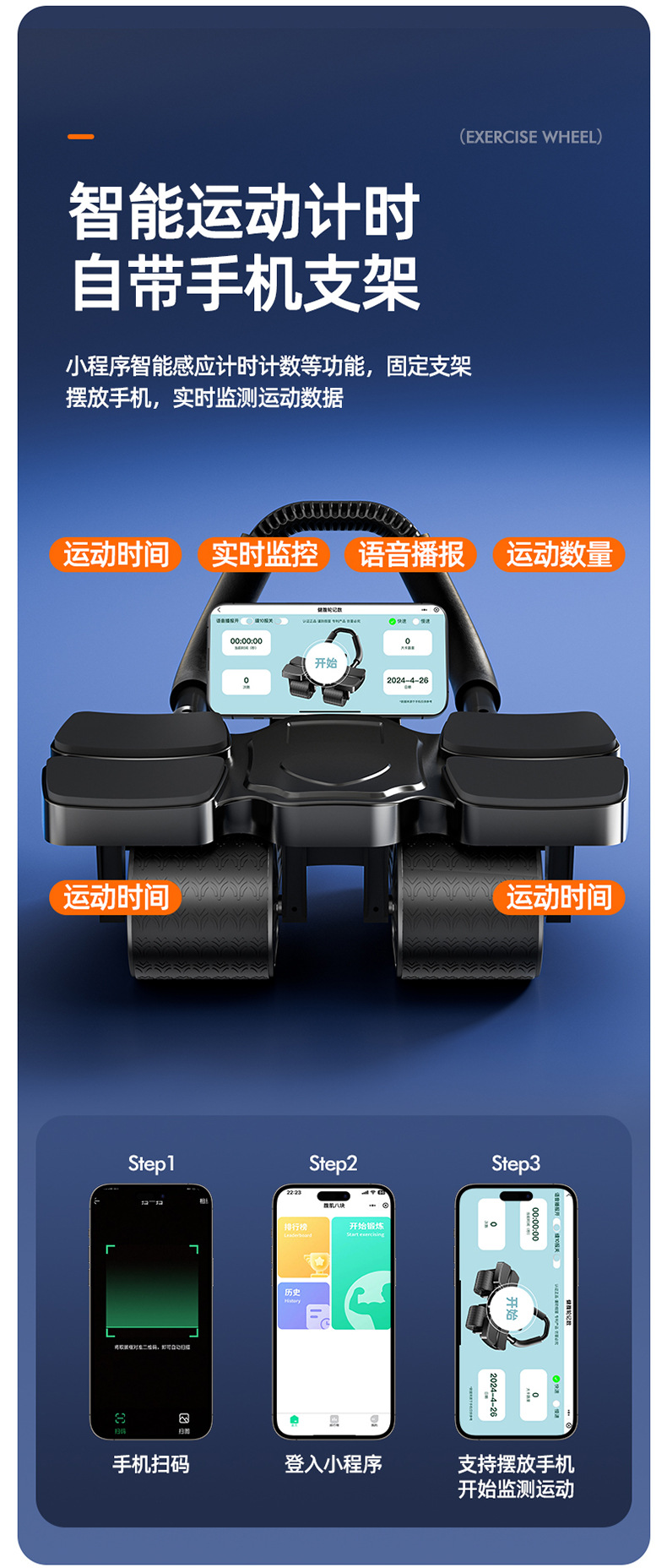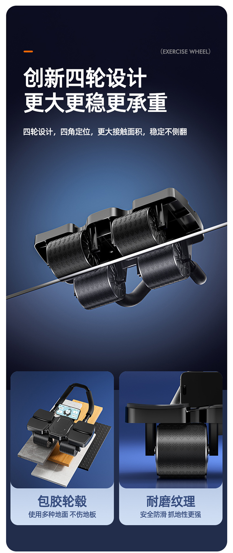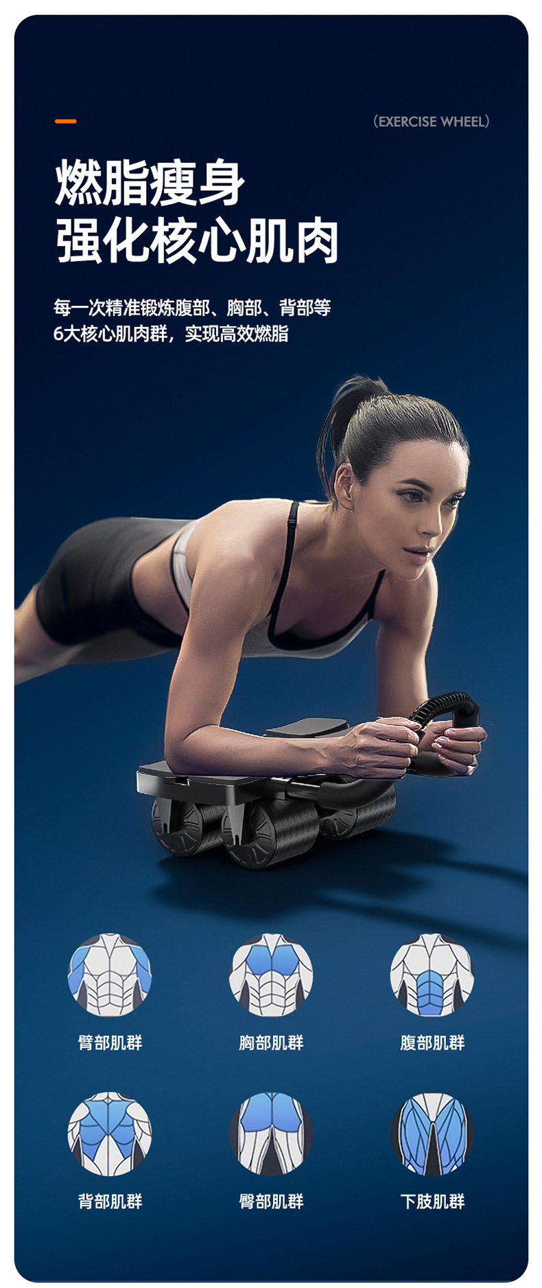 남성과 여성을위한 새로운 4 륜 팔꿈치 지원 복부 휠 자동 리바운드 복부 근육 훈련 인공물 홈 롤 복부 얇은 배 피트니스