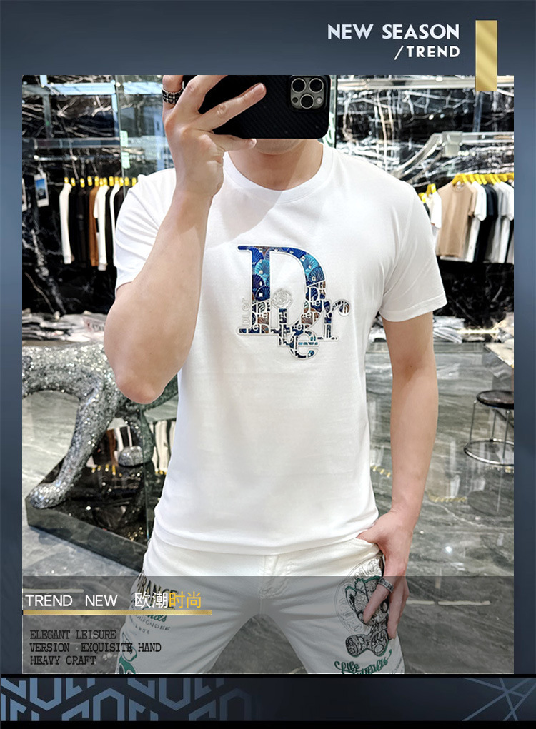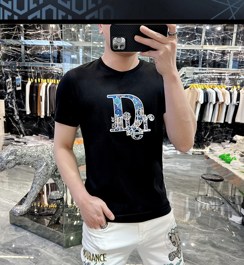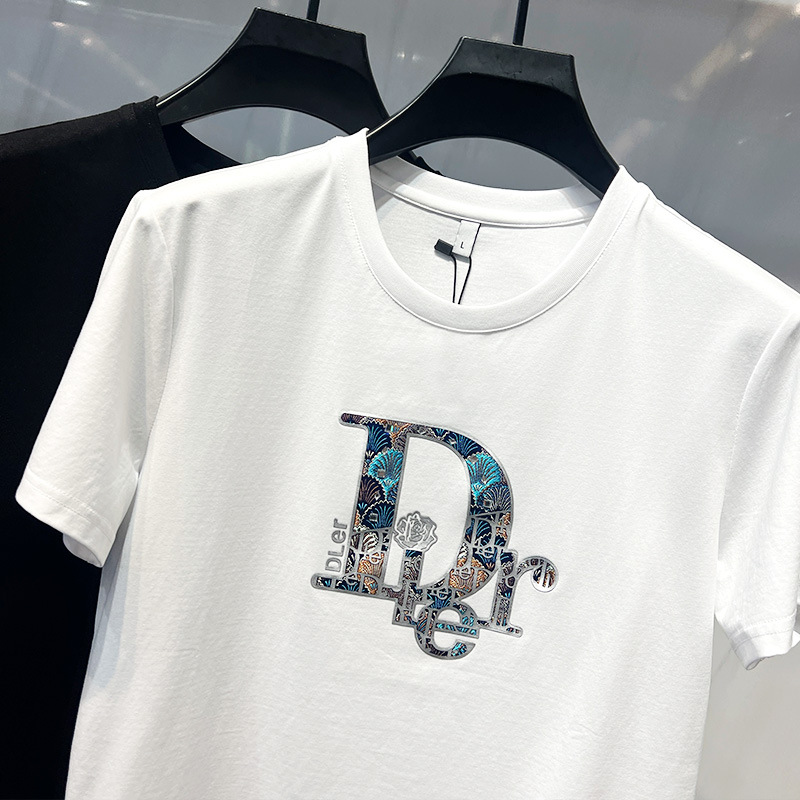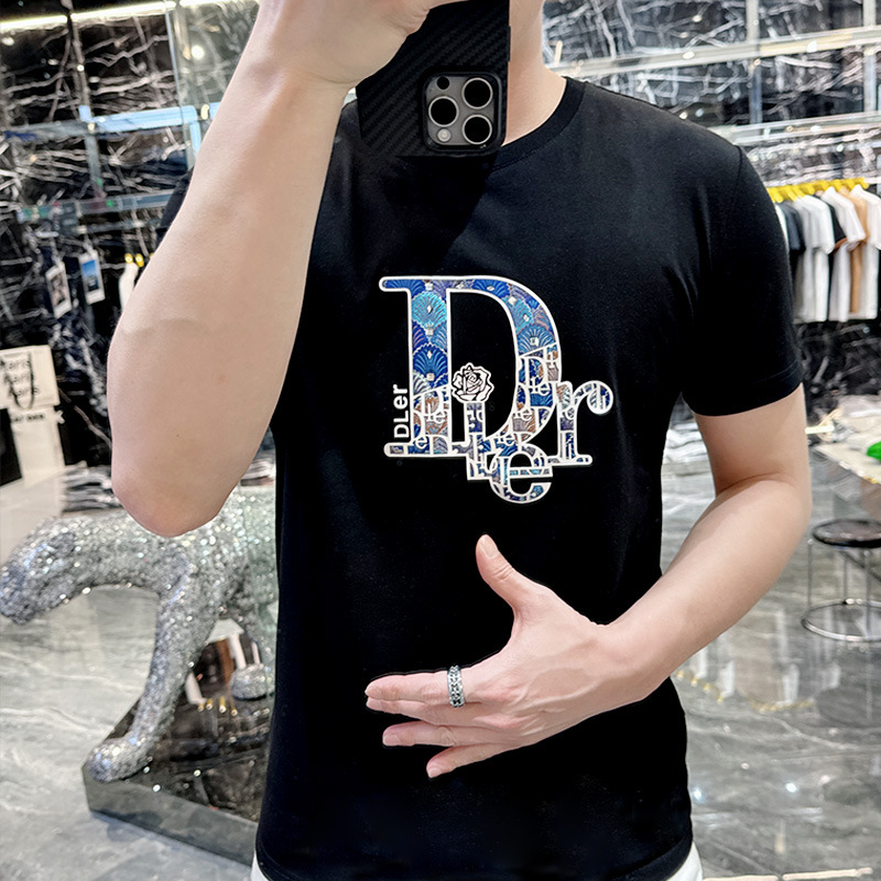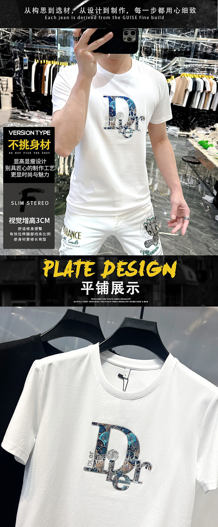 DLer 반팔 티셔츠 남자 여름 라운드 넥 유럽 역 핫 스탬핑 플라워 레터 뉴 스타일 남성용 트렌디 반소매 티셔츠