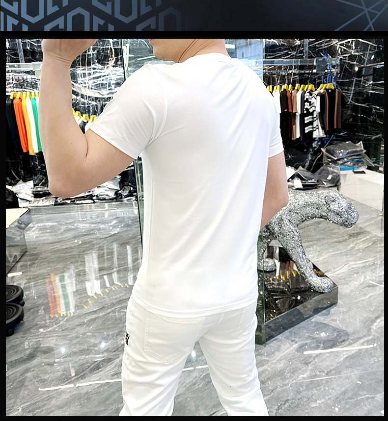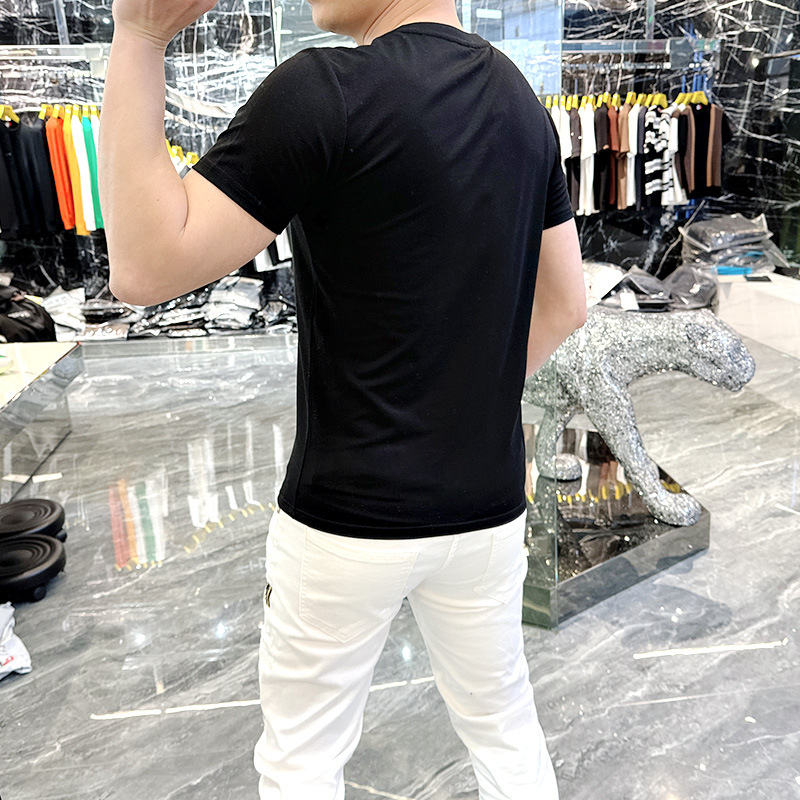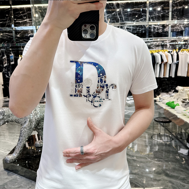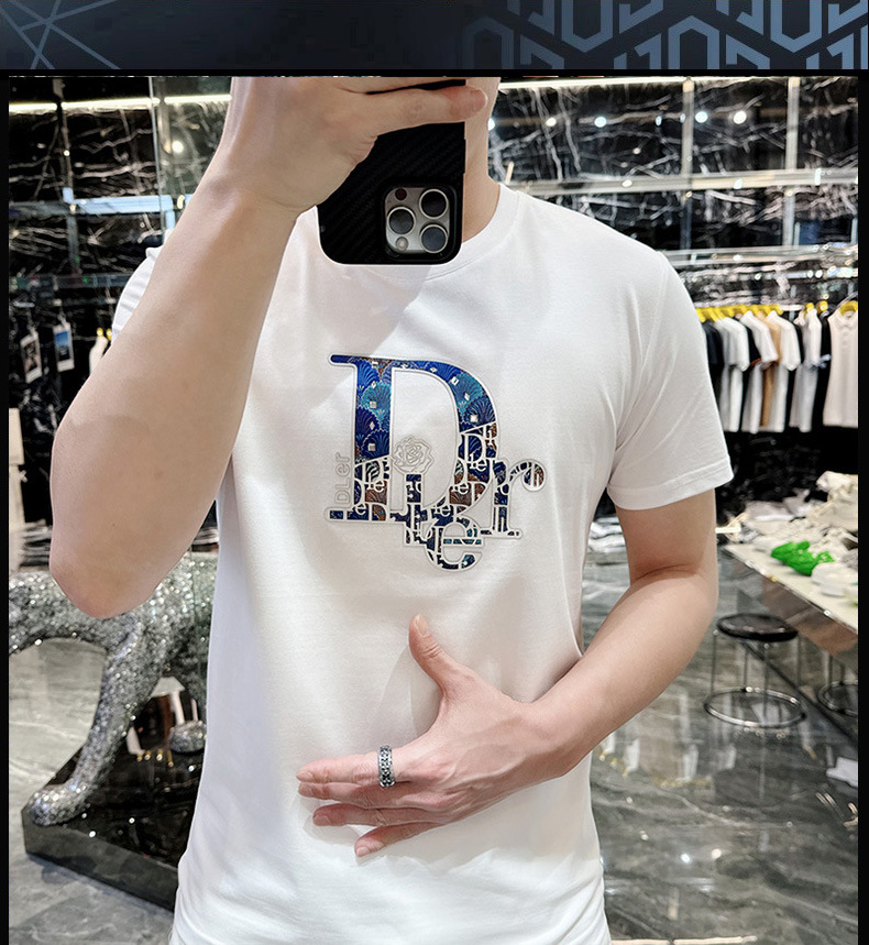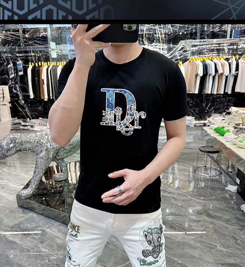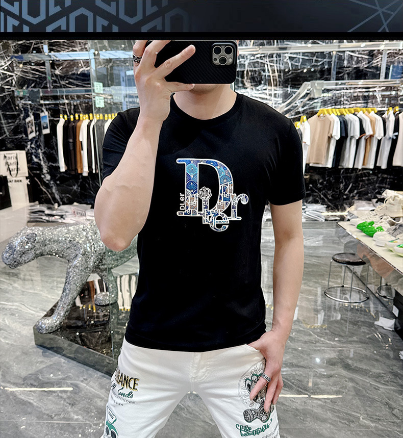 DLer 반팔 티셔츠 남자 여름 라운드 넥 유럽 역 핫 스탬핑 플라워 레터 뉴 스타일 남성용 트렌디 반소매 티셔츠