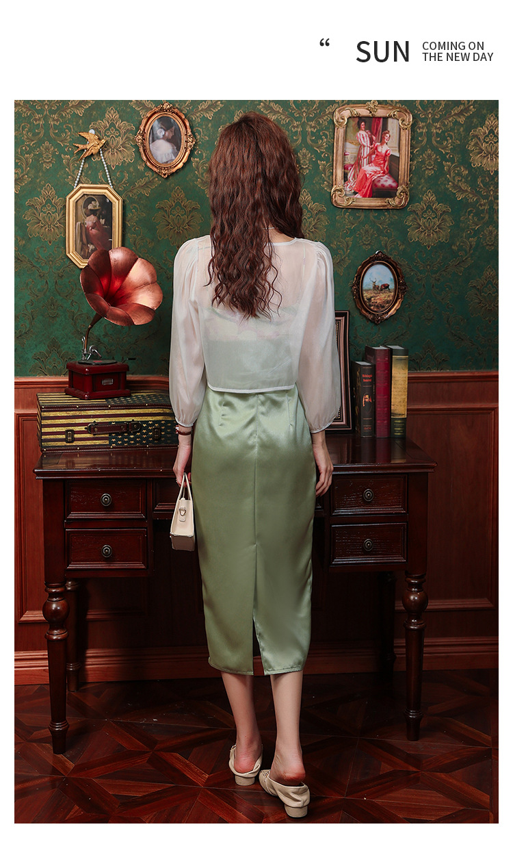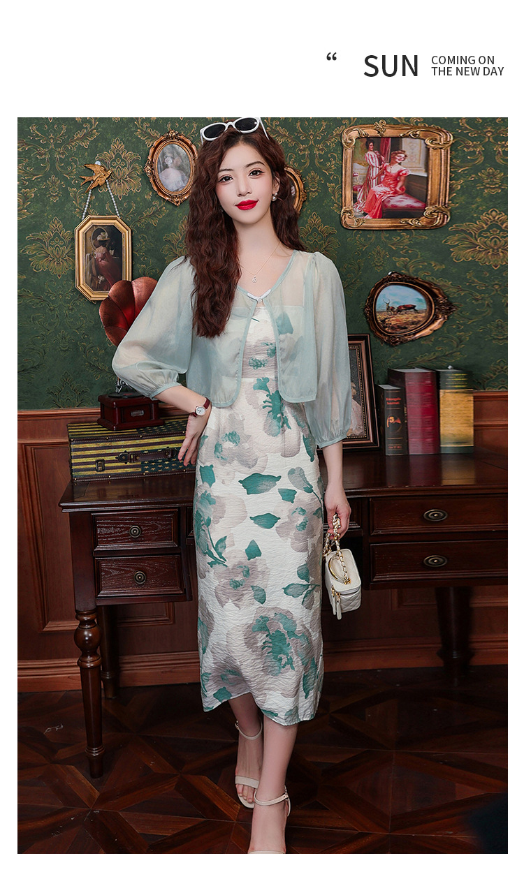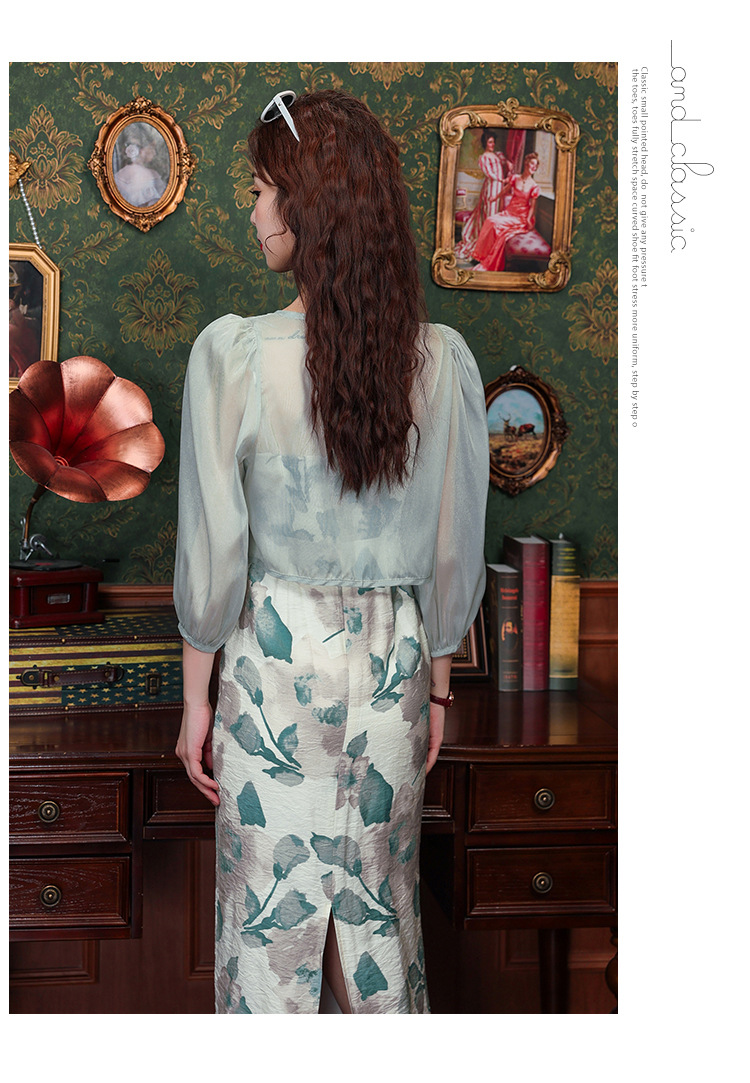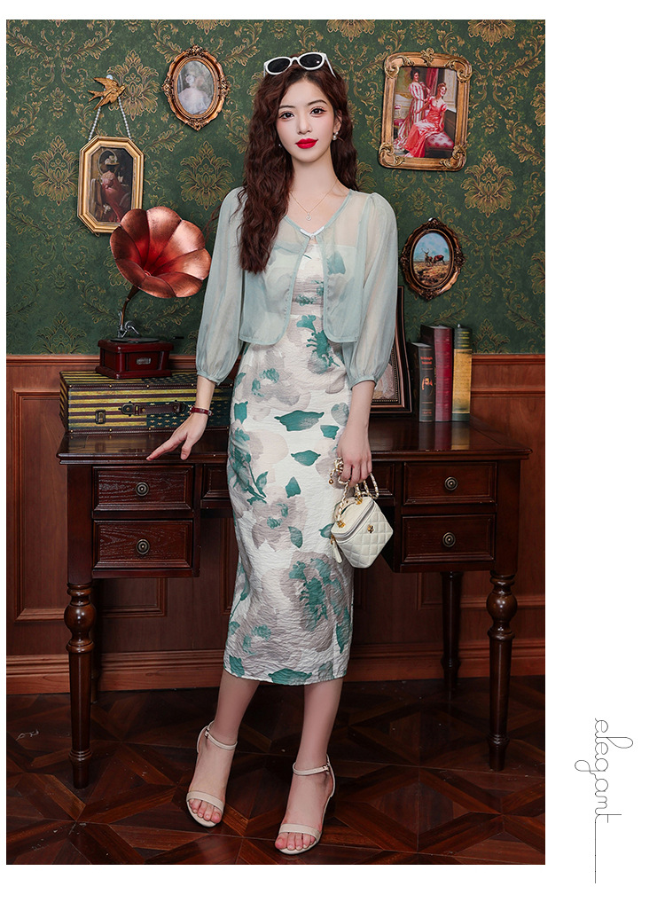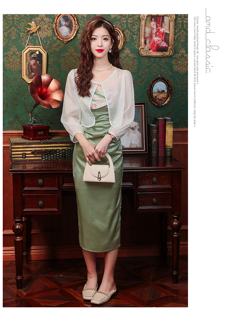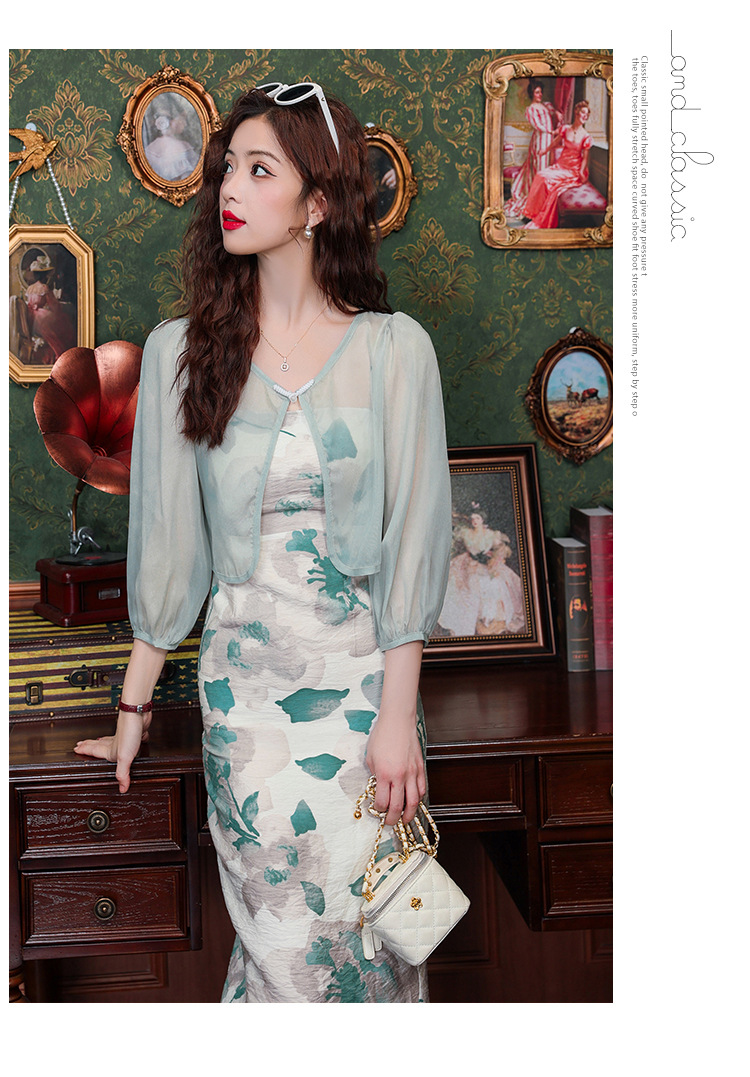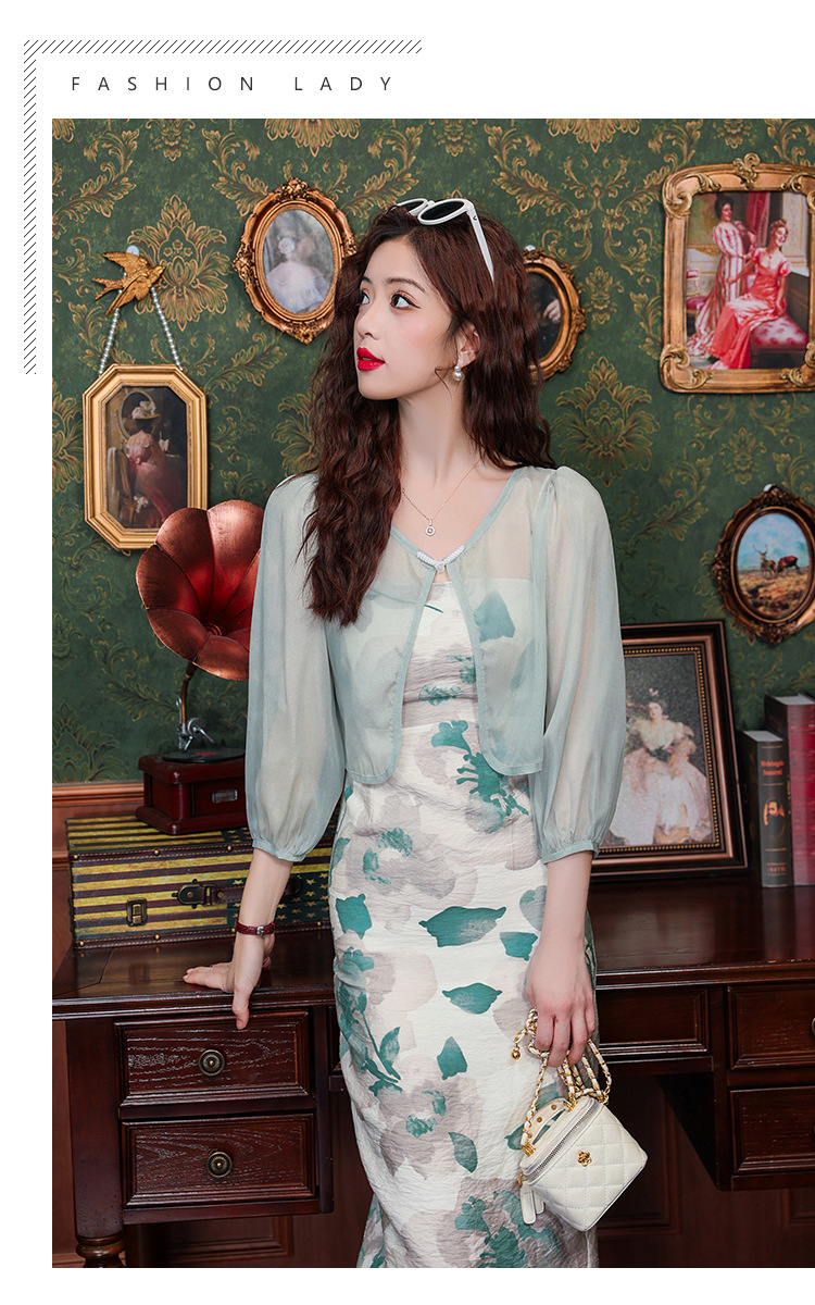 여성을 위한 새로운 중국 스타일 여름 얇은 거즈 서스펜더 롱 스커트와 작은 숄 재킷 쉬폰 가디건 자외선 차단 조끼