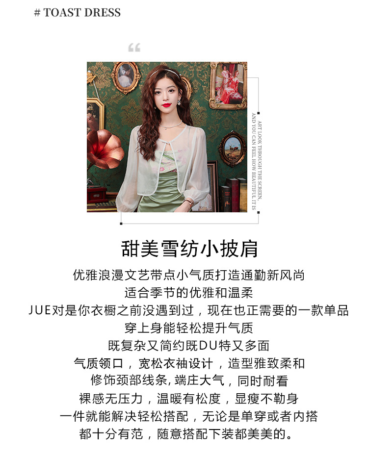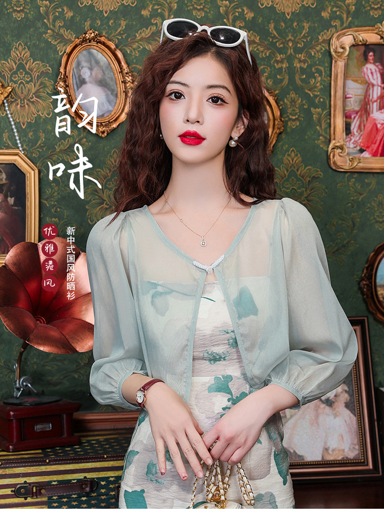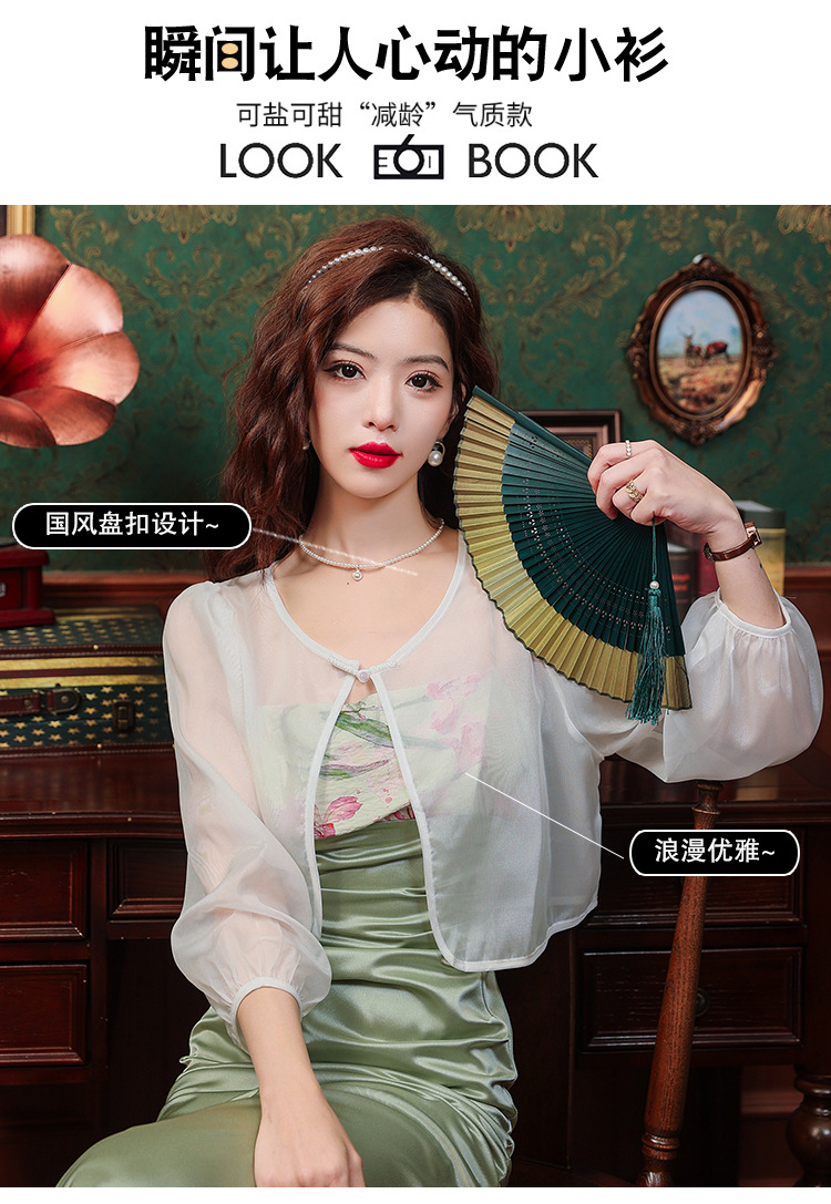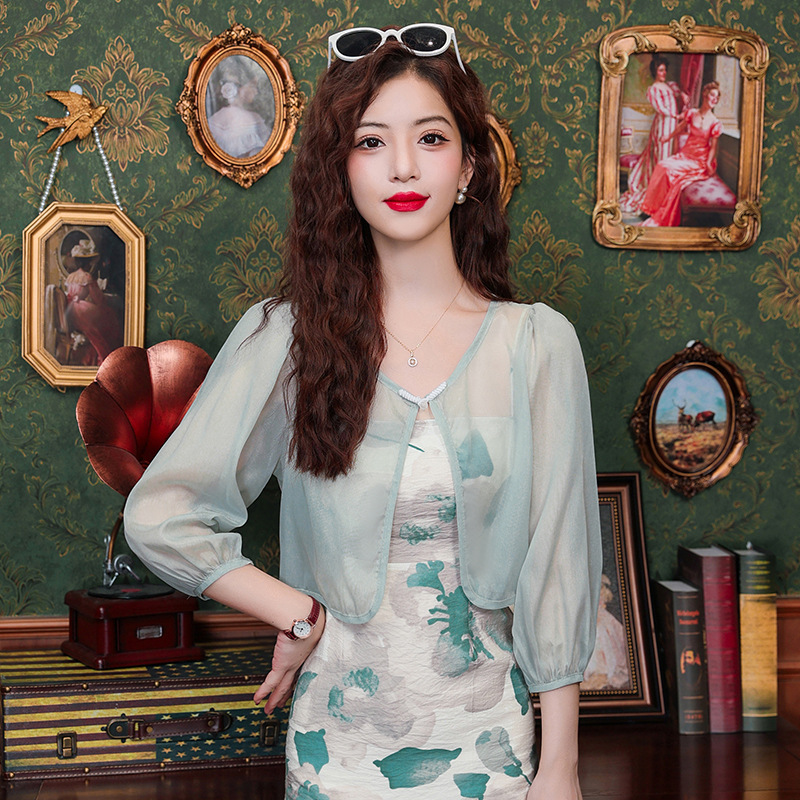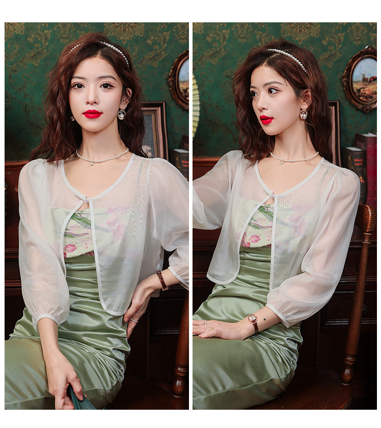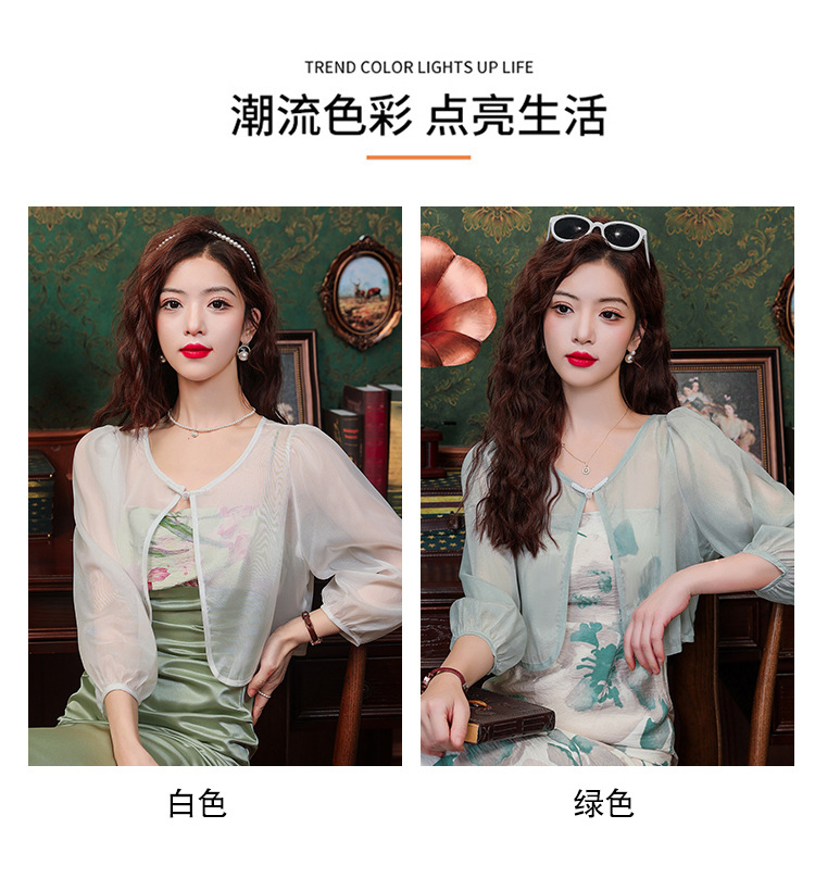 여성을 위한 새로운 중국 스타일 여름 얇은 거즈 서스펜더 롱 스커트와 작은 숄 재킷 쉬폰 가디건 자외선 차단 조끼스토어 가기