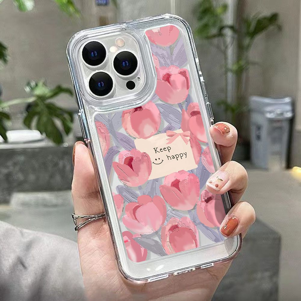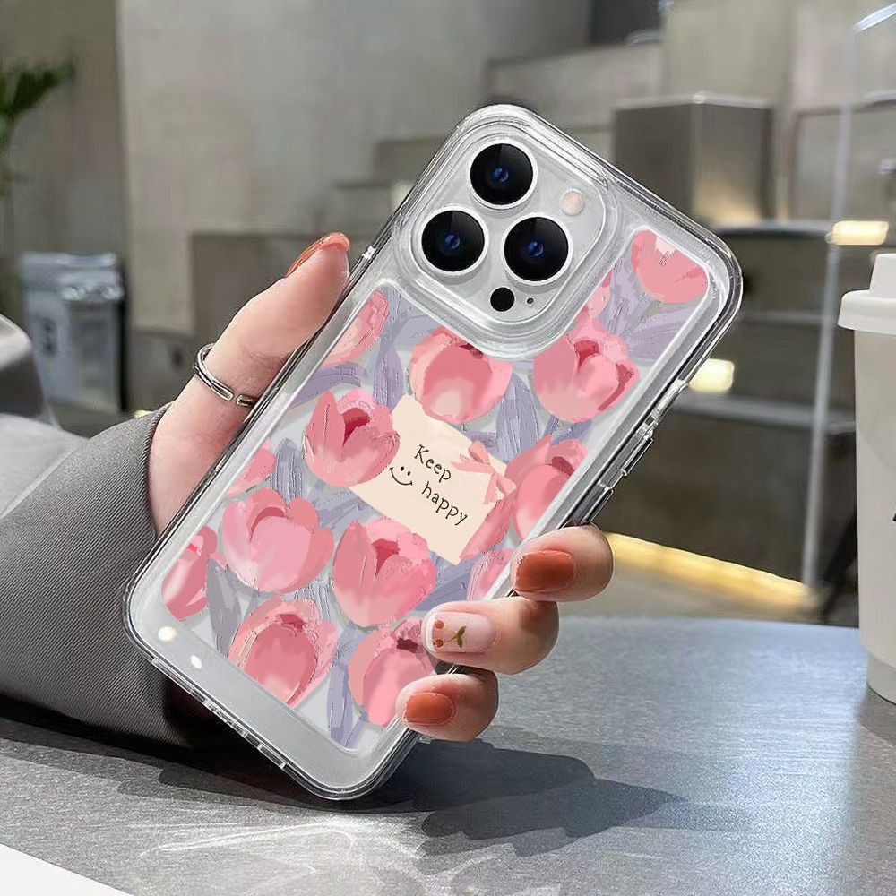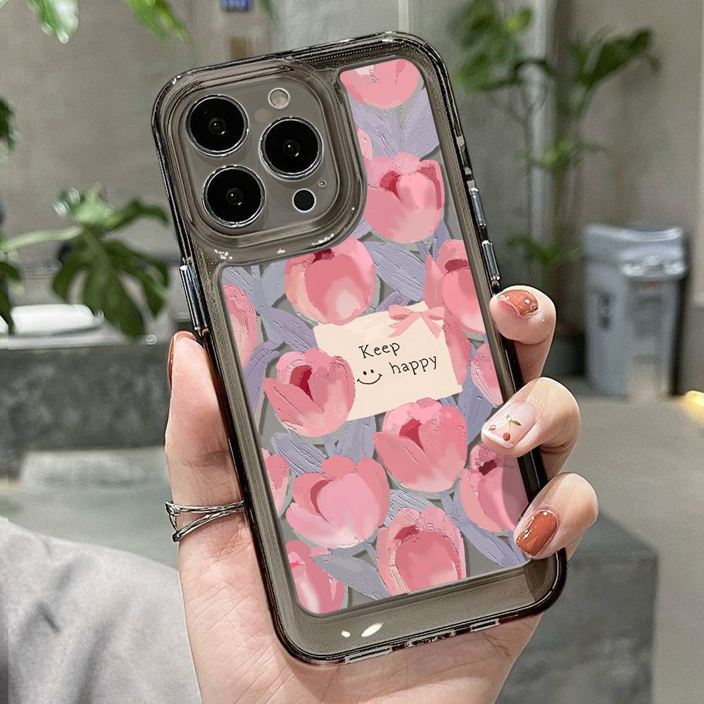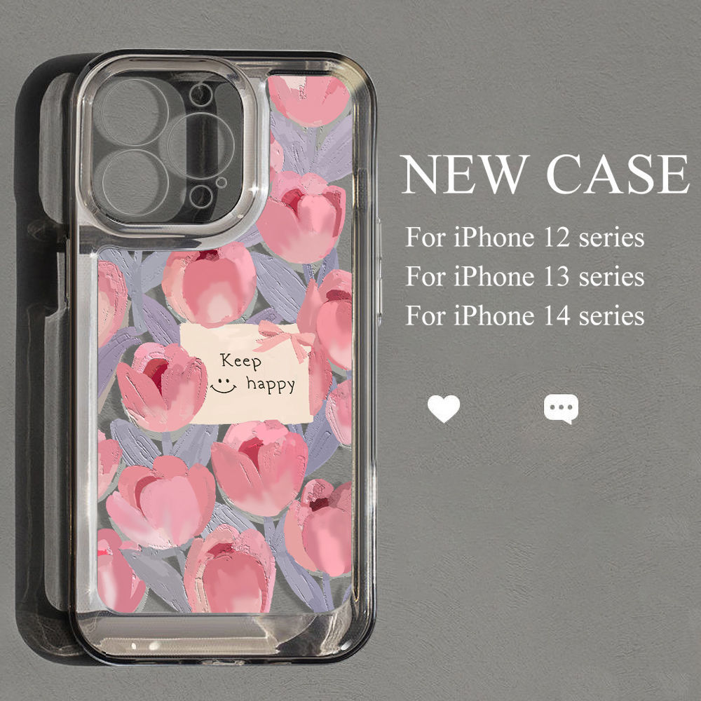 유화 튤립은 iPhone15 드롭 방지 전화 케이스 13Pro Apple 12/11 Simple 14 를 위해 행복하게 유지합니다.스토어 가기